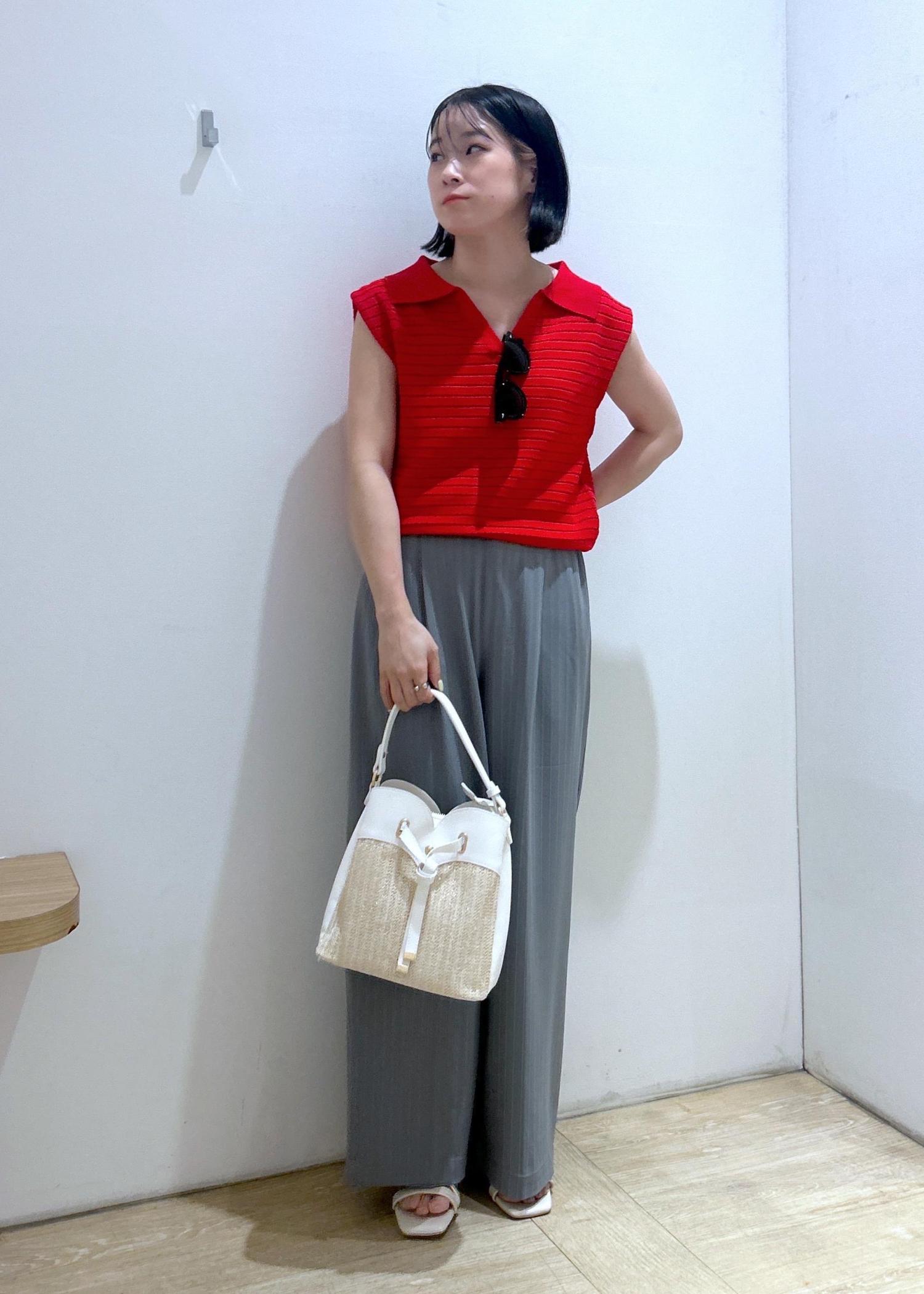柔らかすぎないニットなので、フィット感がありインでアウトでも合わせやすいです。 -