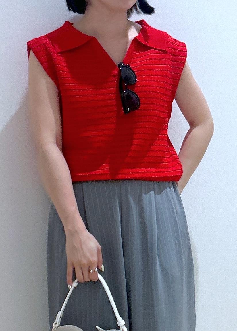 アウトレットVISスキッパーフレンチスリーブアイレットニットレッド / F¥3,842レビュー程よく厚みのあるサラッとしたニット素材でスキッパーでスッキリ見えます。