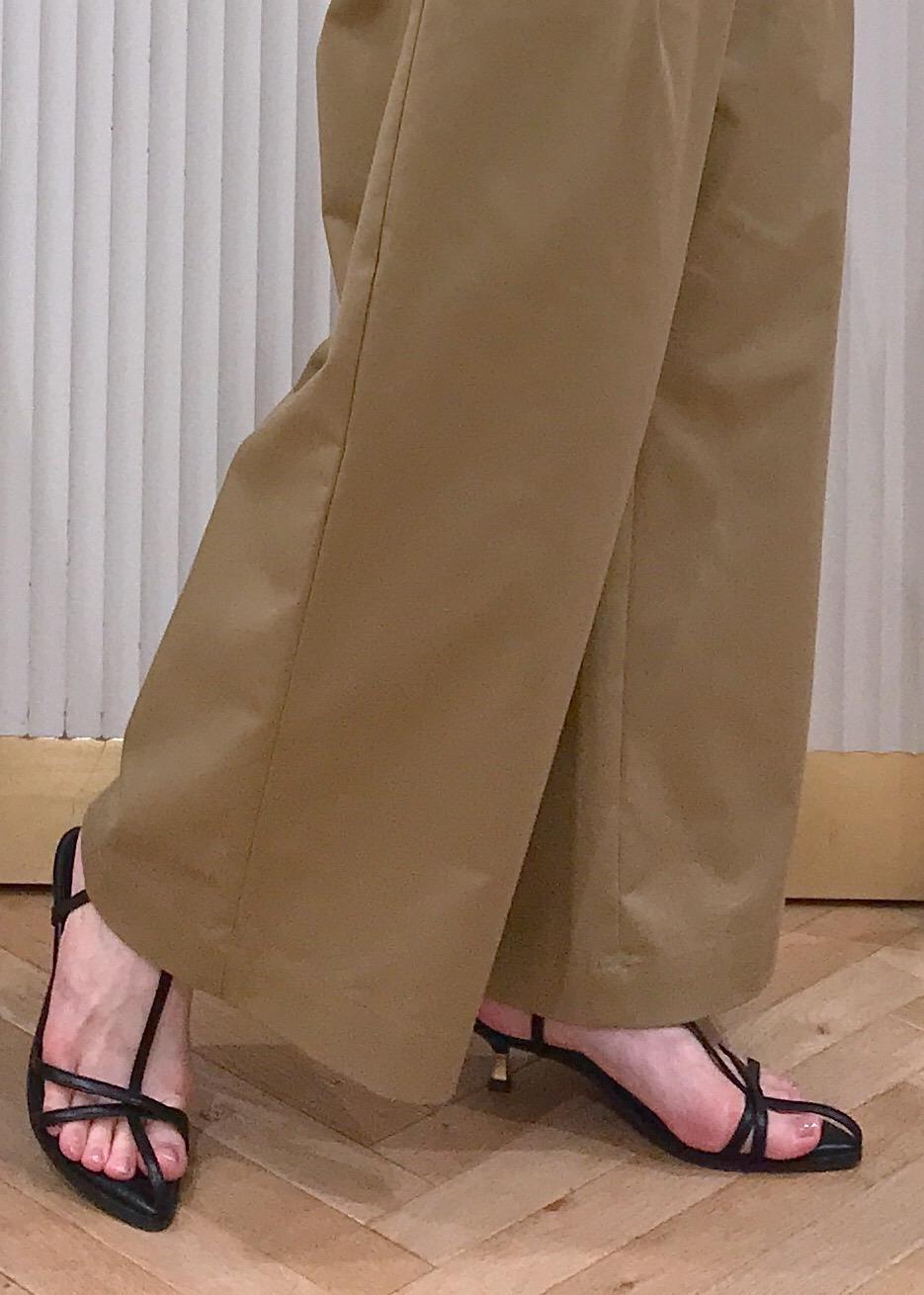 フラットシューズを履いても引きずらずに履けますが、心配な場合はヒールのある靴を合わせると良いと思います。