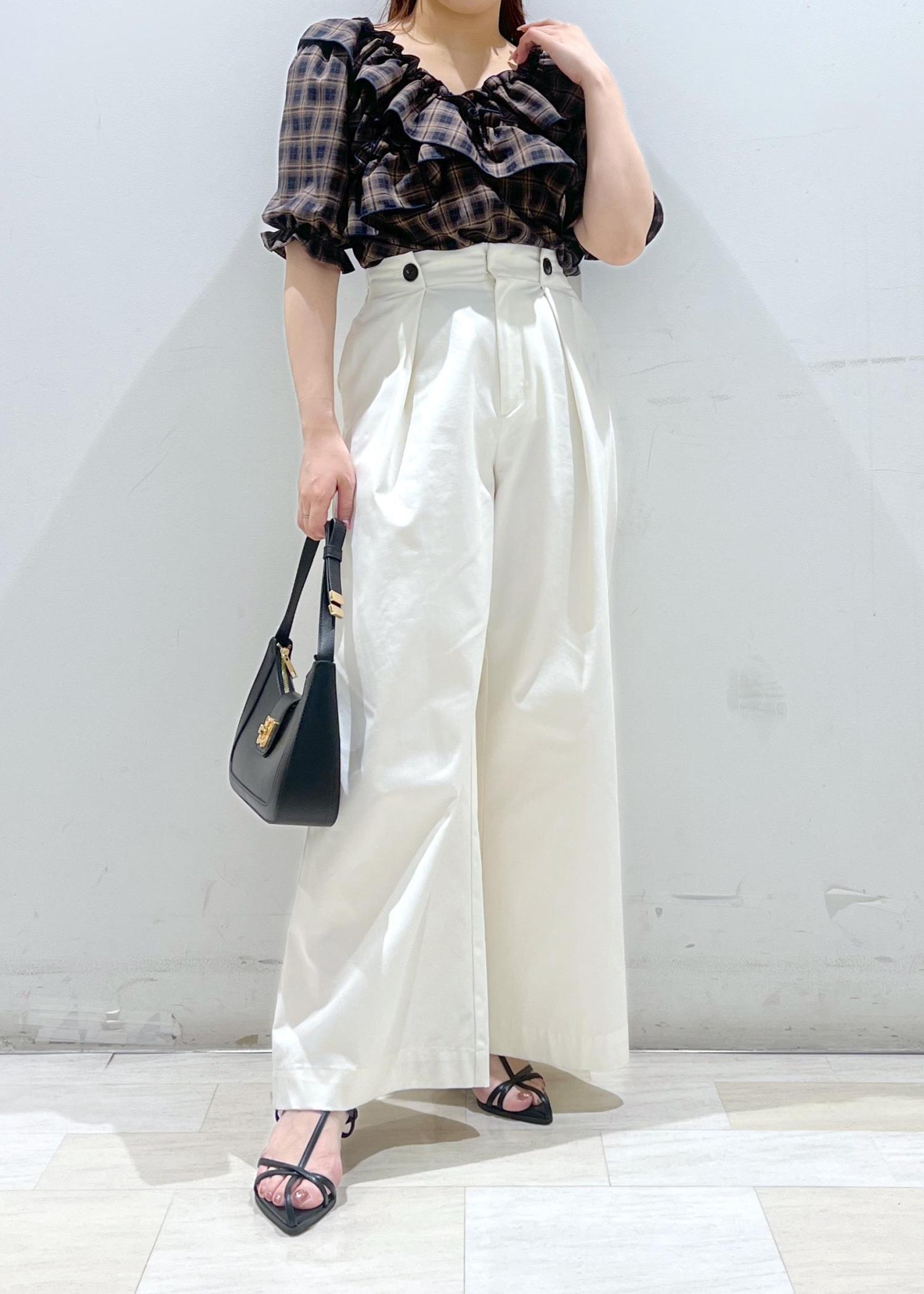 ほどよいAラインのワイドパンツで綺麗見えがかないます。 -