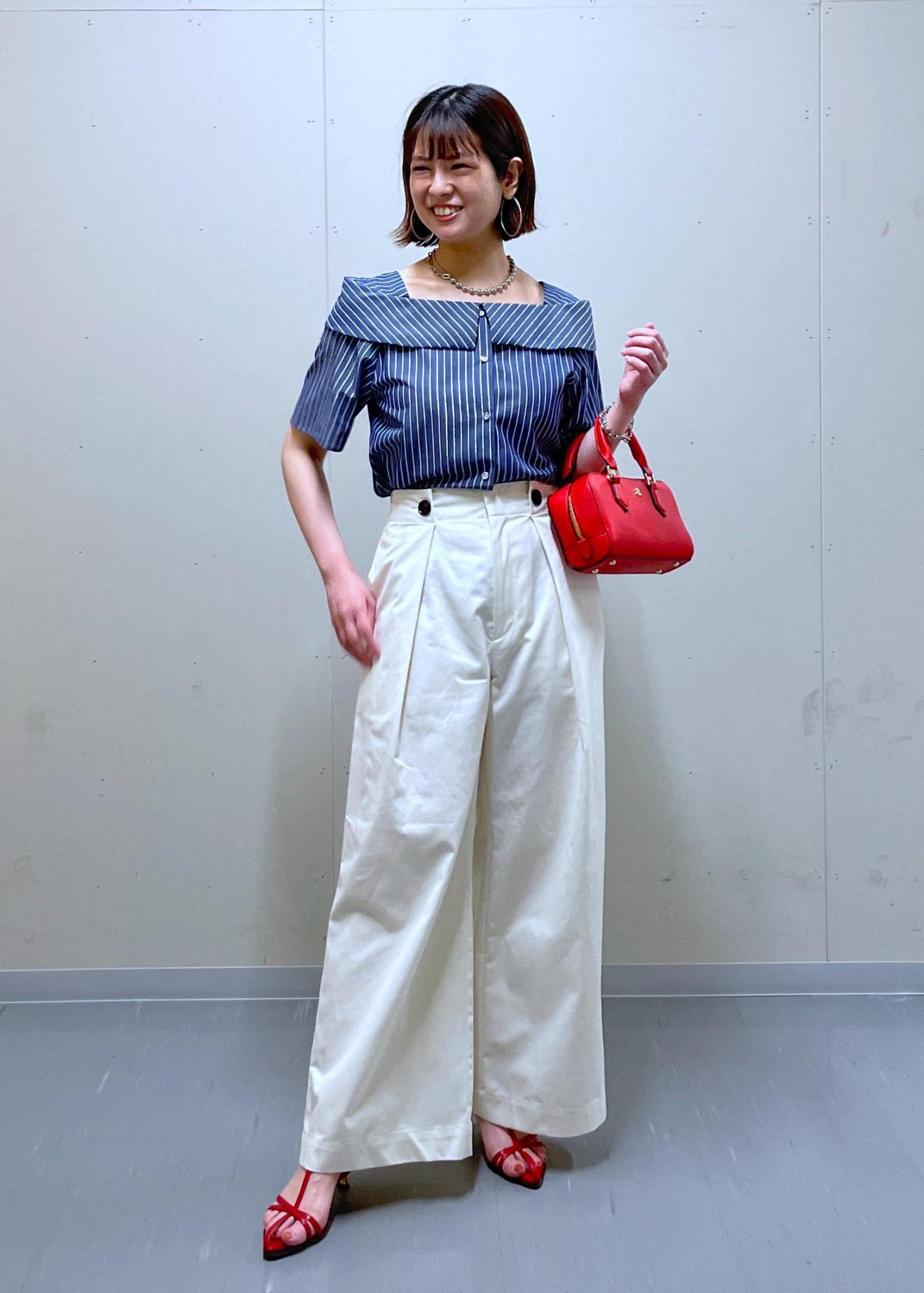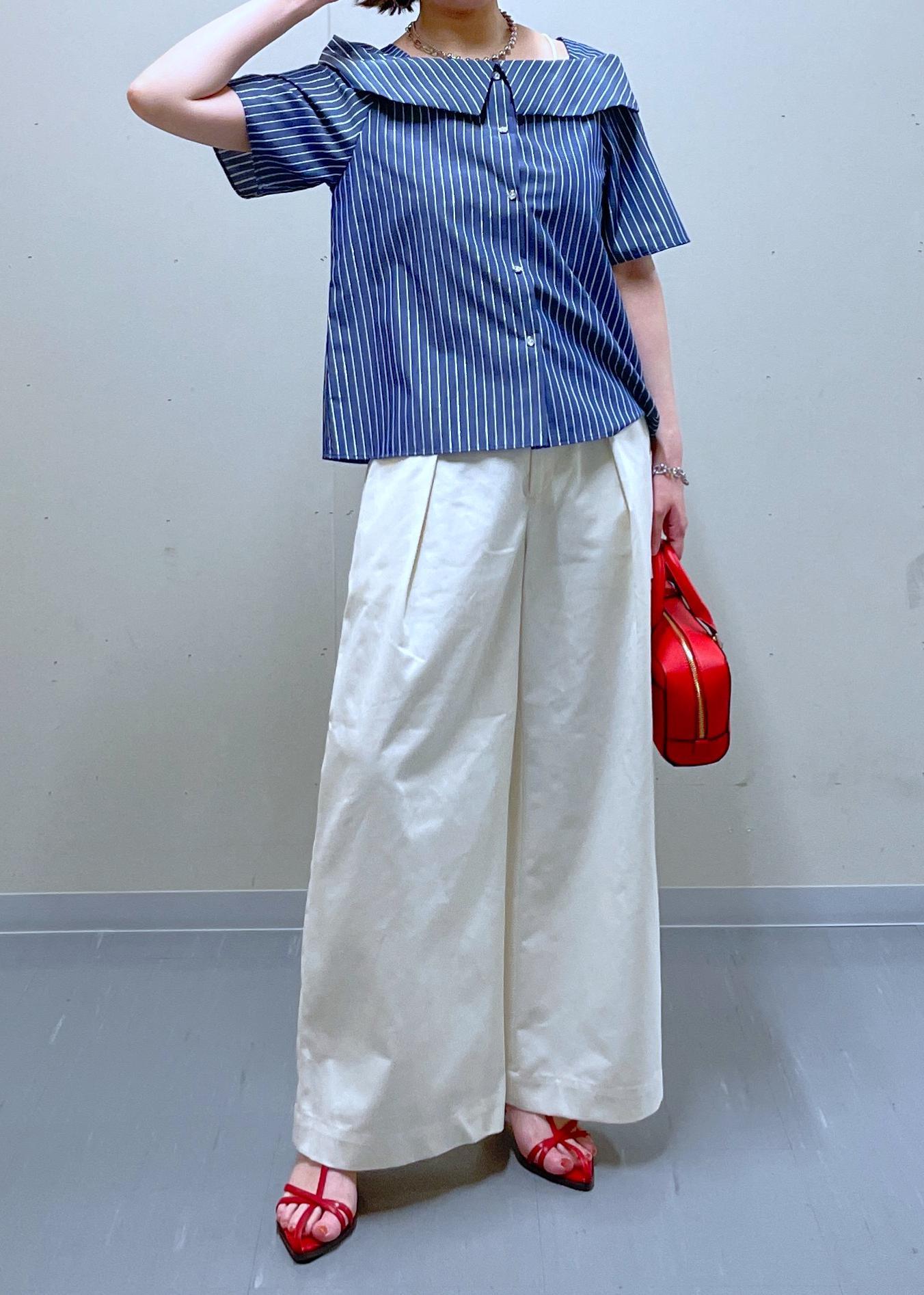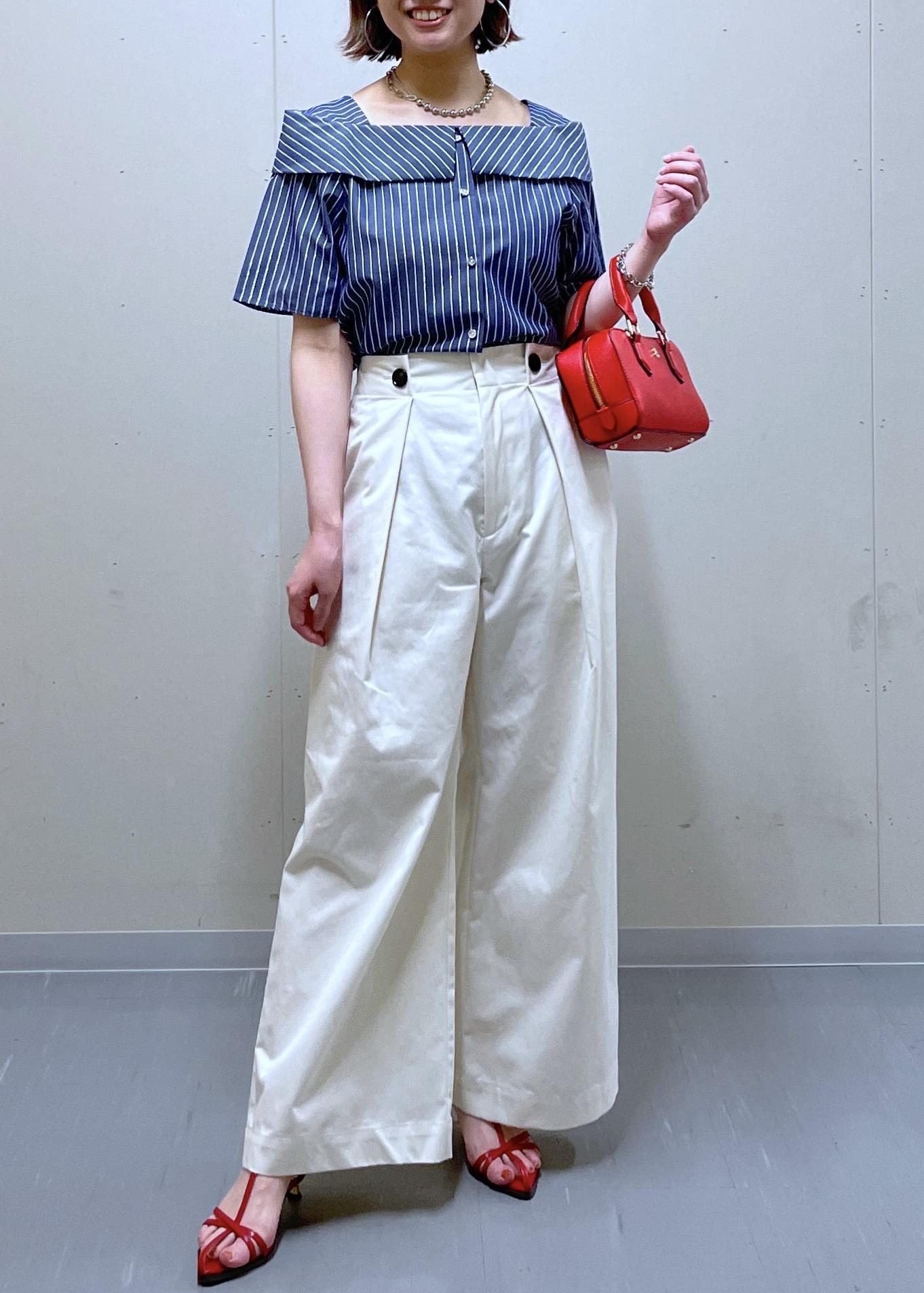 少し張り感のあるお素材で、カジュアルにもきれい目にも合わせやすいです。