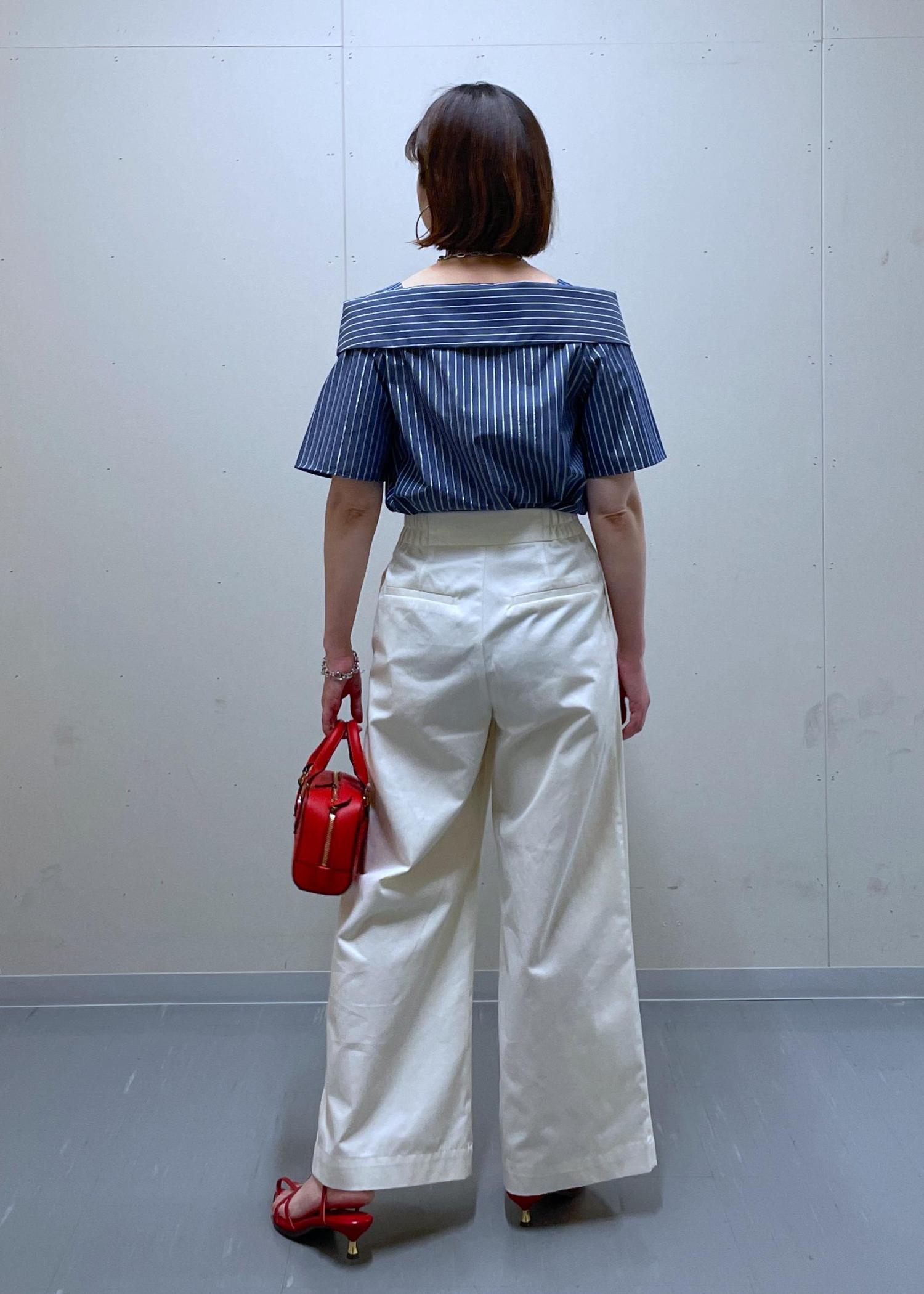 ワイドシルエットですがウエスト周りはフィット感ありスッキリした印象です。