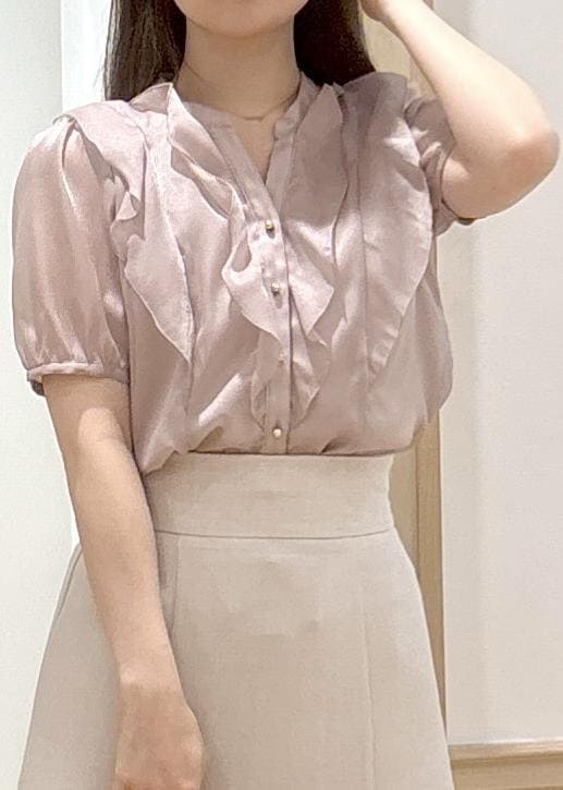ピンクのフリルブラウスはきれいめと可愛さどっちも叶います♡