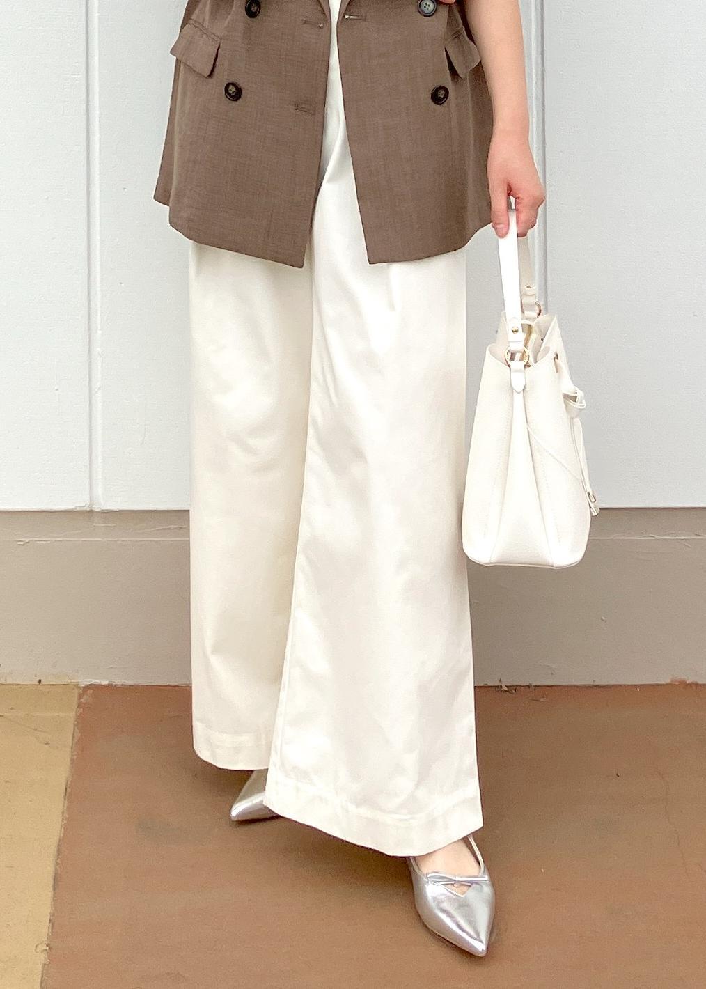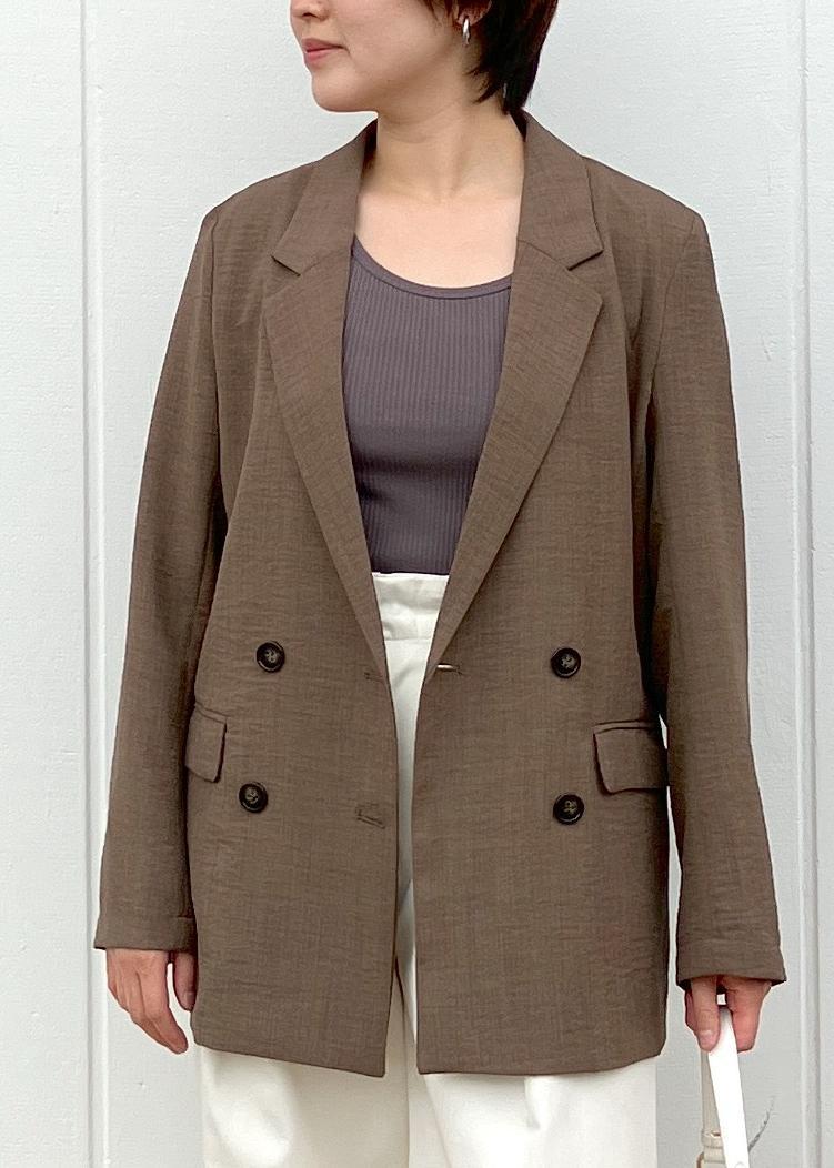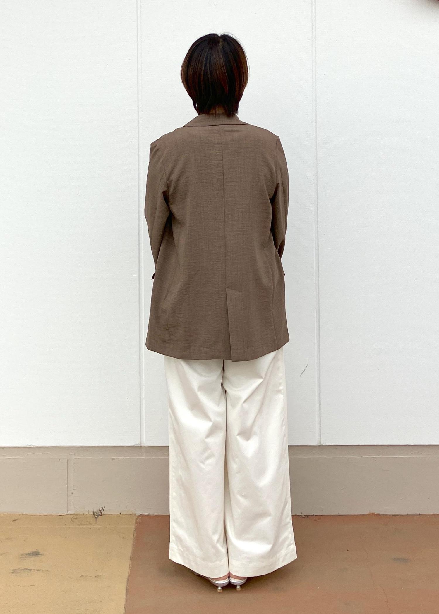 美easyの長袖ジャケットが再入荷しました!寒暖差がある梅雨の時期には1着あると調整ができておすすめです!トップスはぴったりしているのでボトムはワイドで上下にメリハリを!オフィスカジュアルにも着ていただけるコーディネートを意識しました!