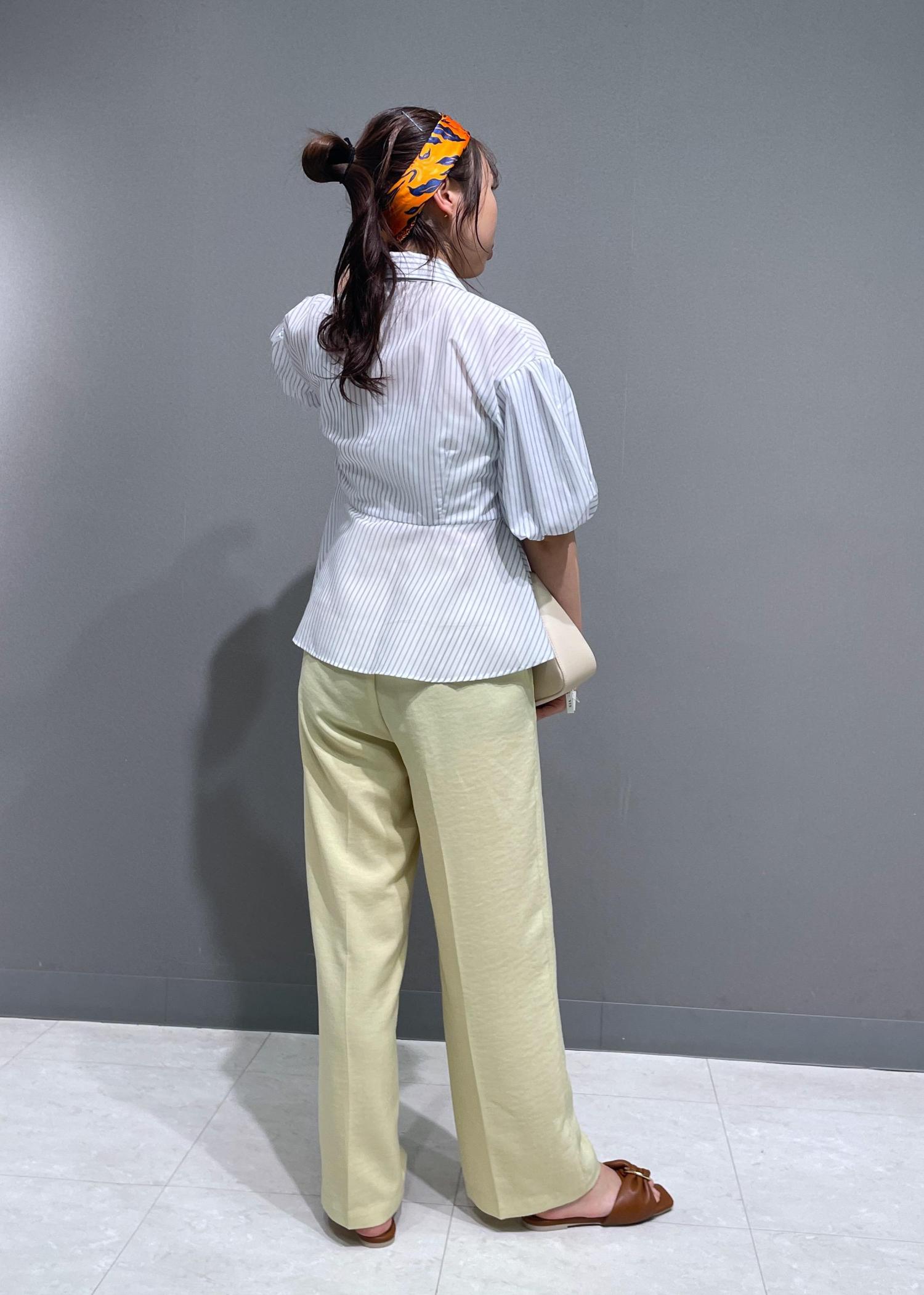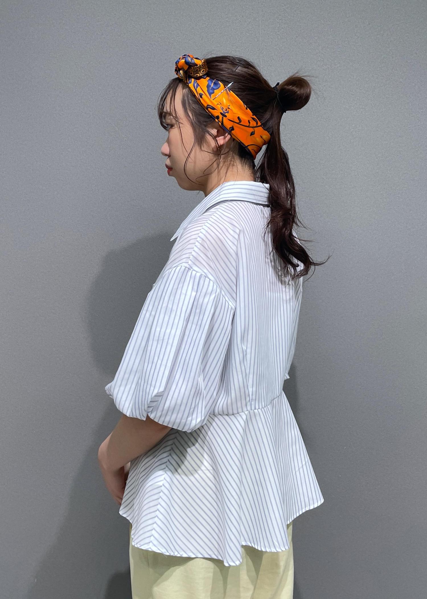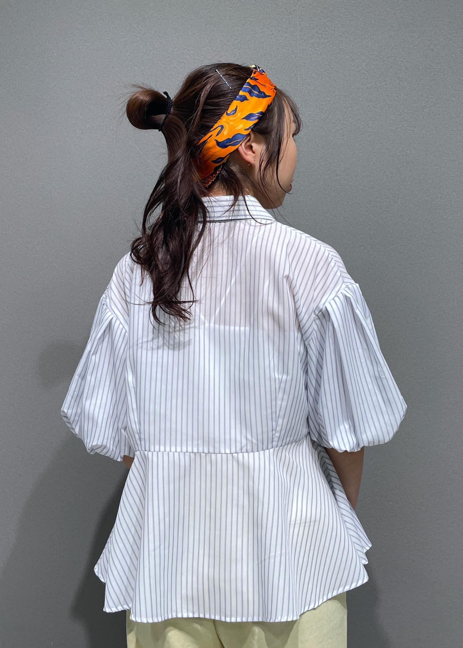 バルーンスリーブ+ペプラムシルエットでフェミニンなデザインのシャツです☺︎