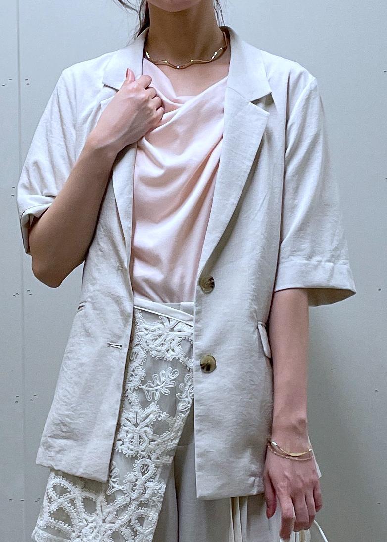 VIS【美easy】ハーフスリーブジャケット/セットアップ対応・洗えるキナリ / S¥7,909レビュー167cmの身長で体の厚みがないのでSサイズでもちょうどよく感じました。キレイめに着たい方は普段のサイズよりワンサイズ下げてもいいと思います◎