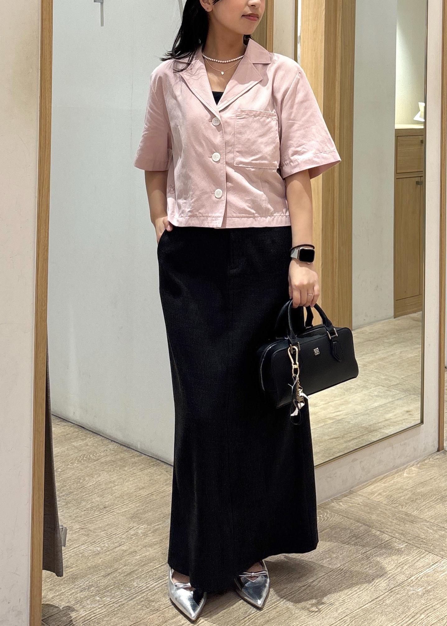 綿混のマットな素材感と大きな襟でカッコよく見えるので、低身長さんの大人見えアイテムとしてぴったりです☺︎