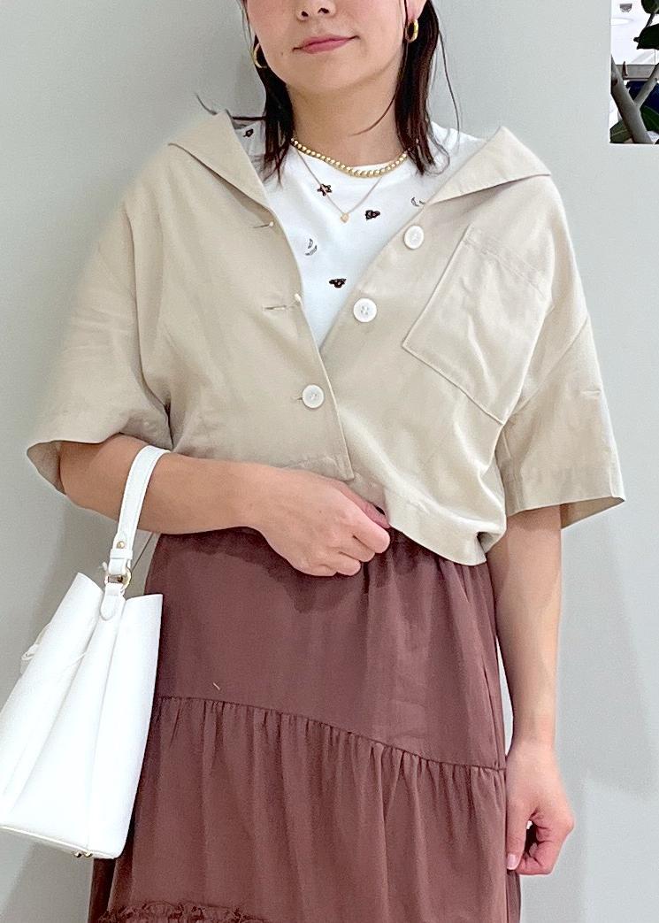 アウトレットVIS【Chocomoo】VIS別注バック刺繍クロップドハーフスリーブシャツベージュ / F¥3,953レビューチョコムーコラボアイテムです。短めの丈で羽織りとしても便利なシャツです。夏にピッタリの薄めのカラーと刺繍がポイントになり、マリンコーデにピッタリです。洗濯も出来るので、暑い季節も扱いやすいです。