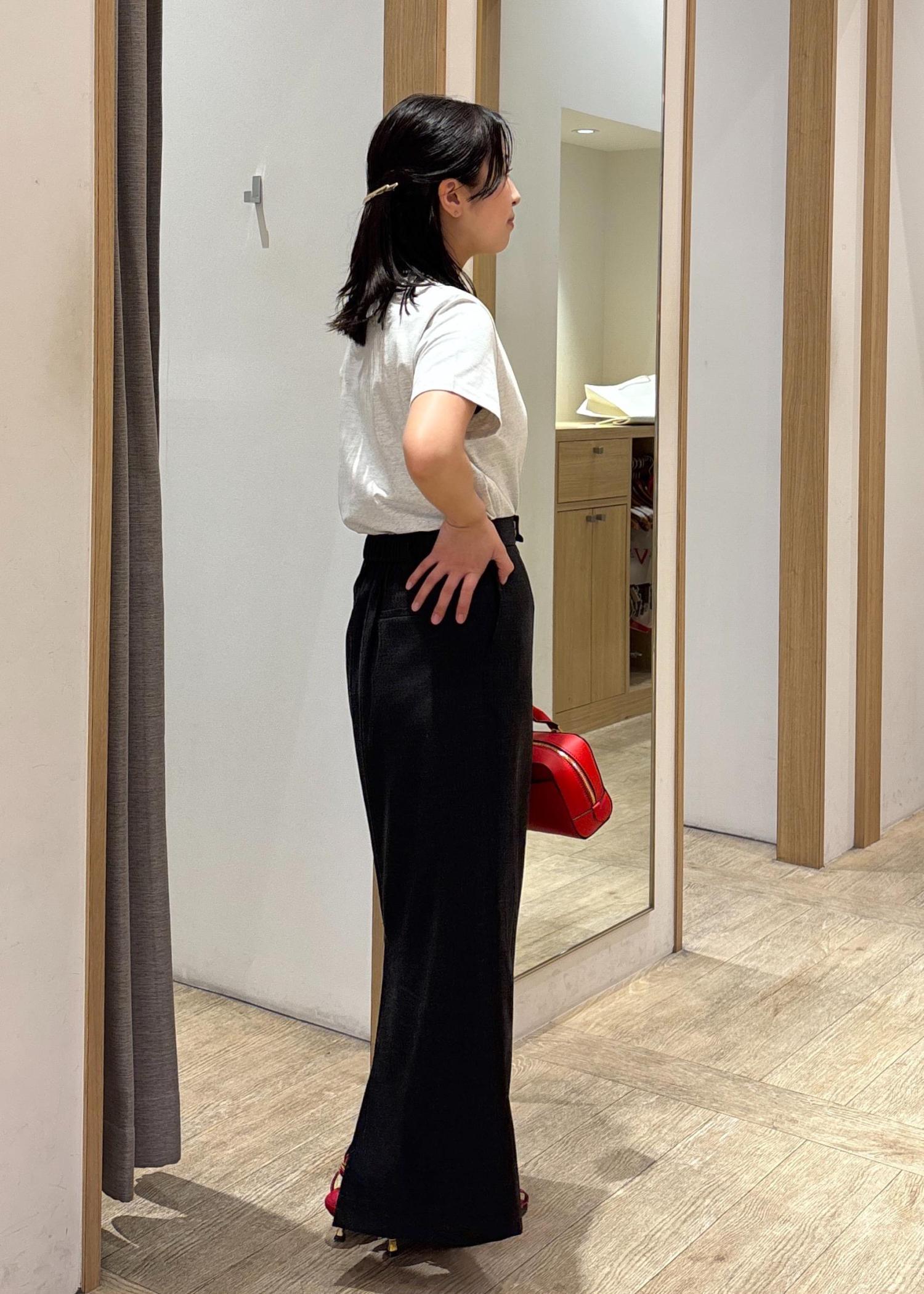 Tシャツを大人キレイめに着こなすお出かけ着コーデです。