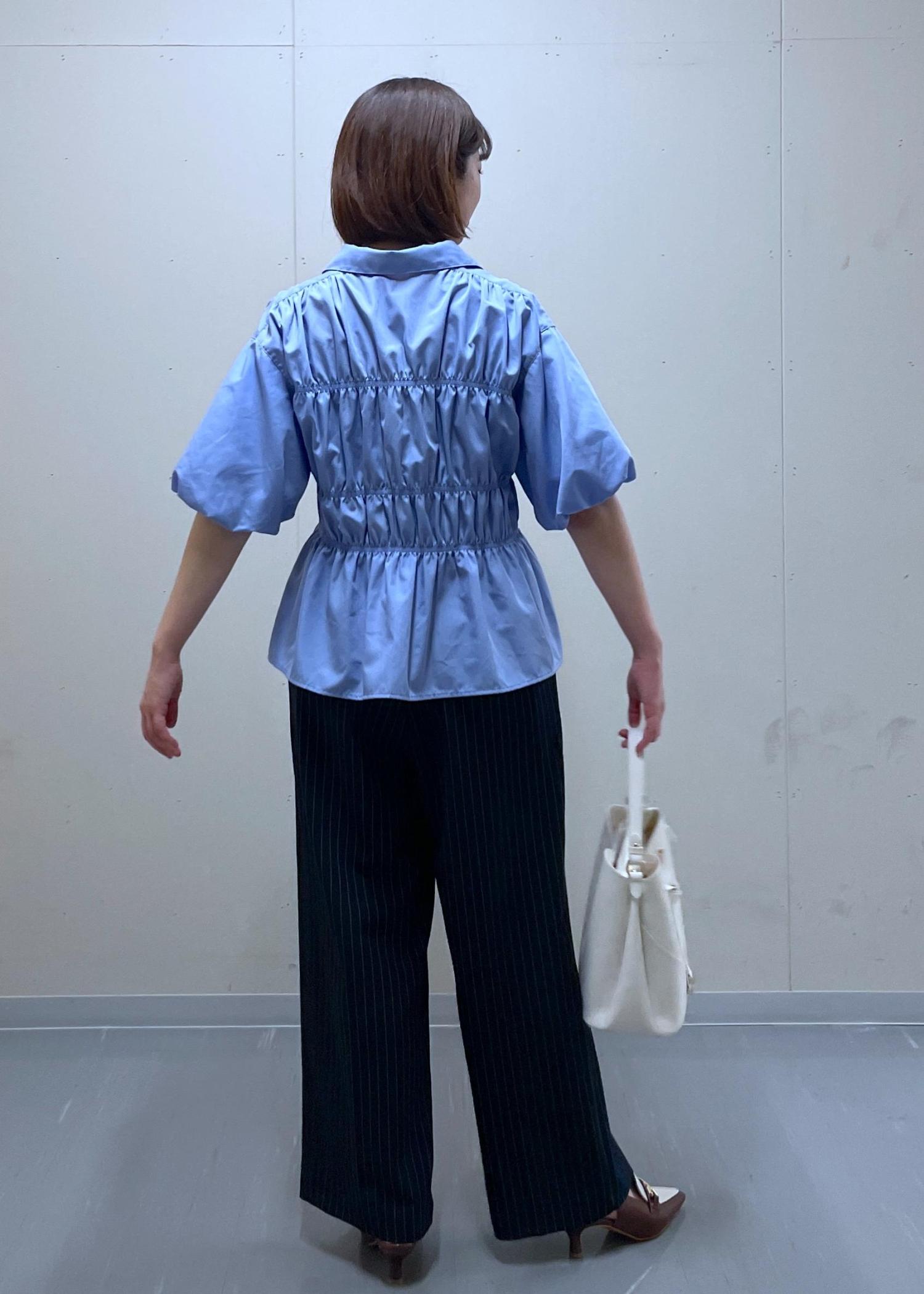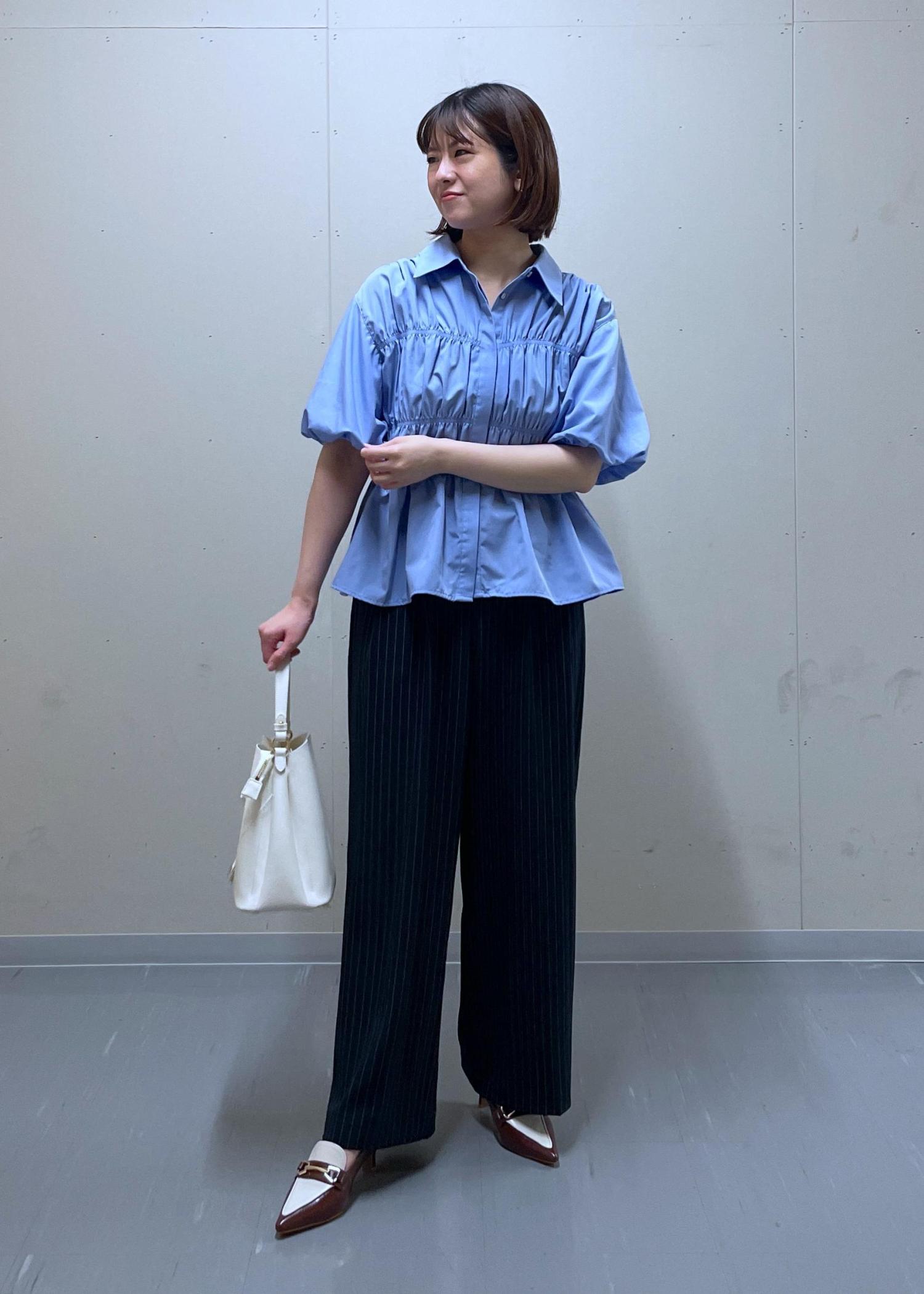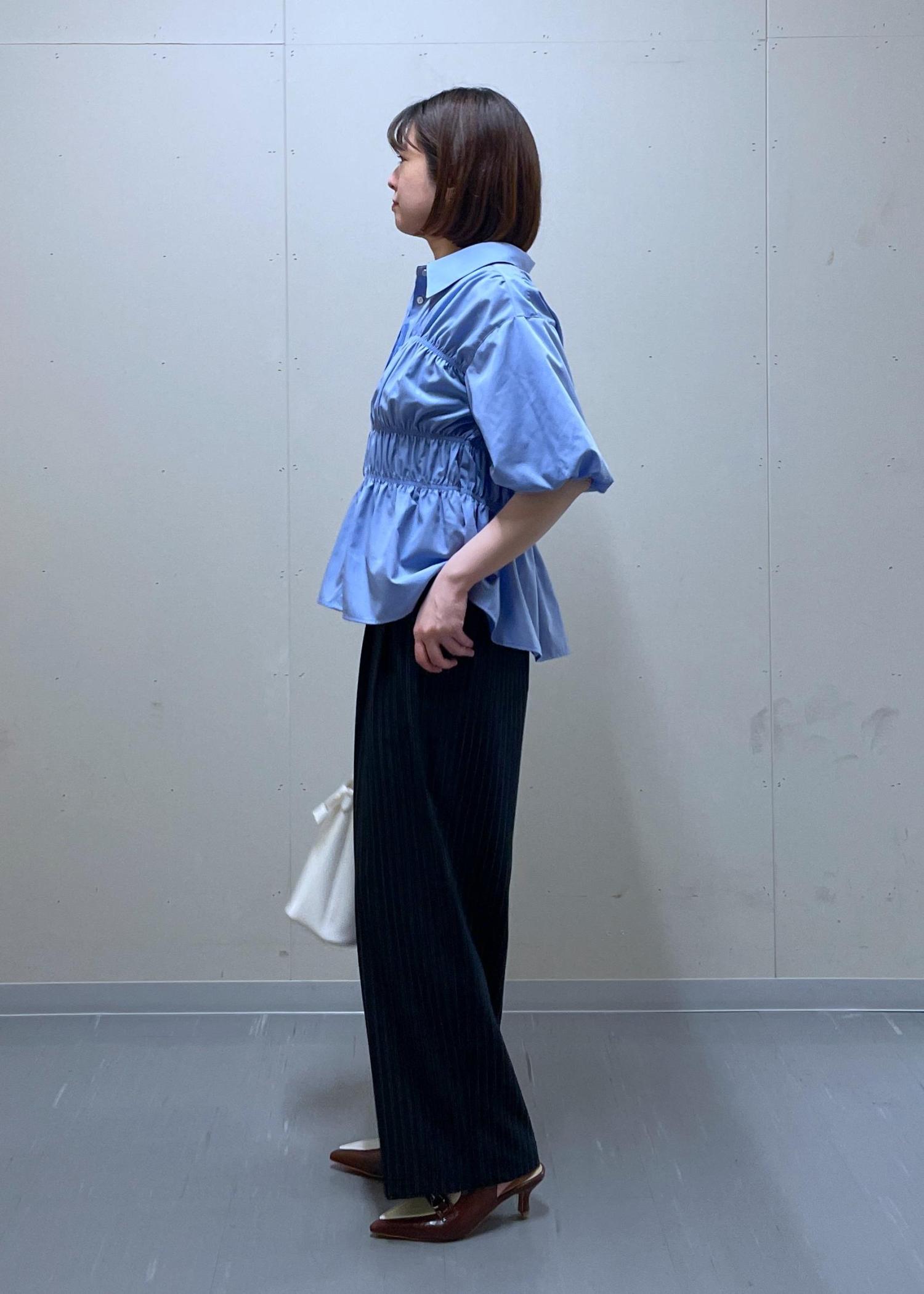 VIS【新色追加】【店頭人気】シャーリングバルーンシャツブルー / F¥5,489レビュー身長156cmで着丈は腰にかかるくらいです。
