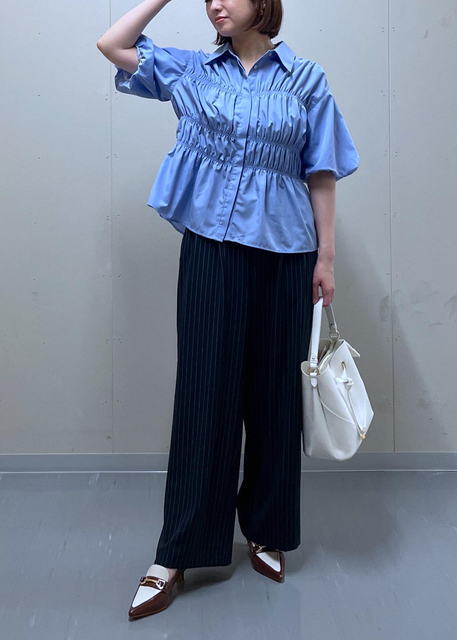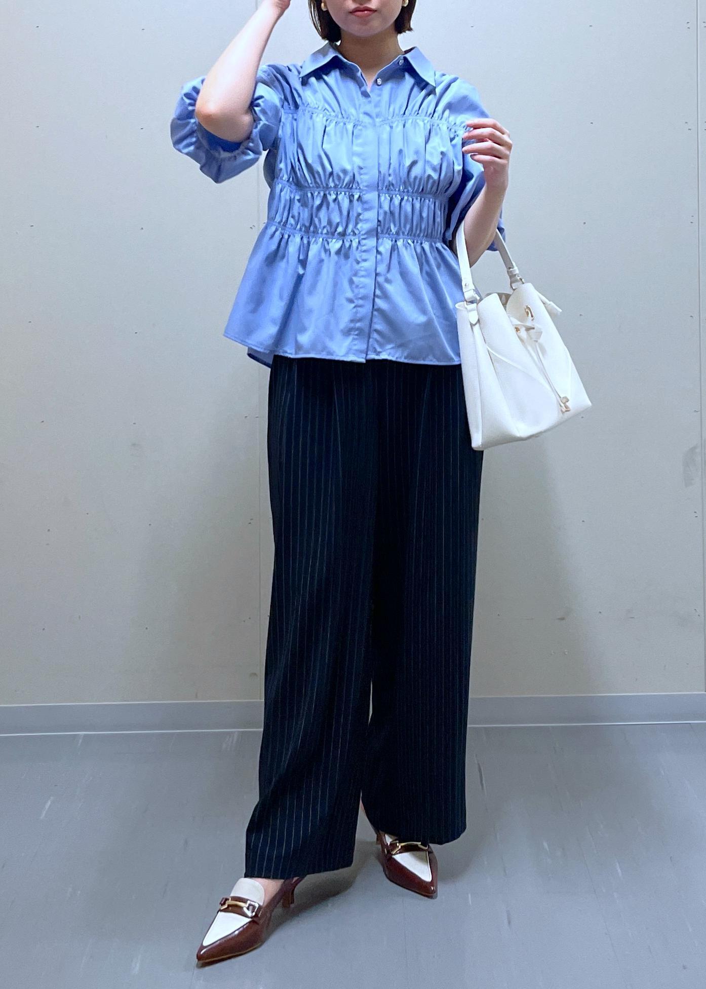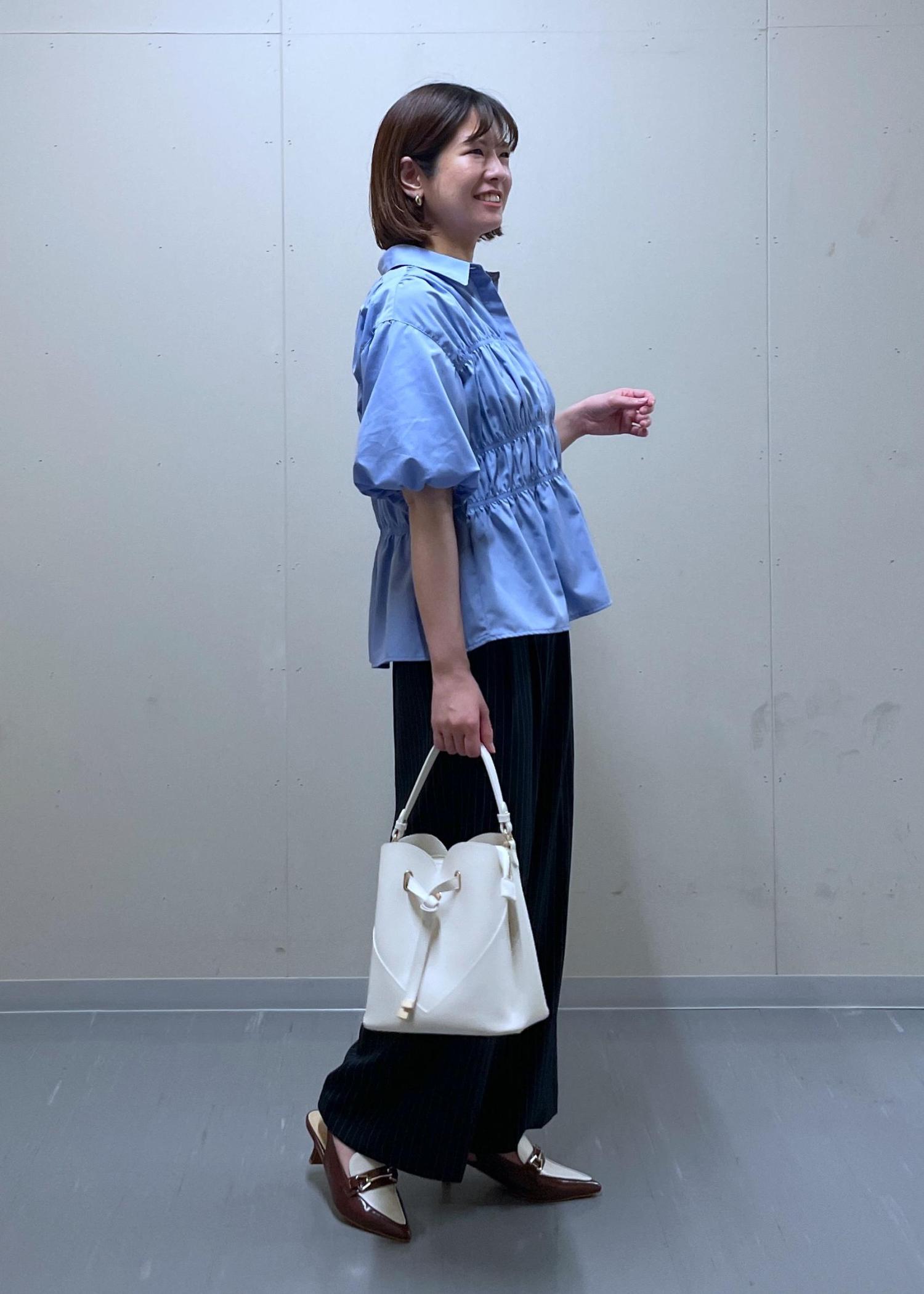VIS【新色追加】【店頭人気】シャーリングバルーンシャツブルー / F¥5,489レビュー身長156cmで着丈は腰にかかるくらいです。