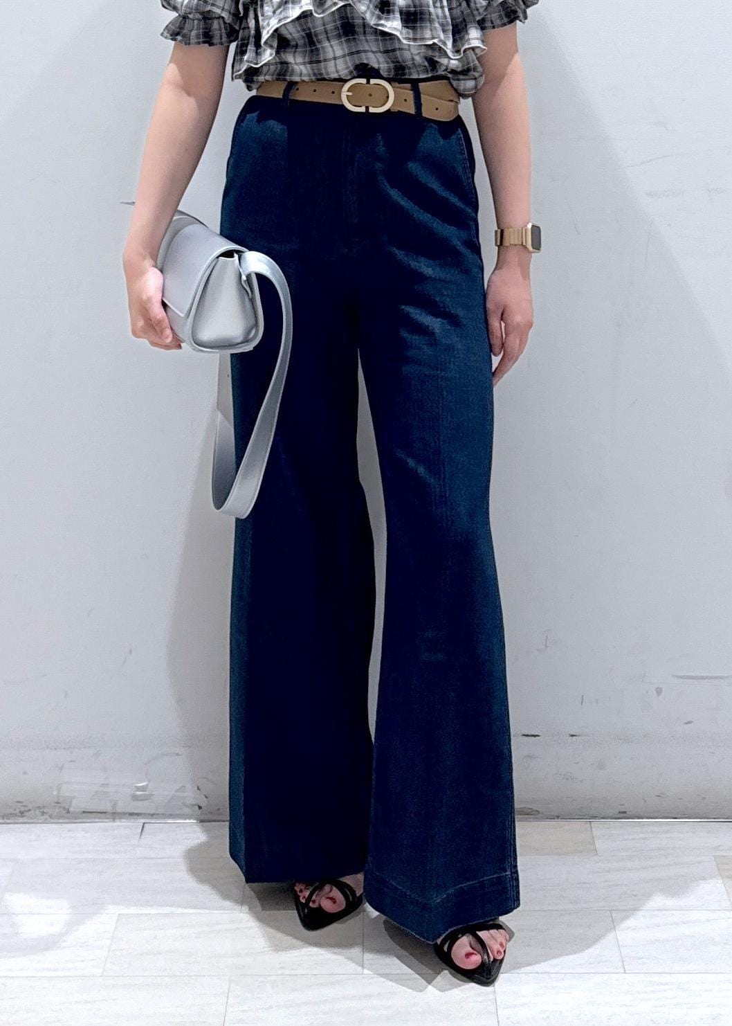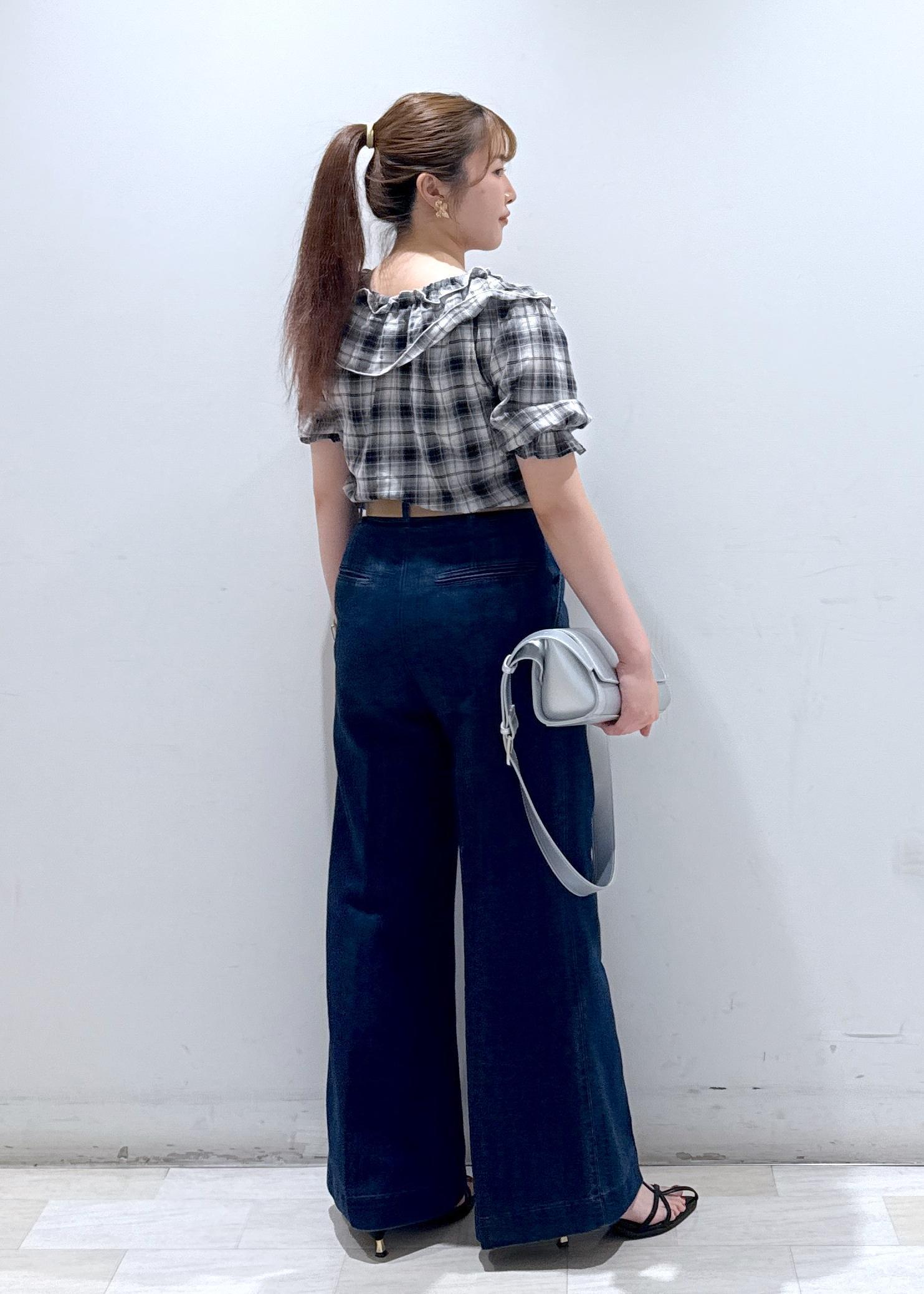 ボトムスは広がりのないワイドデニムと合わせることによって、よりスッキリとして見せて骨ストだからこそ活かせる脚長を意識して着用しています。