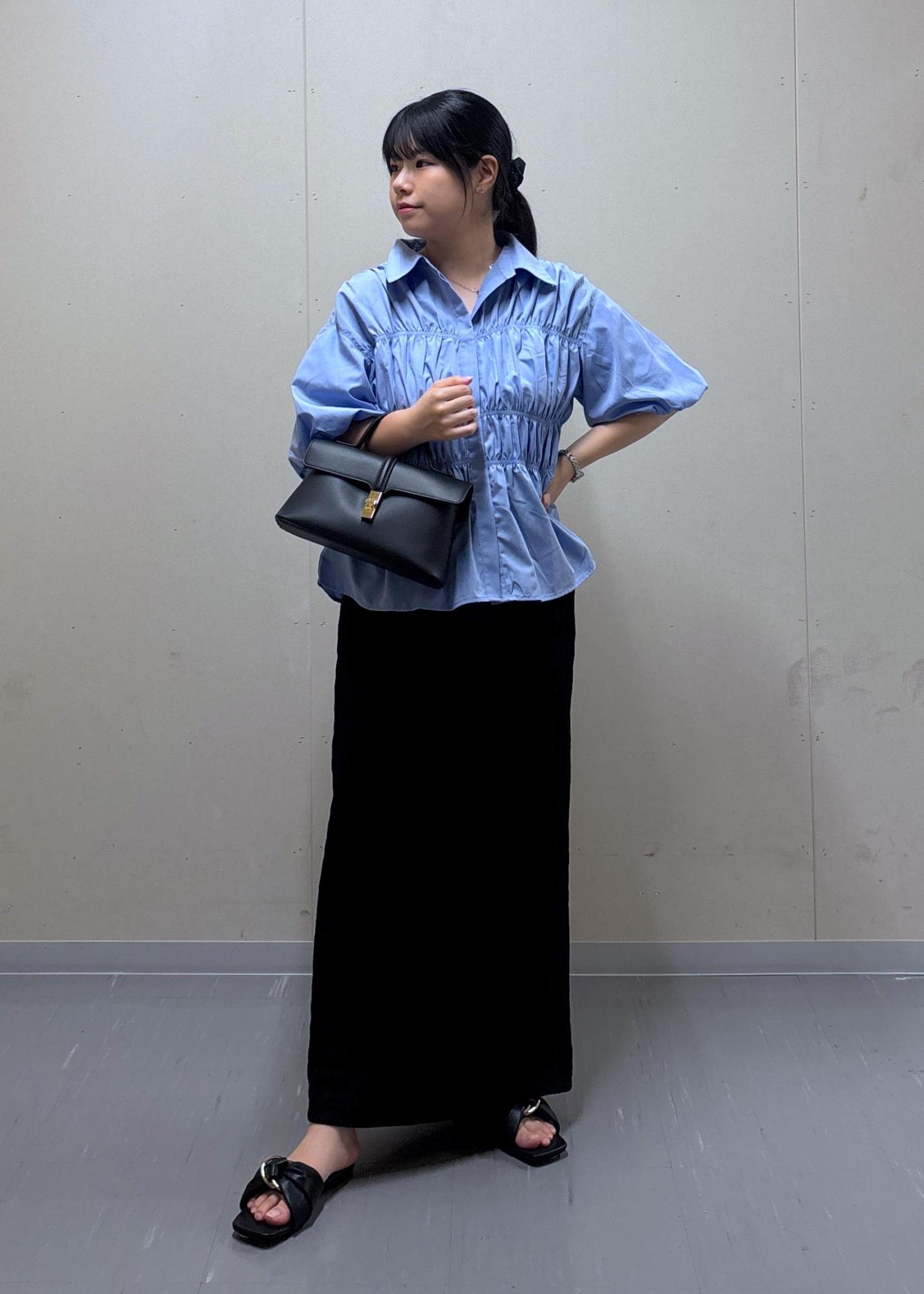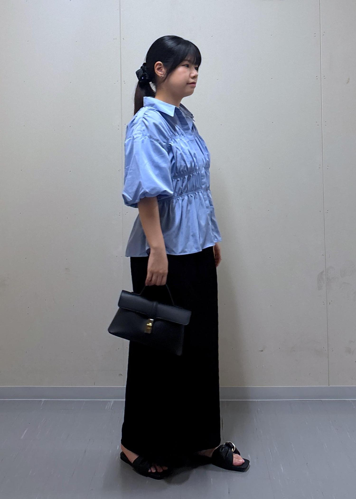 ラインを拾わないサイズ感ですが、ウエストマークがあるので細見えシルエットです◎ -