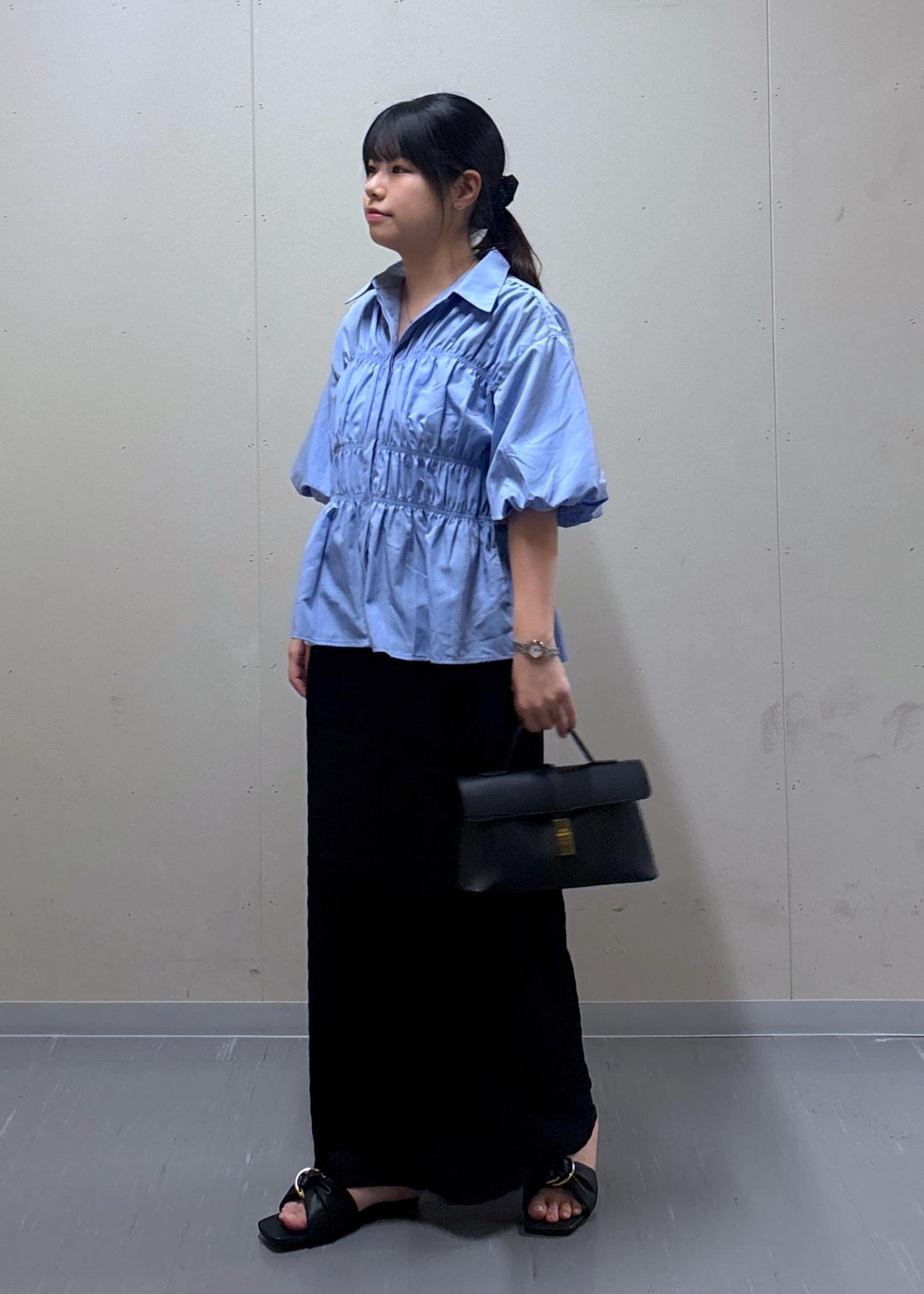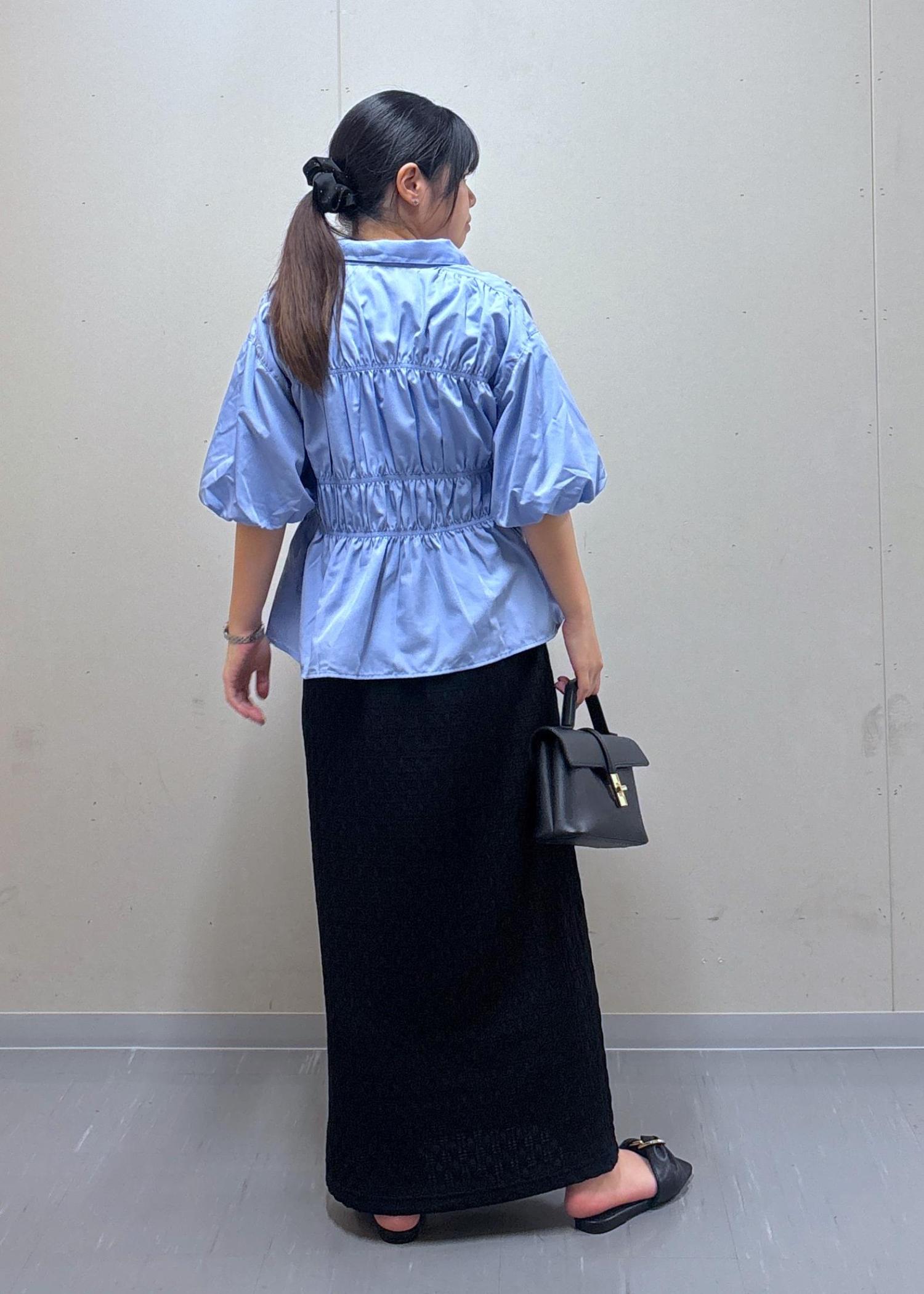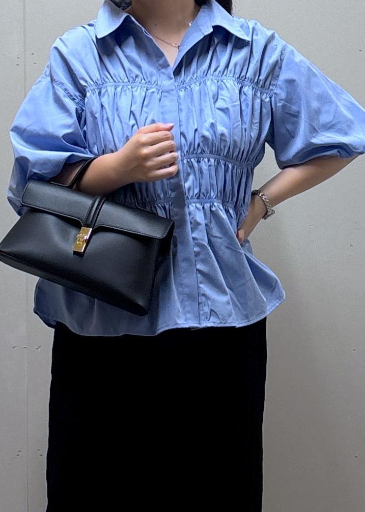 VIS【新色追加】【店頭人気】シャーリングバルーンシャツブルー / F¥5,489レビューシャーリングデザインで、一枚で着映えします!