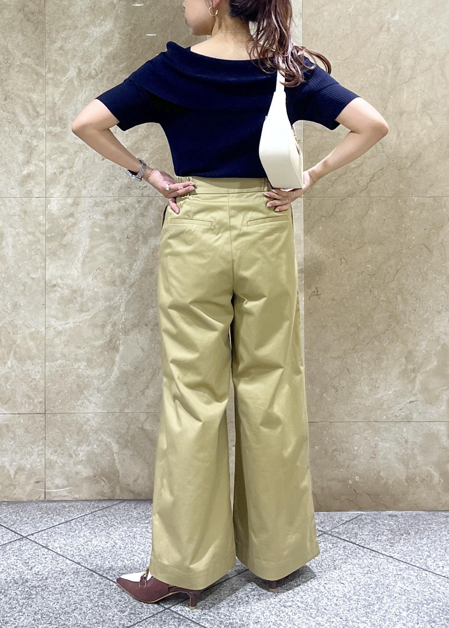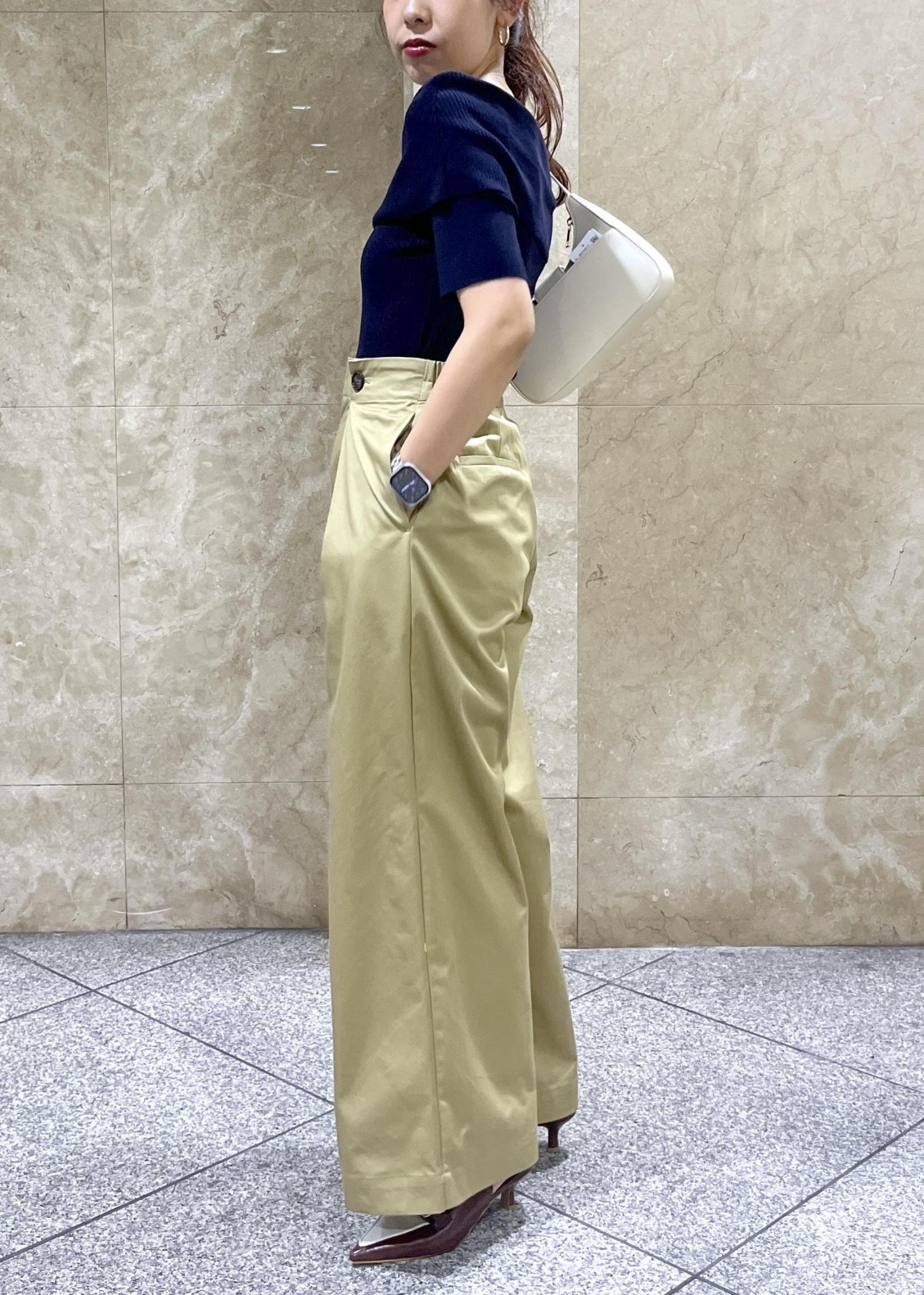 サラッと少しシャリ感のある、ほどよい厚みの素材で、ウエストインもしやすく、アウトでもすっきりと着用いただけます◎