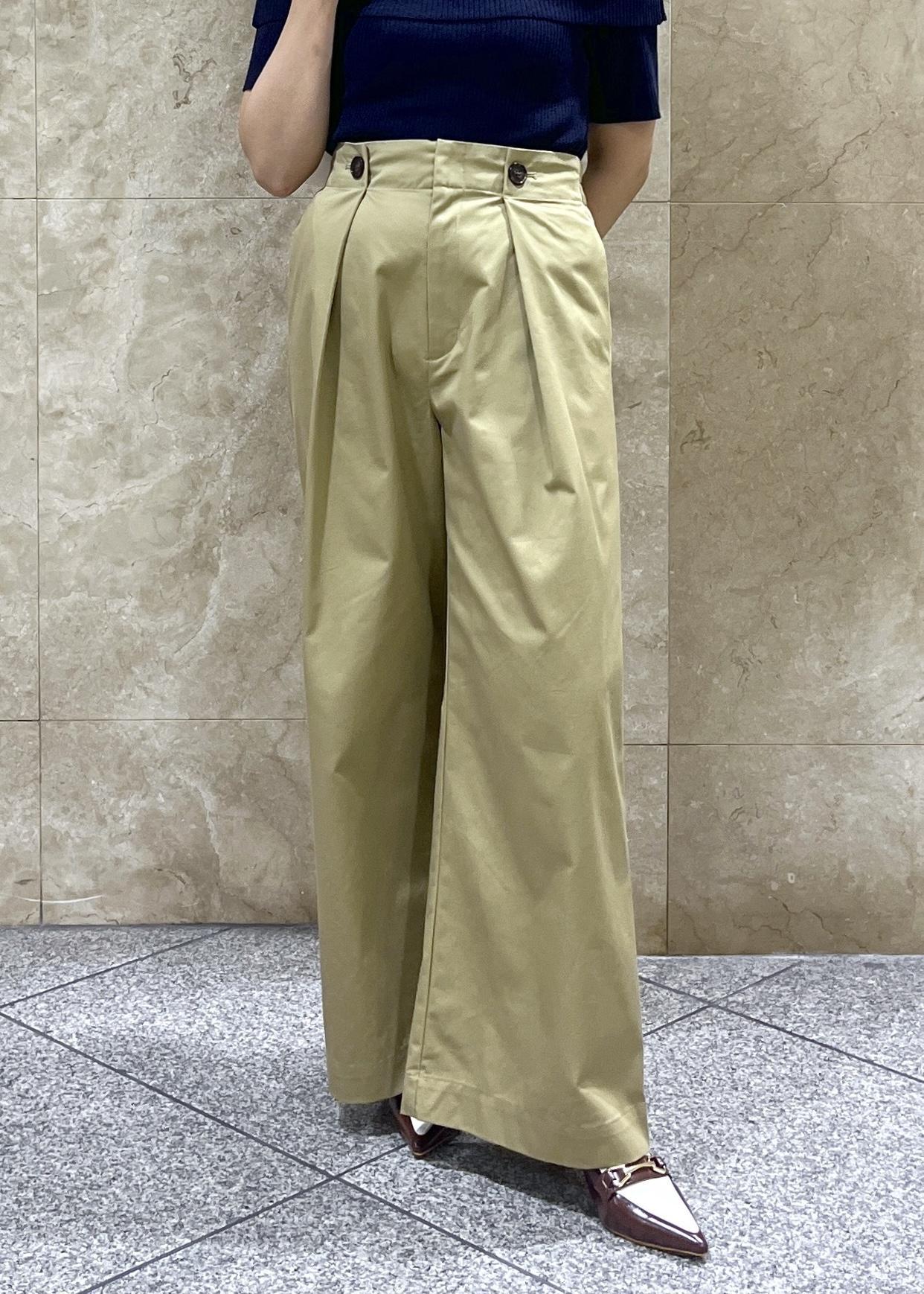 長めのトップスや羽織りと合わせると安心感もあり、インナーをインにしておけば、ウエストのボタンがワンポイントとなり腰位置を高く見せてくれるため、腰まわりをカバーしながらもスタイルもキープできます◎ -