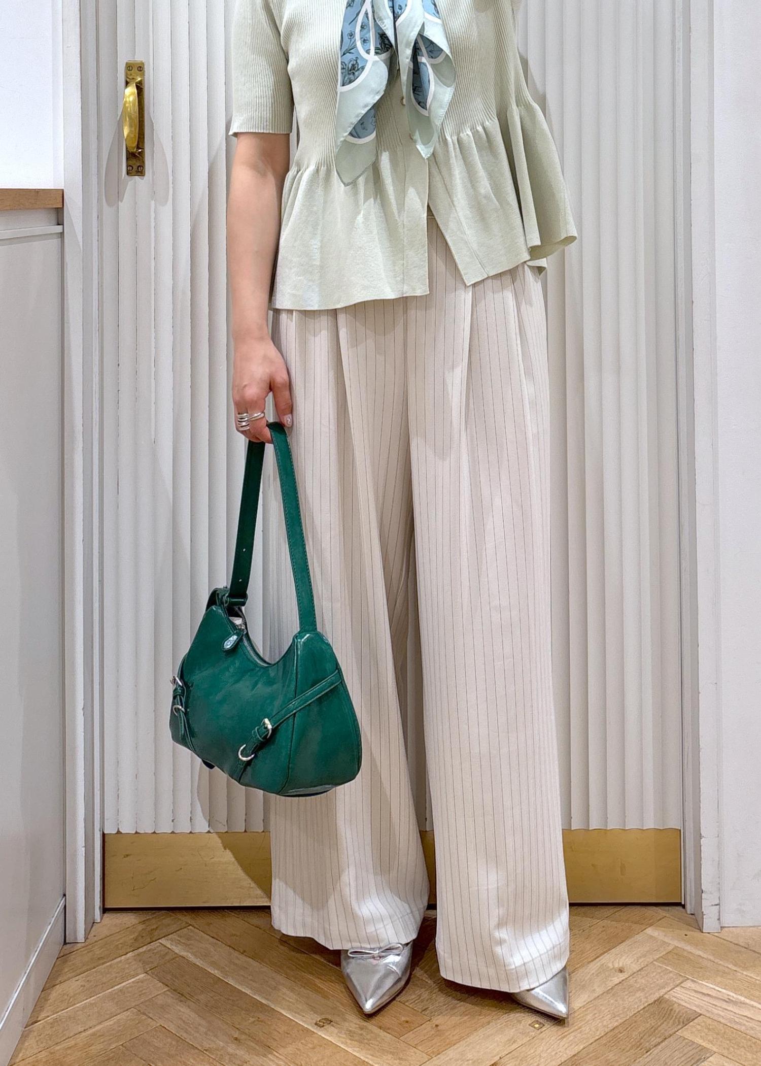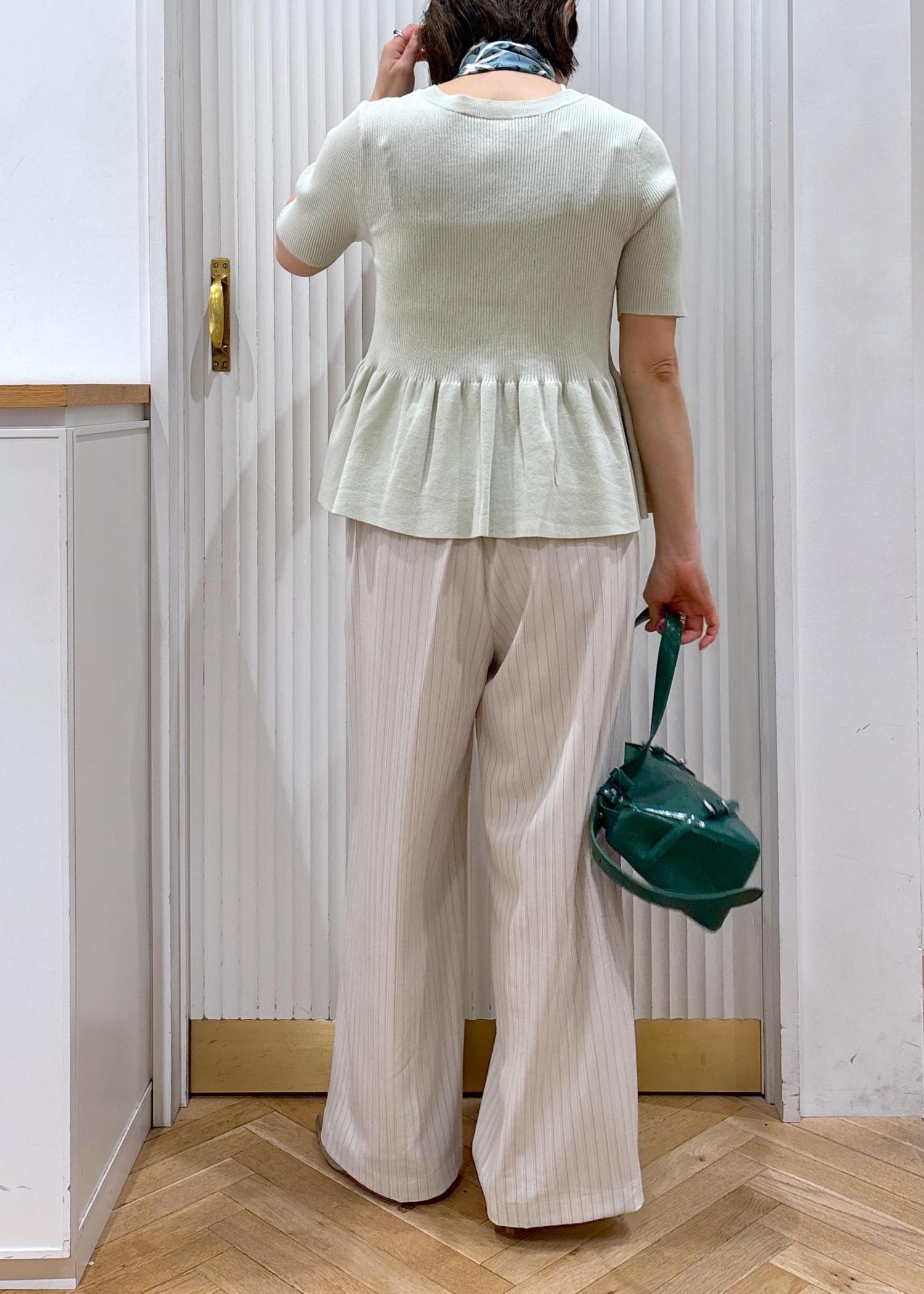 ミントグリーン×ストライプパンツのオフィスコーデ