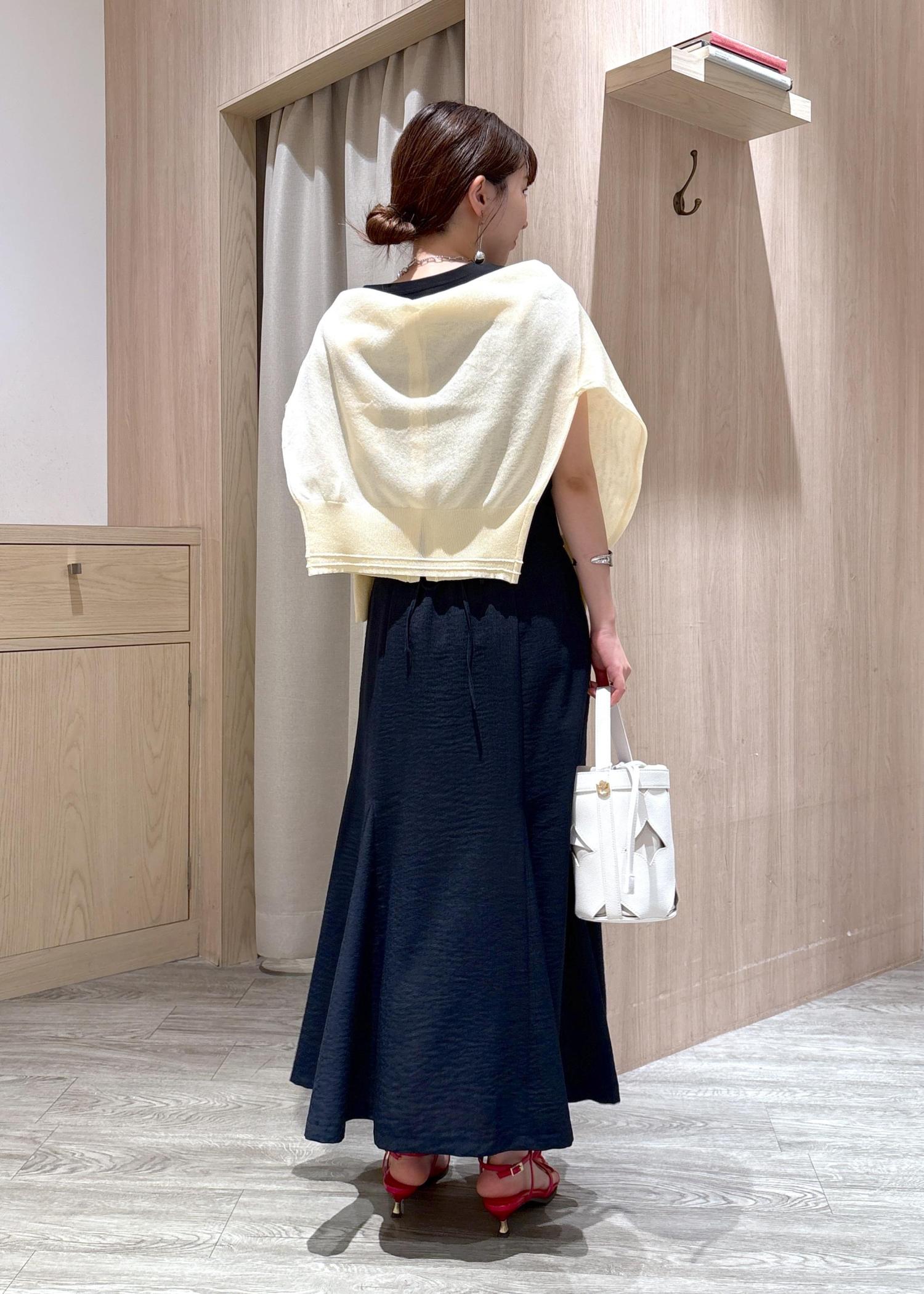 そのままだと少し寂しいのでカーディガンを肩巻きと、
