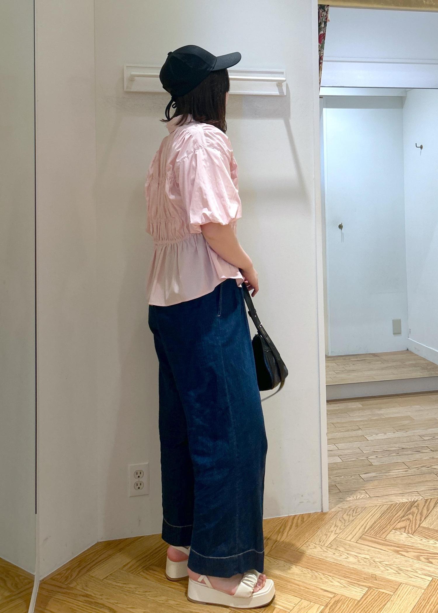 甘くなりがちなピンクシャツをデニムやキャップ合わせでカジュアルに着てみました♡