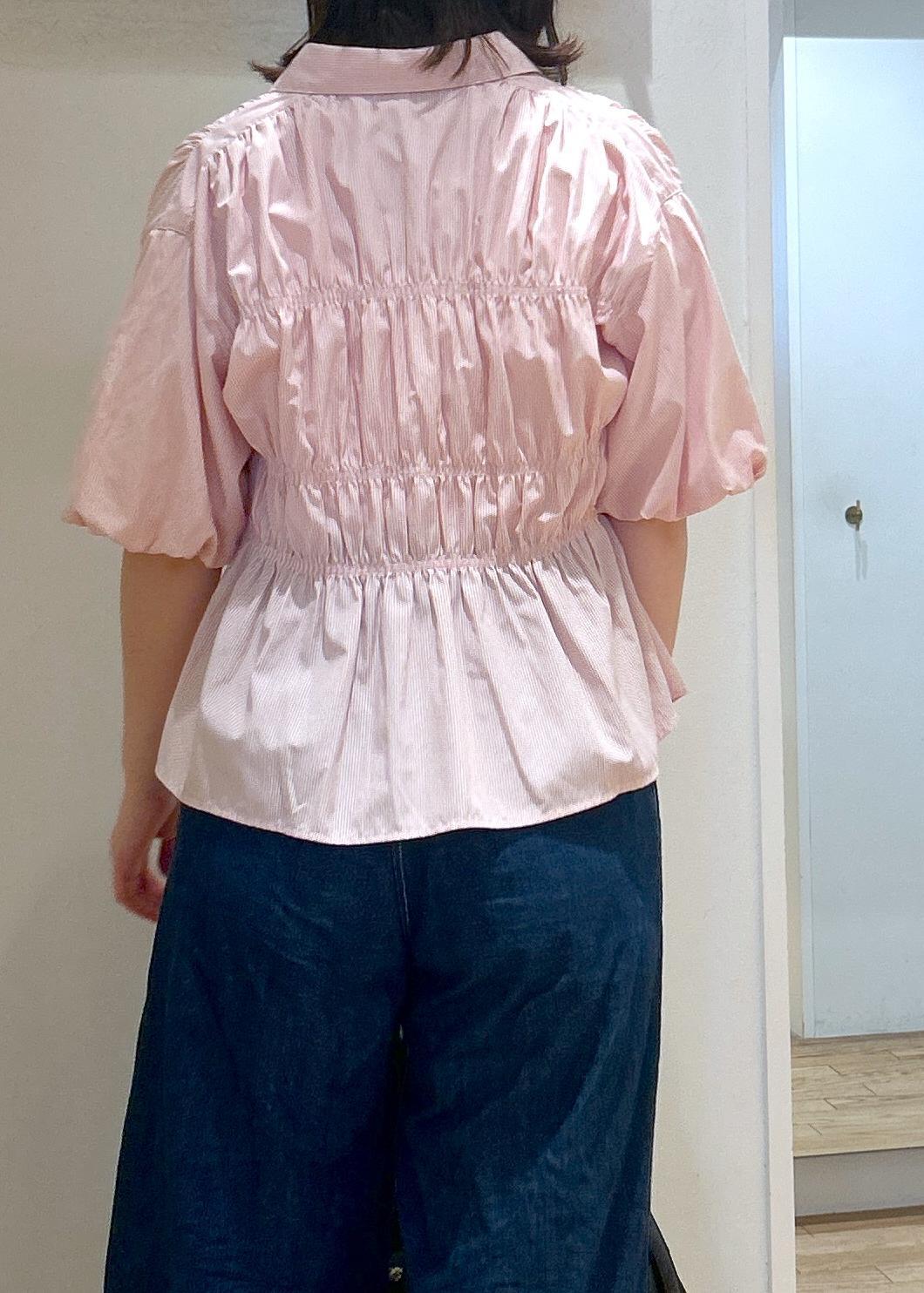 VIS【新色追加】【店頭人気】シャーリングバルーンシャツピンク系 / F¥5,489レビュー袖のバルーンスリーブにボリュームがあり気になる二の腕カバー◎