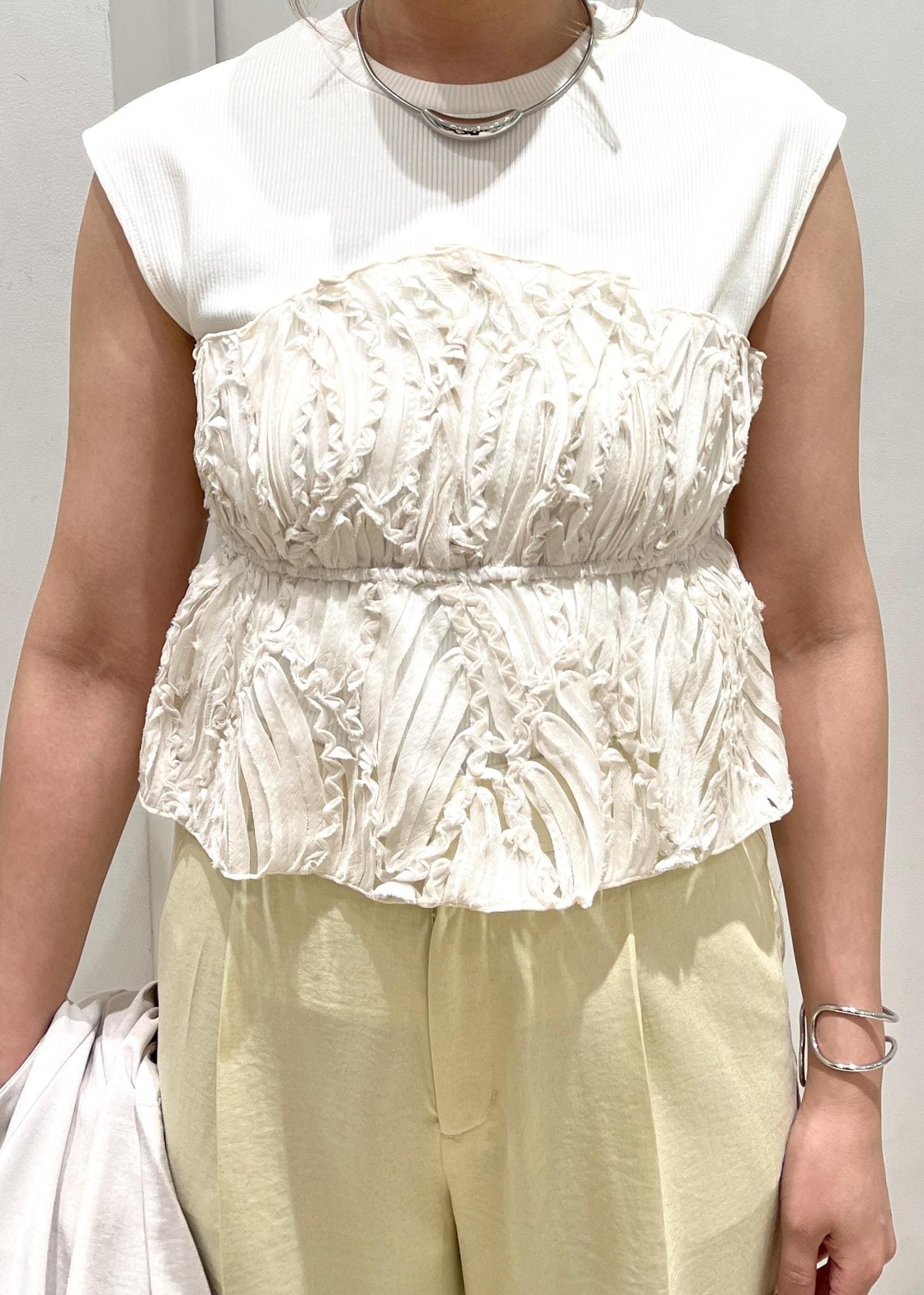 VIS旬なレイヤードスタイルが叶う!ビスチェドッキングフレンチスリーブプルオーバー【洗える】キナリ系 / F¥5,489レビューさらっとした着心地で伸縮性もあるので動きやすい!