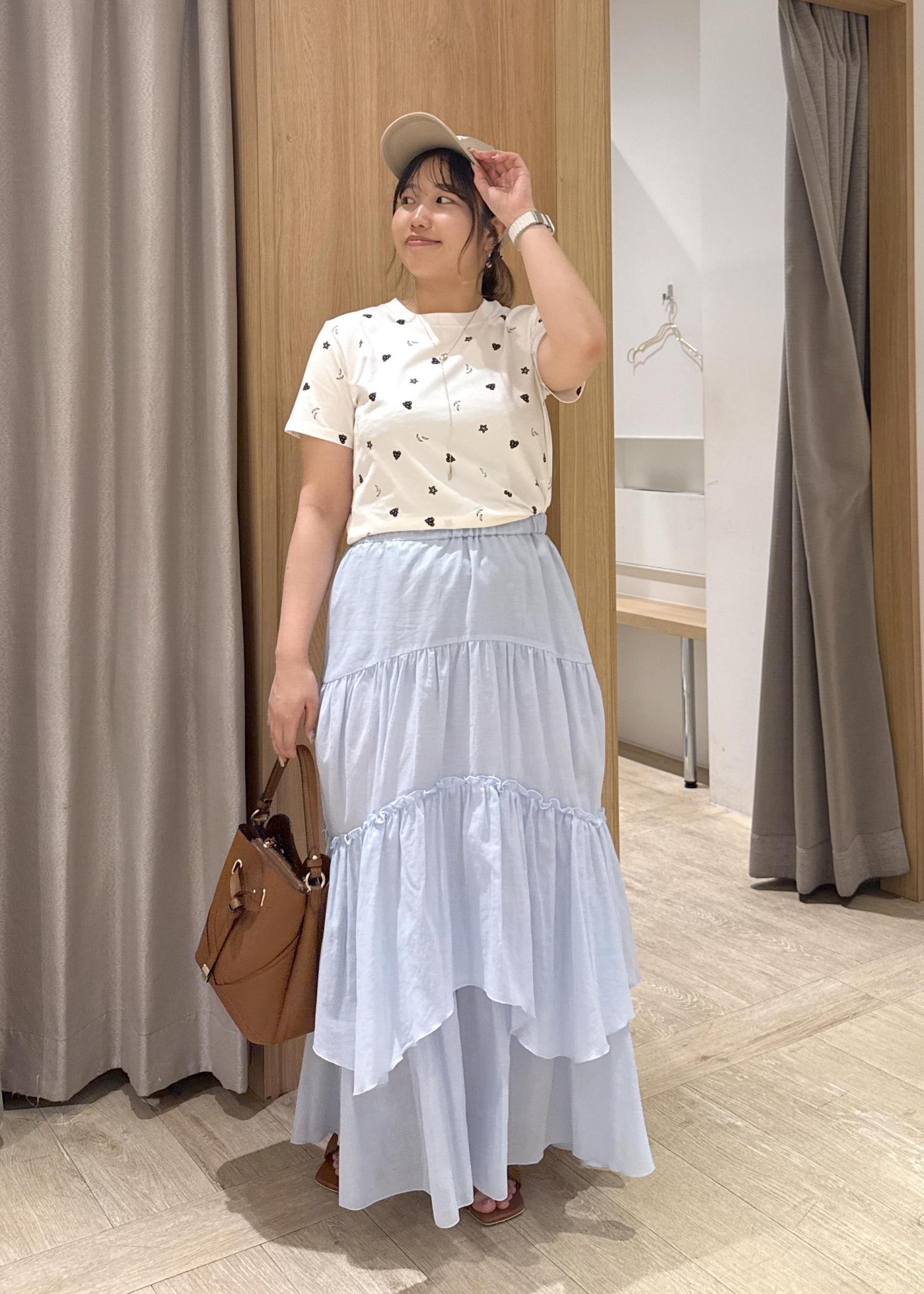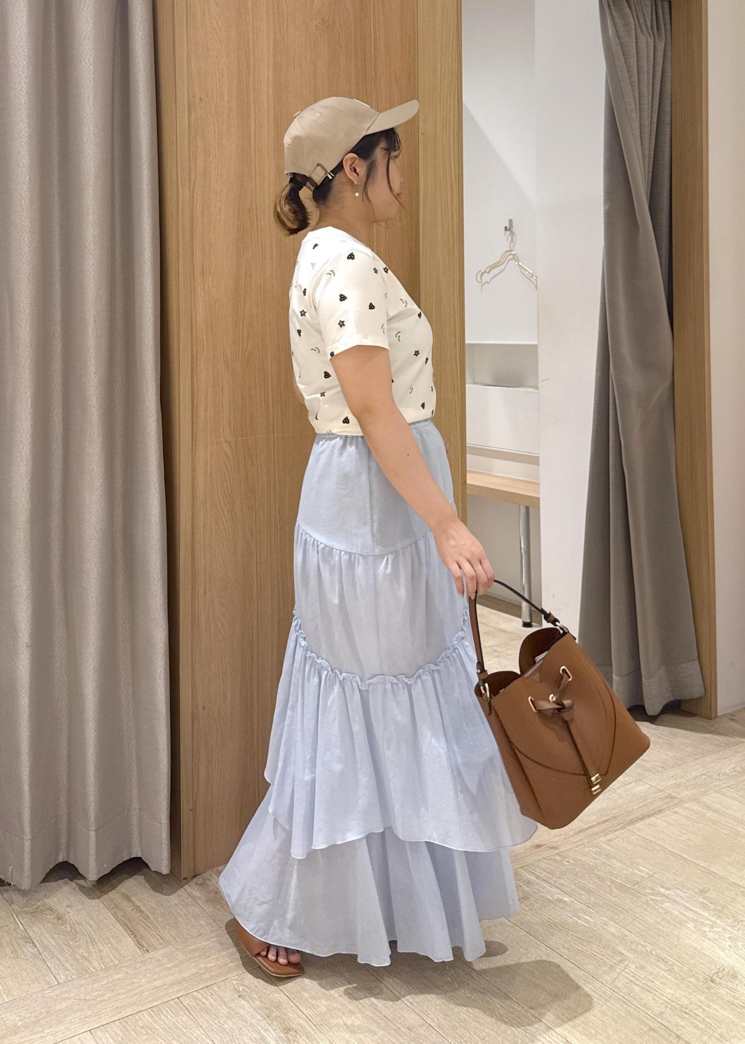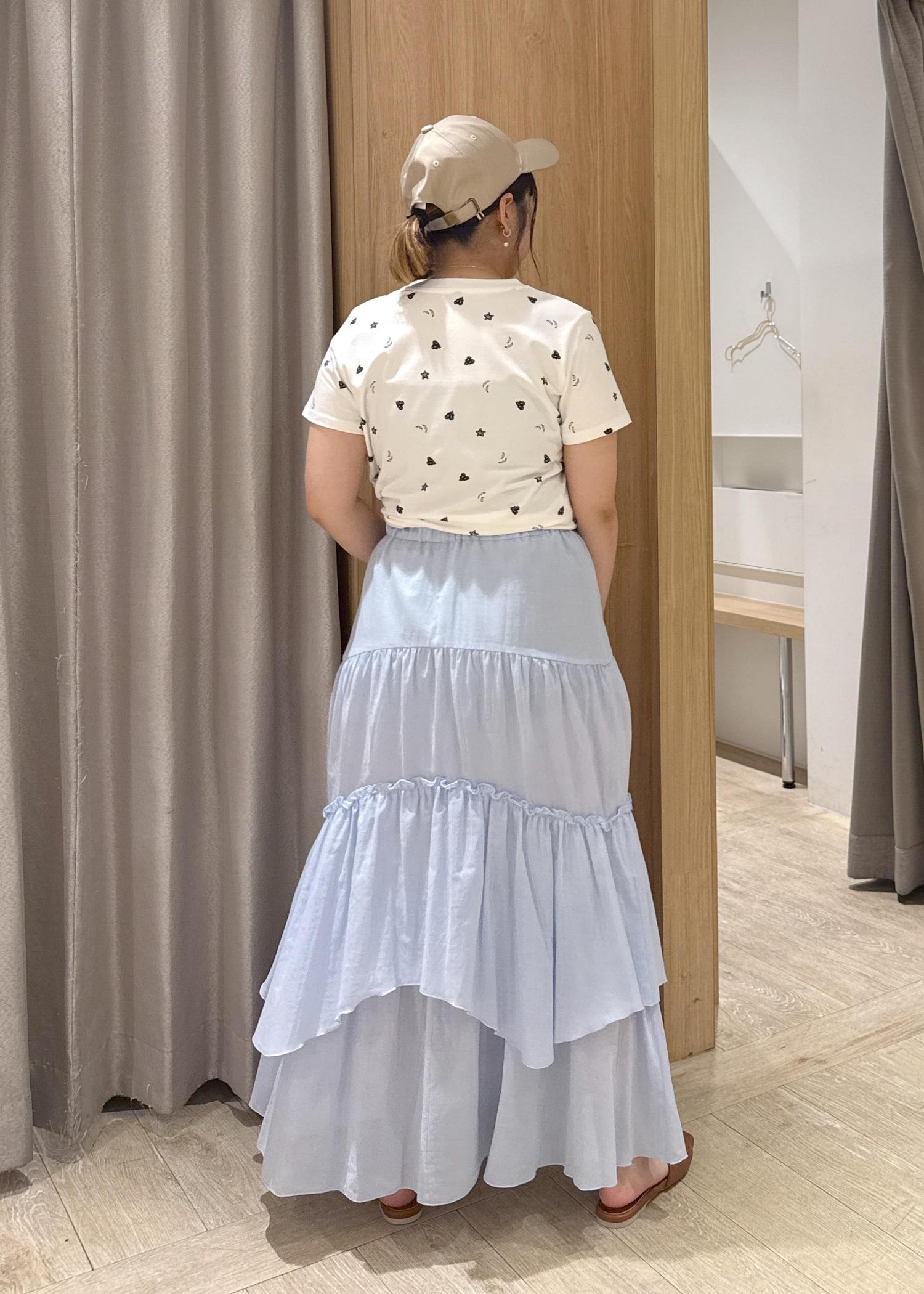 アウトレットVISボイルティアードスカートブルー系 / F¥3,955レビュー153cmの私ですが、くるぶしにかかるくらいの丈感でした。