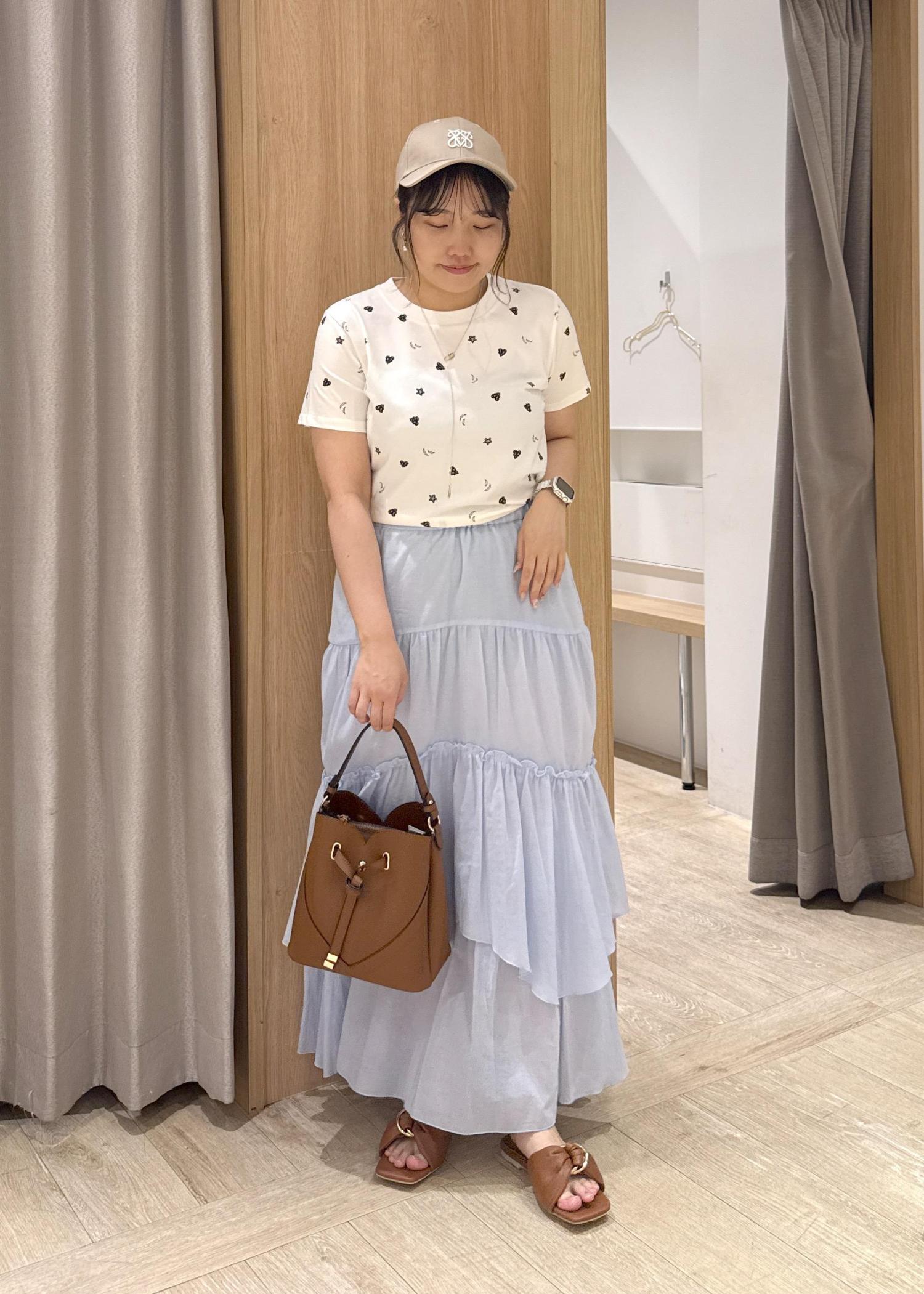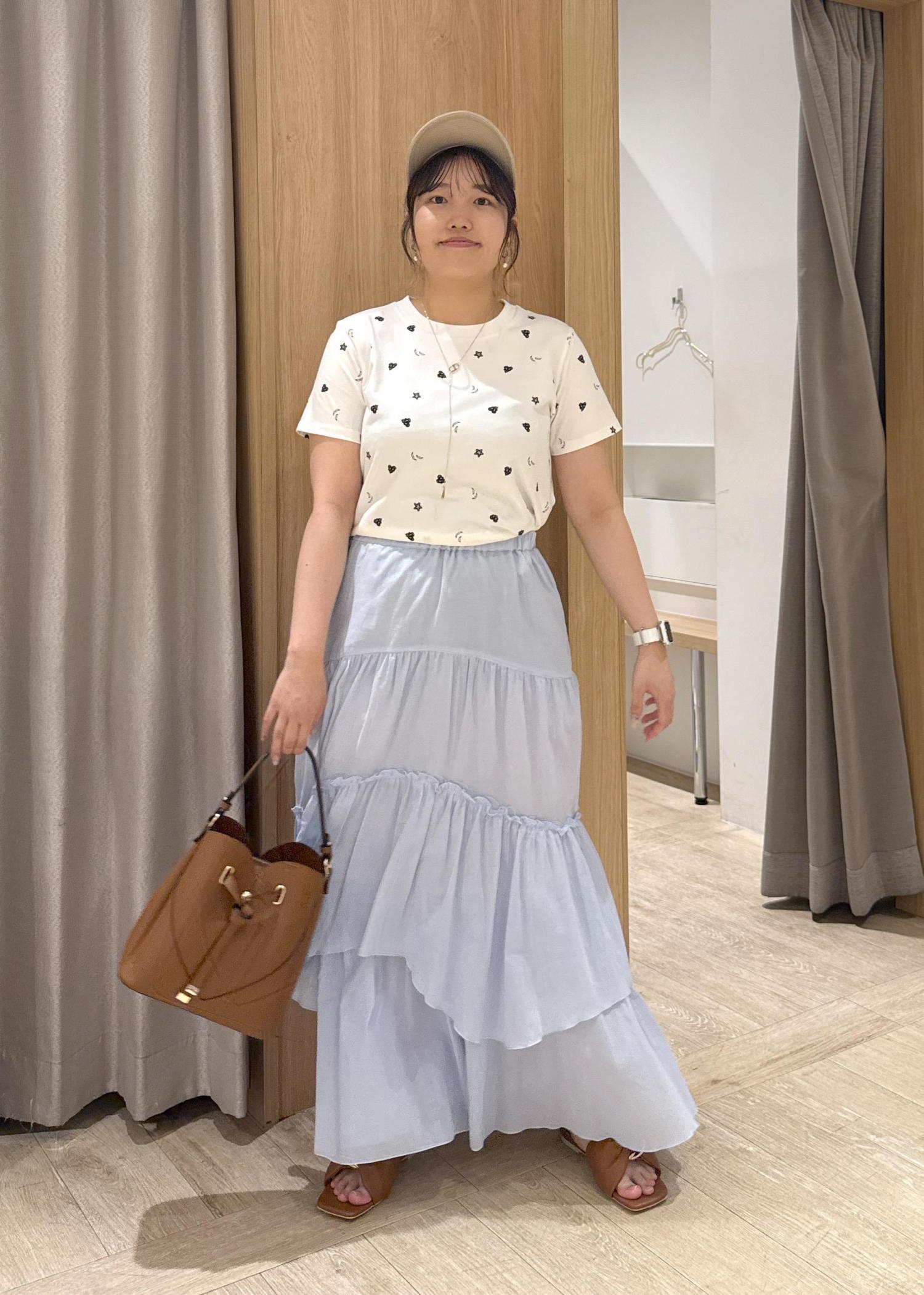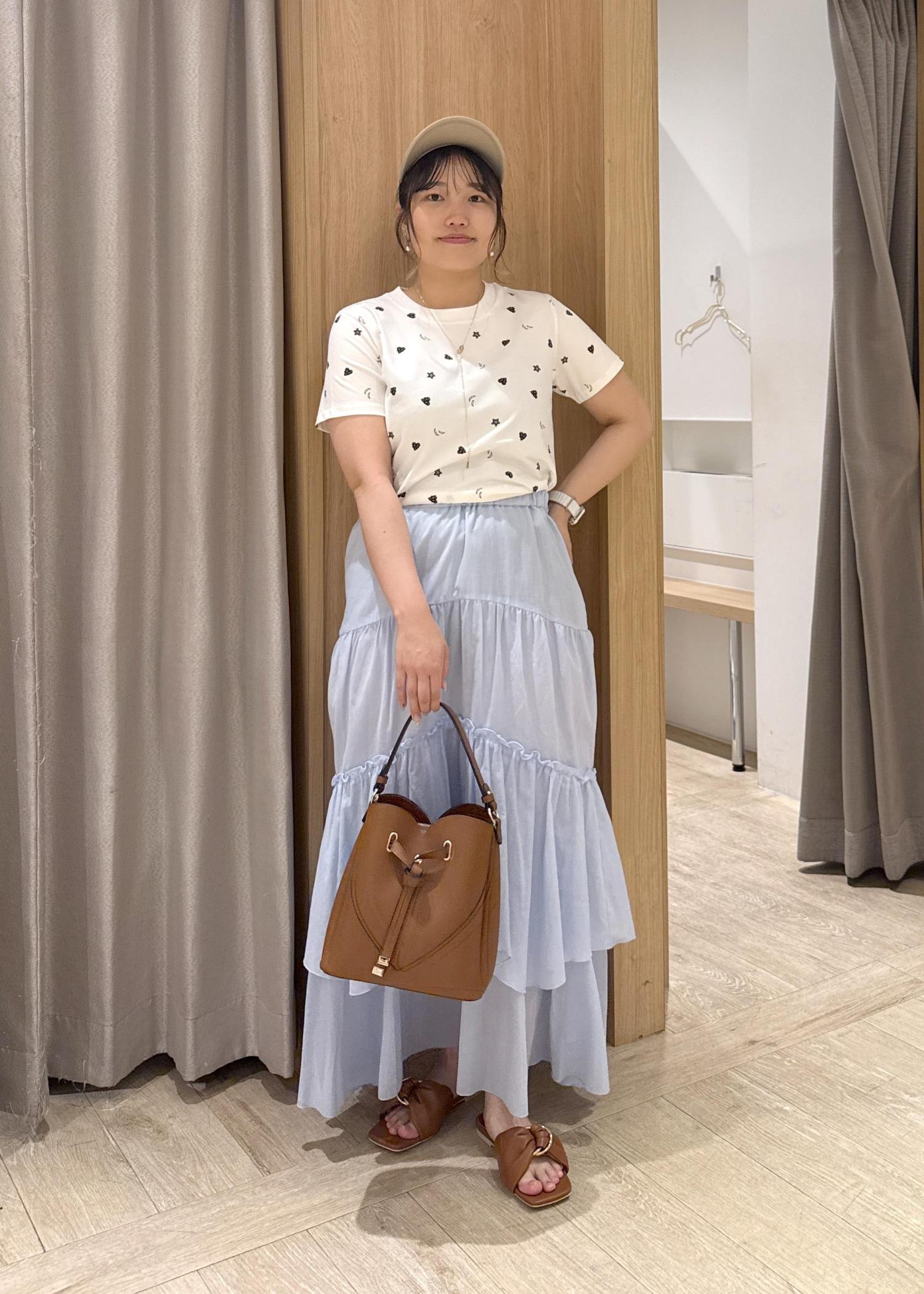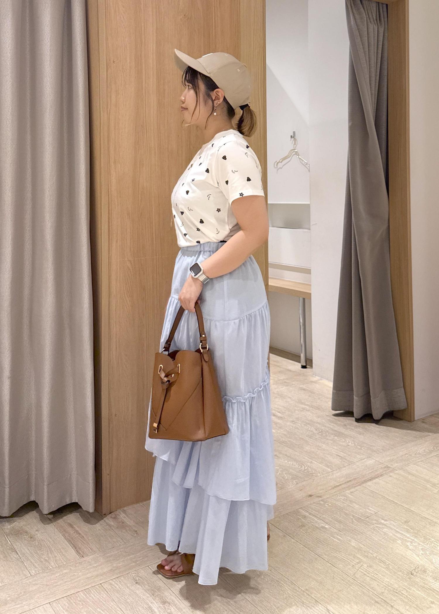 アウトレットVISボイルティアードスカートブルー系 / F¥3,955レビュー153cmの私ですが、くるぶしにかかるくらいの丈感でした。