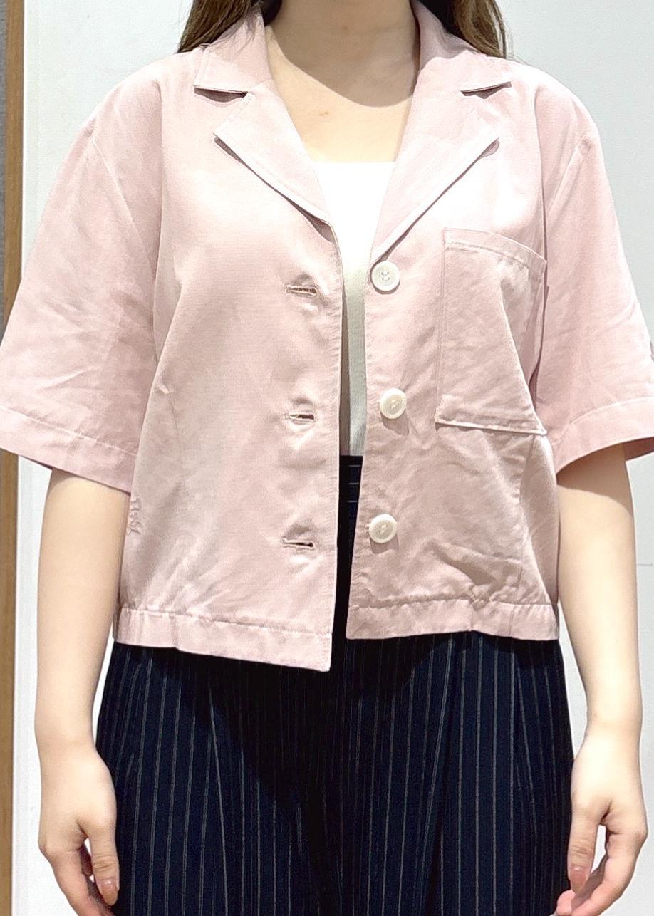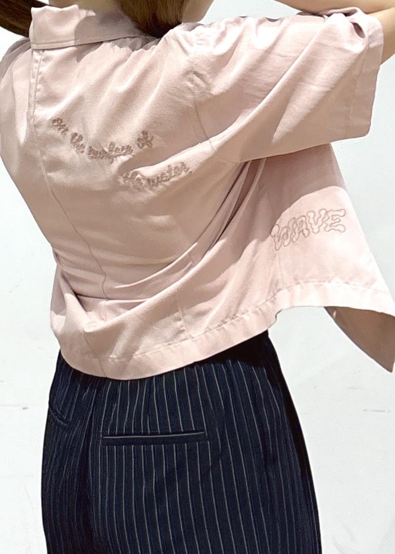 アウトレットVIS【Chocomoo】VIS別注バック刺繍クロップドハーフスリーブシャツピンク / F¥3,953レビュー【着用感】