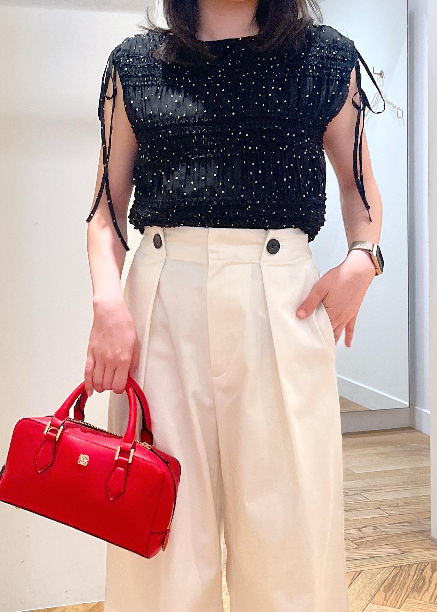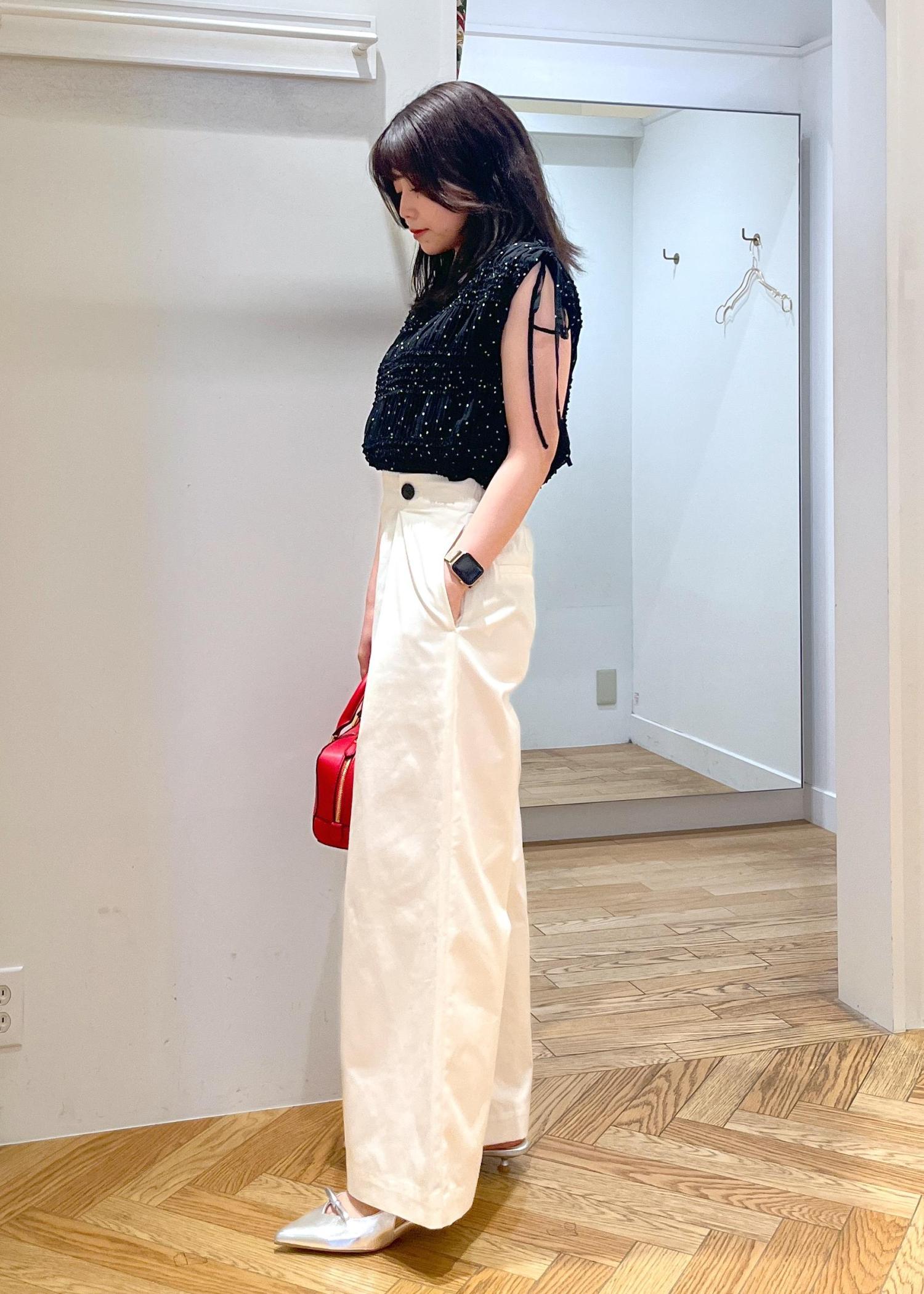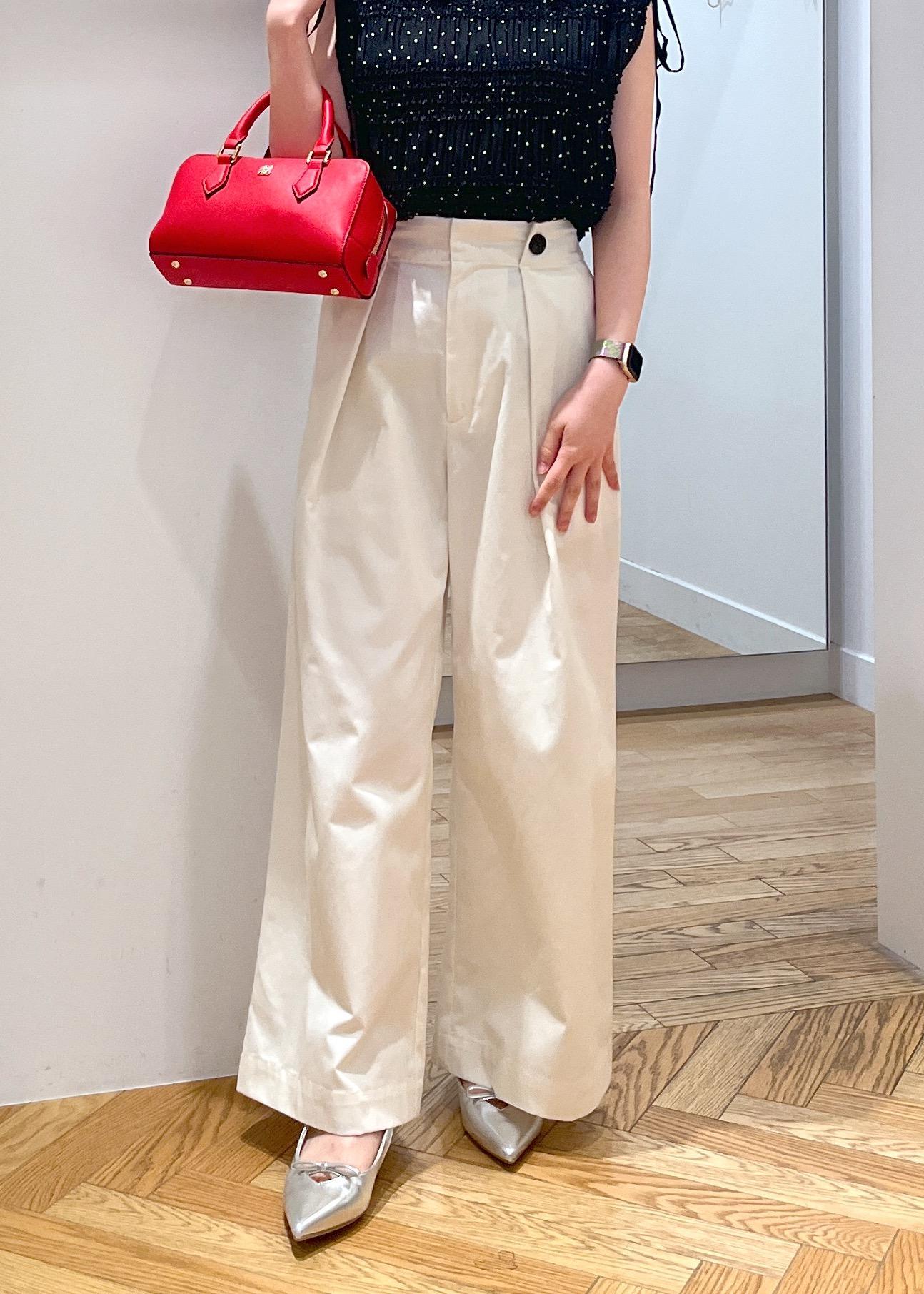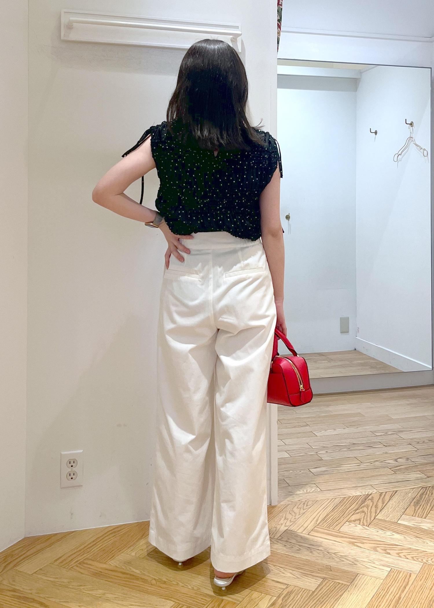 素材は張りがあるのでワイドシルエットがきれいにでます。