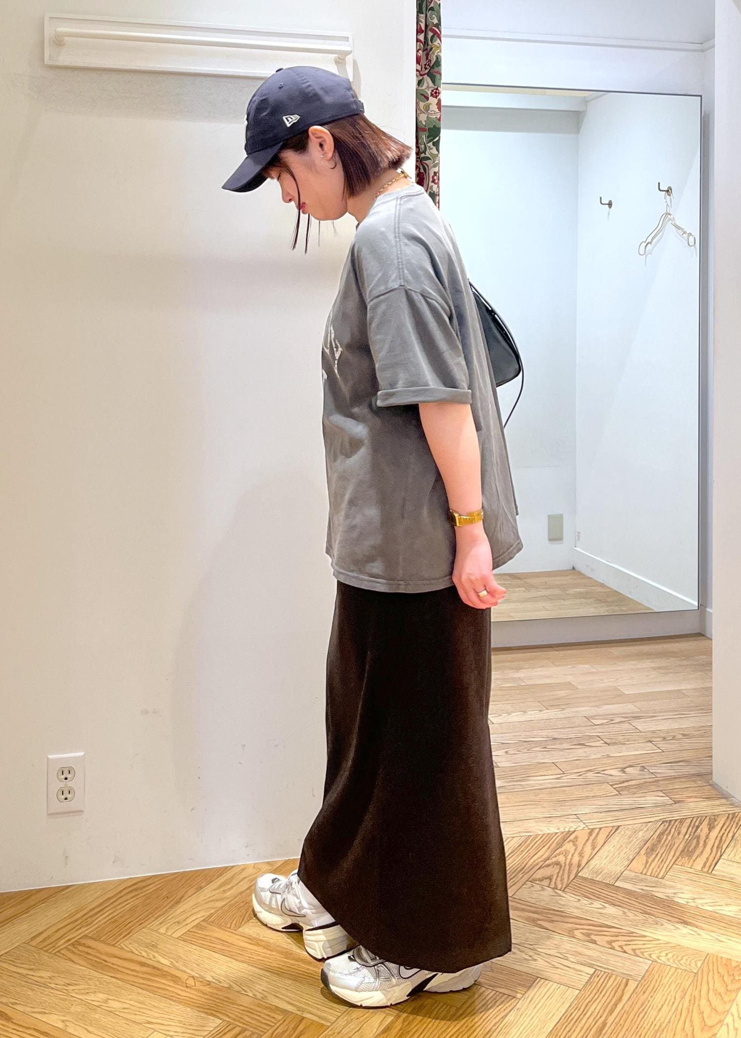 ロゴがインパクトのあるビックTは、タイトスカートと合わせることで、レディライクな印象も楽しめる大人カジュアルコーデに♡