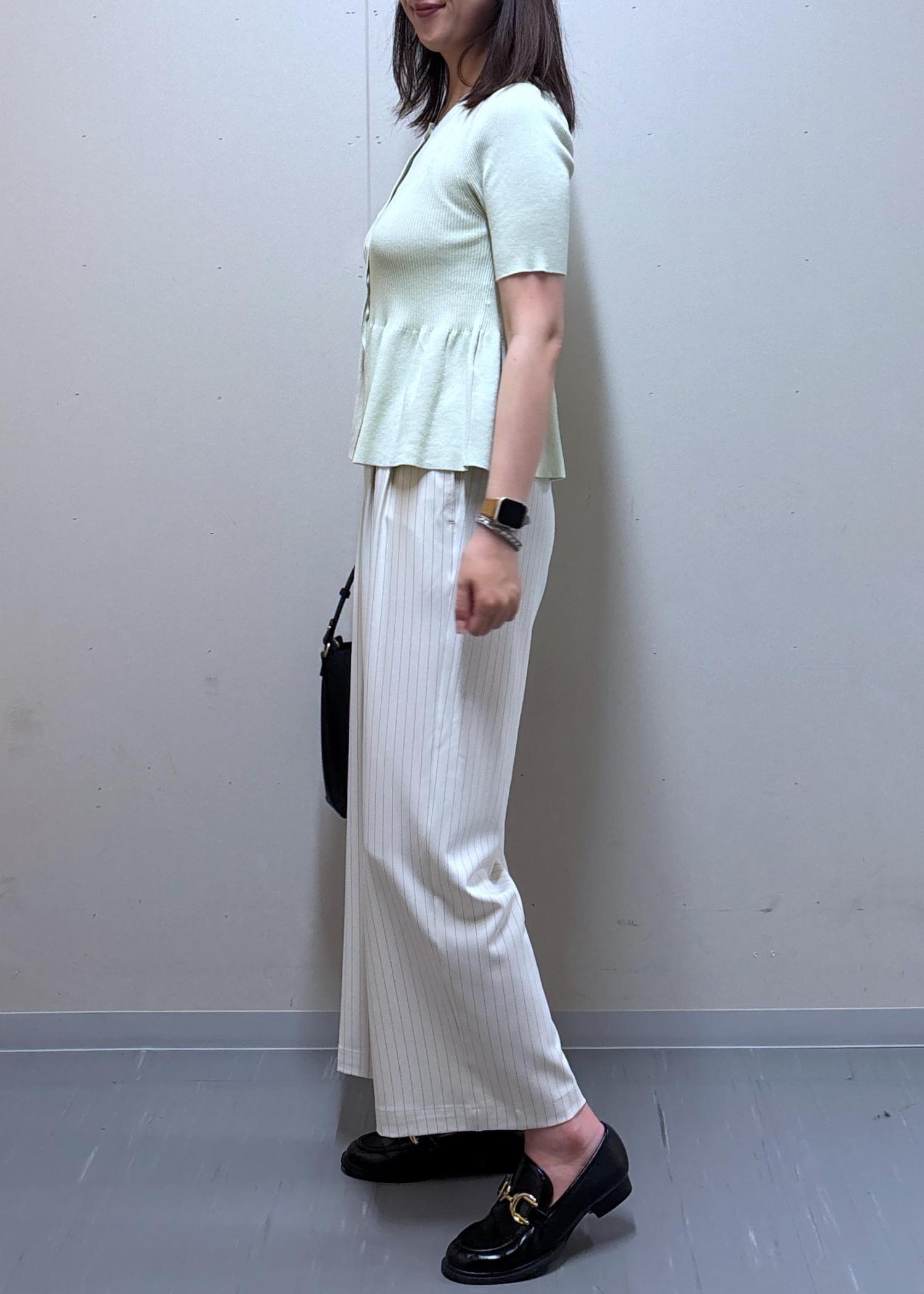 思ったより丈は短すぎず、骨盤くらいまで長さがありました。そこまで肉感を拾わないリブニットなので、夏も着れると思います。