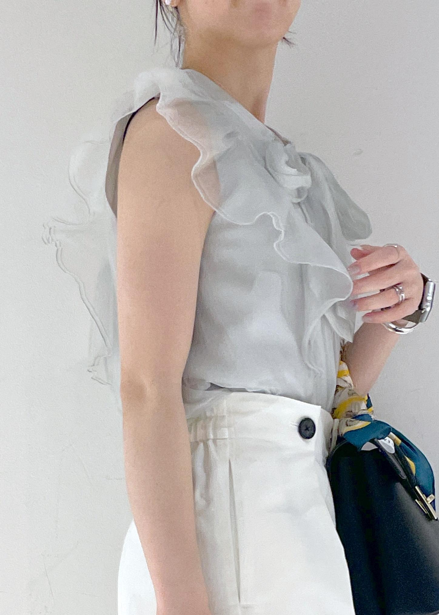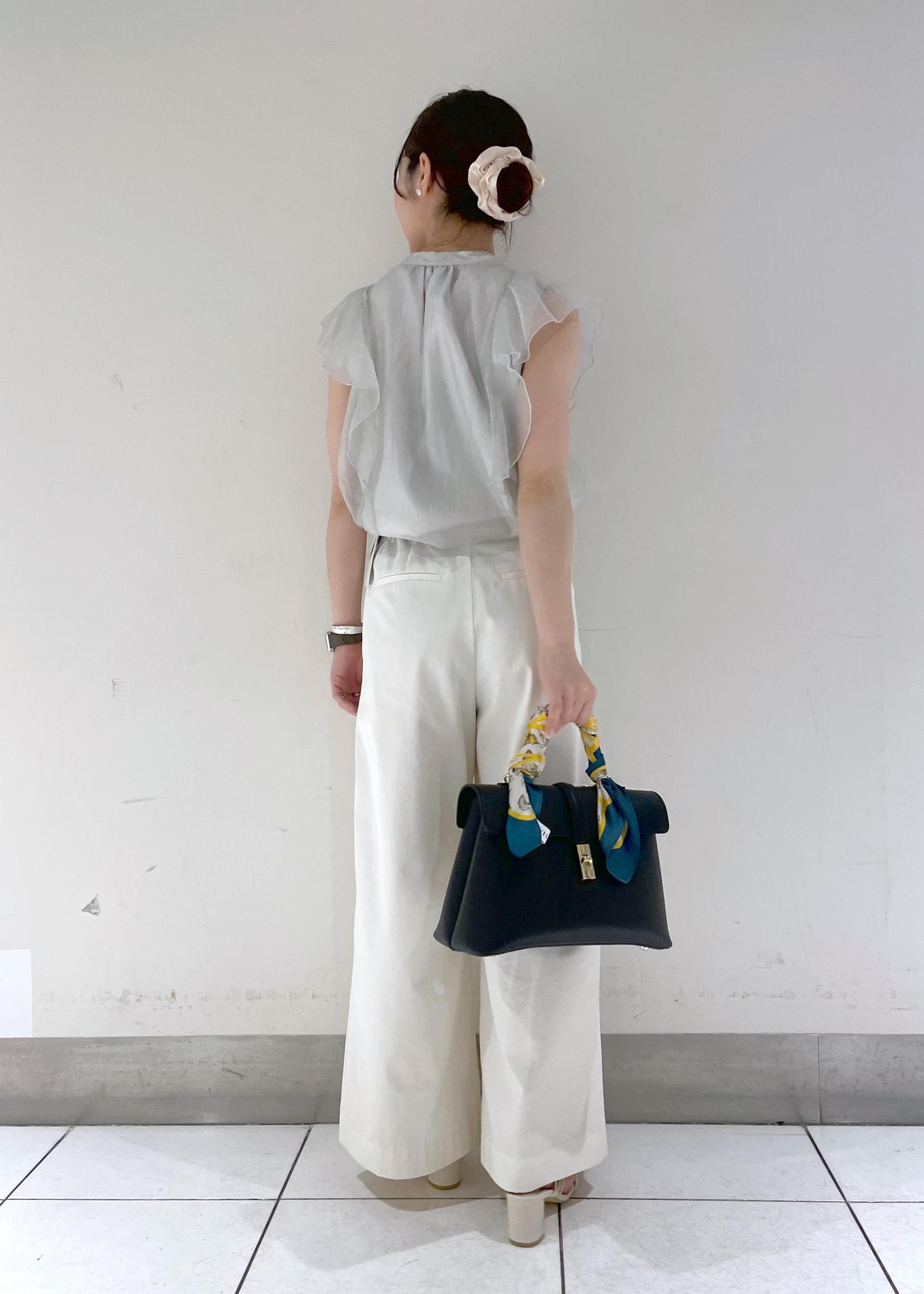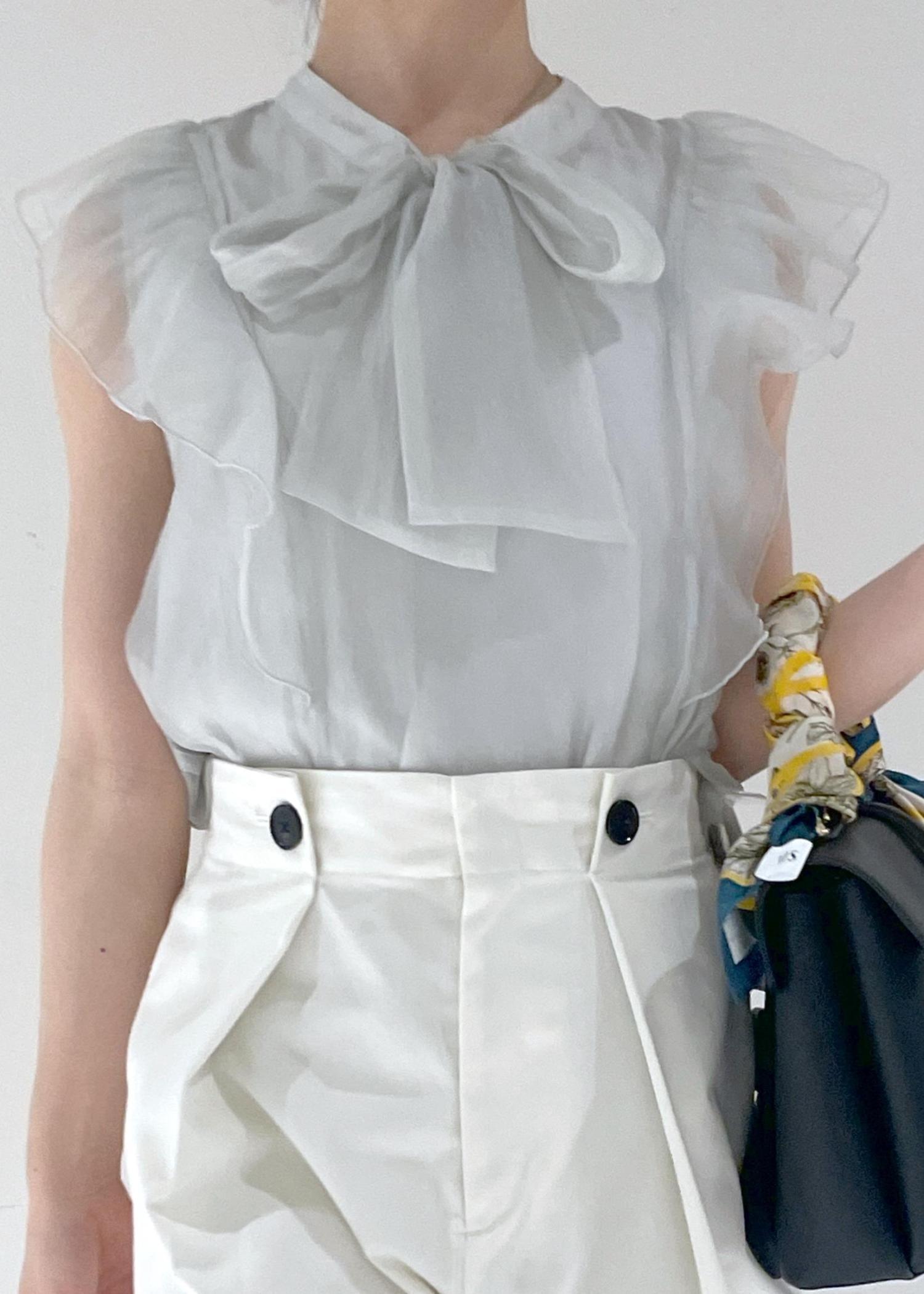 VIS【店頭人気】主役級!華やぎシアーシャイニーボウタイフリルブラウス【前後2WAY】【洗える】ライトグリーン / F¥5,489レビュー肩を隠してくれる大きなフリルは二の腕をしっかりカバーしてくれます♪