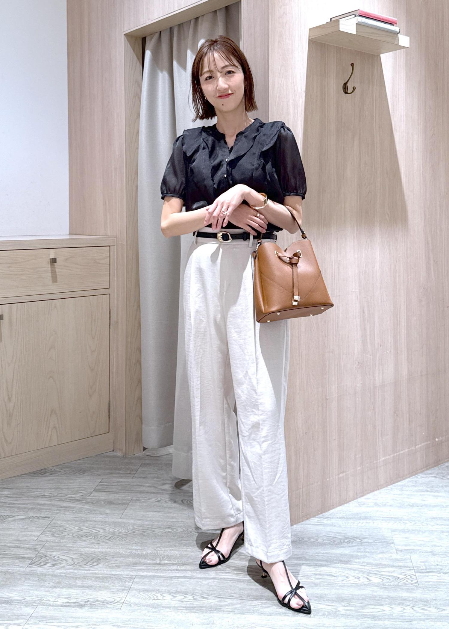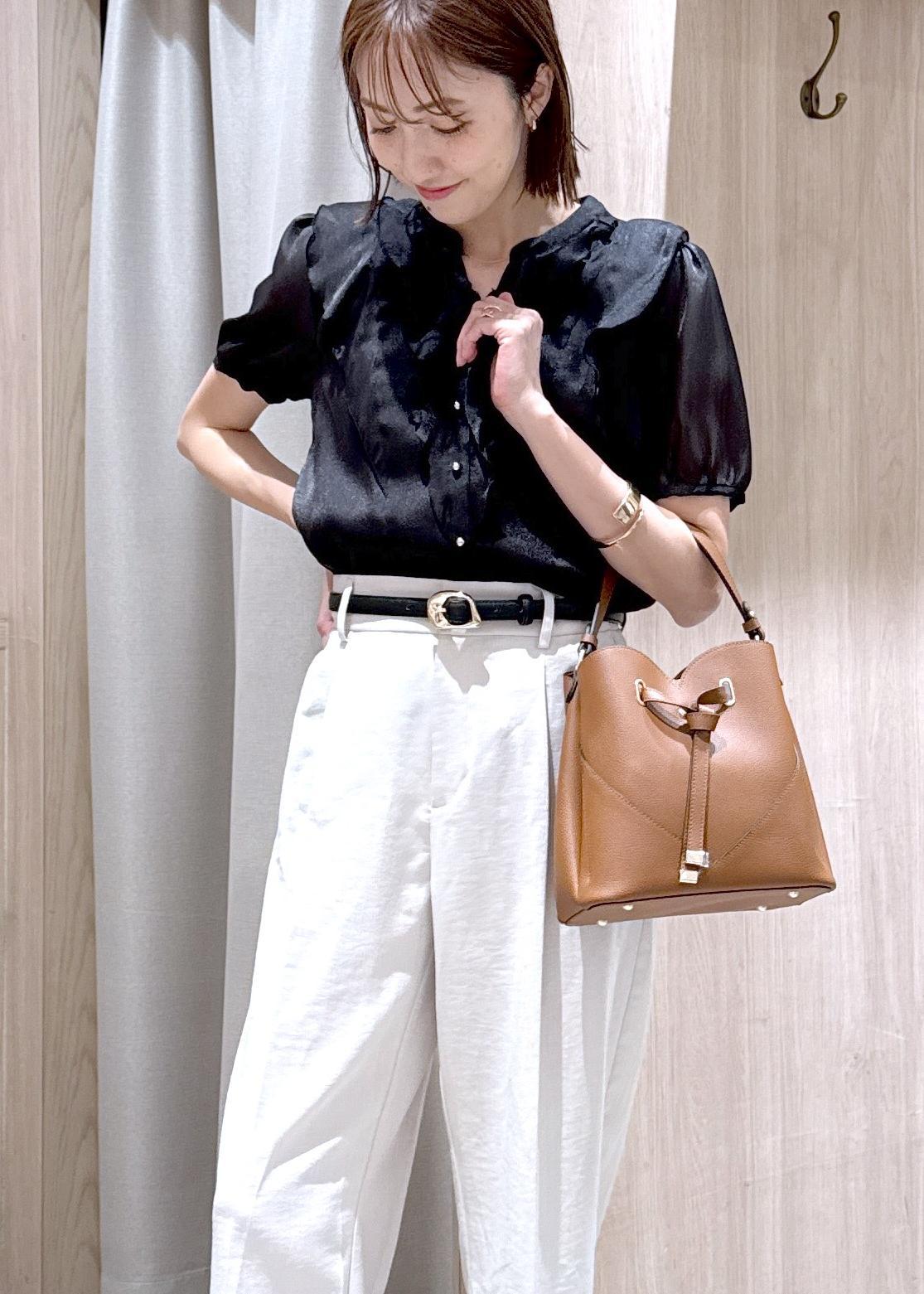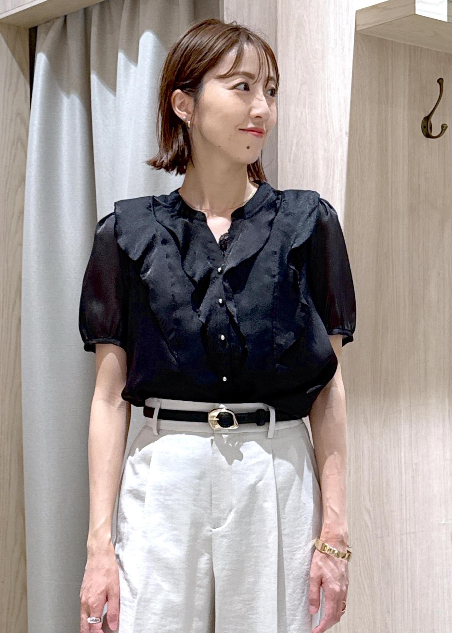 艶感とフリルが華やかなブラウスコーデです!