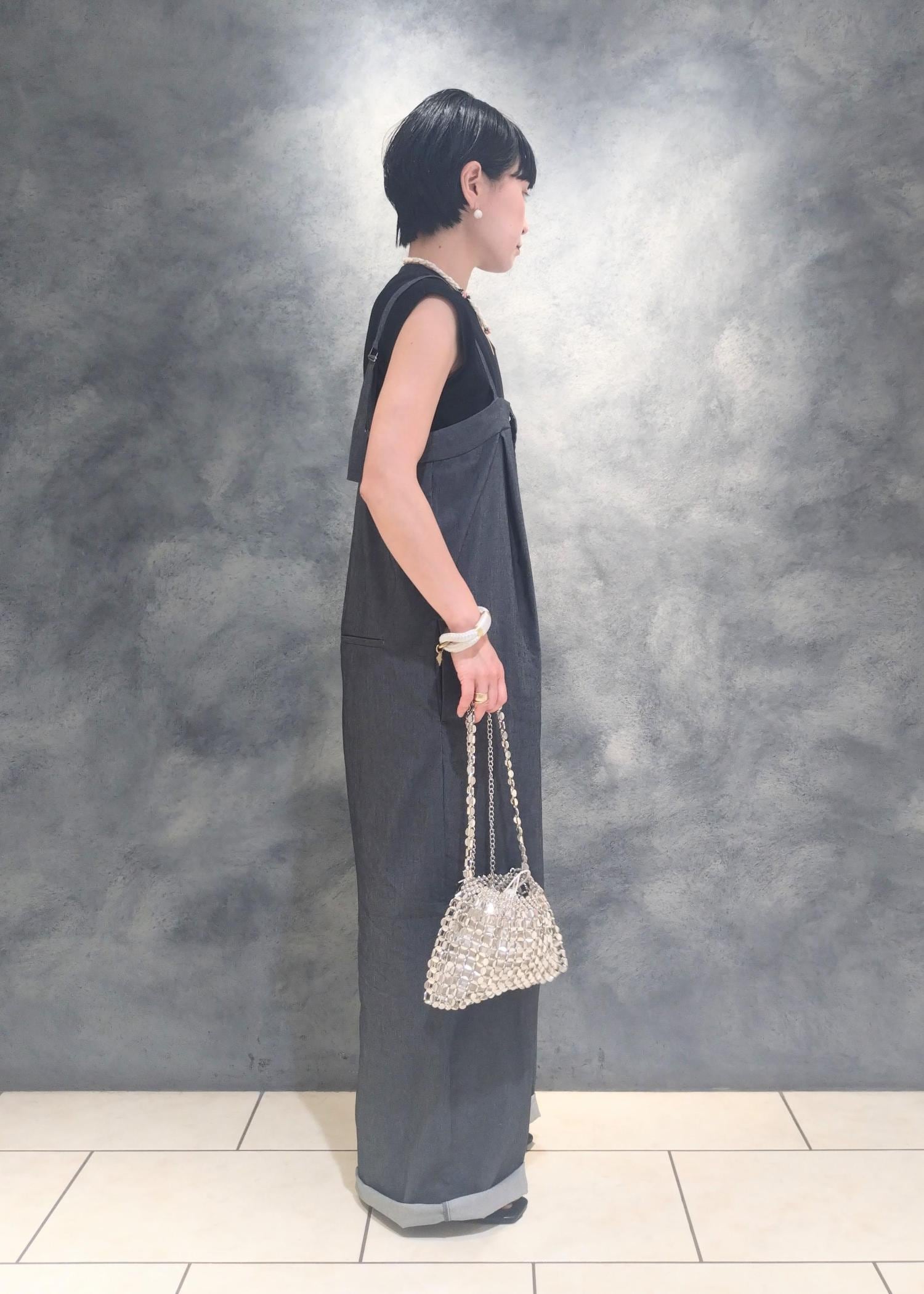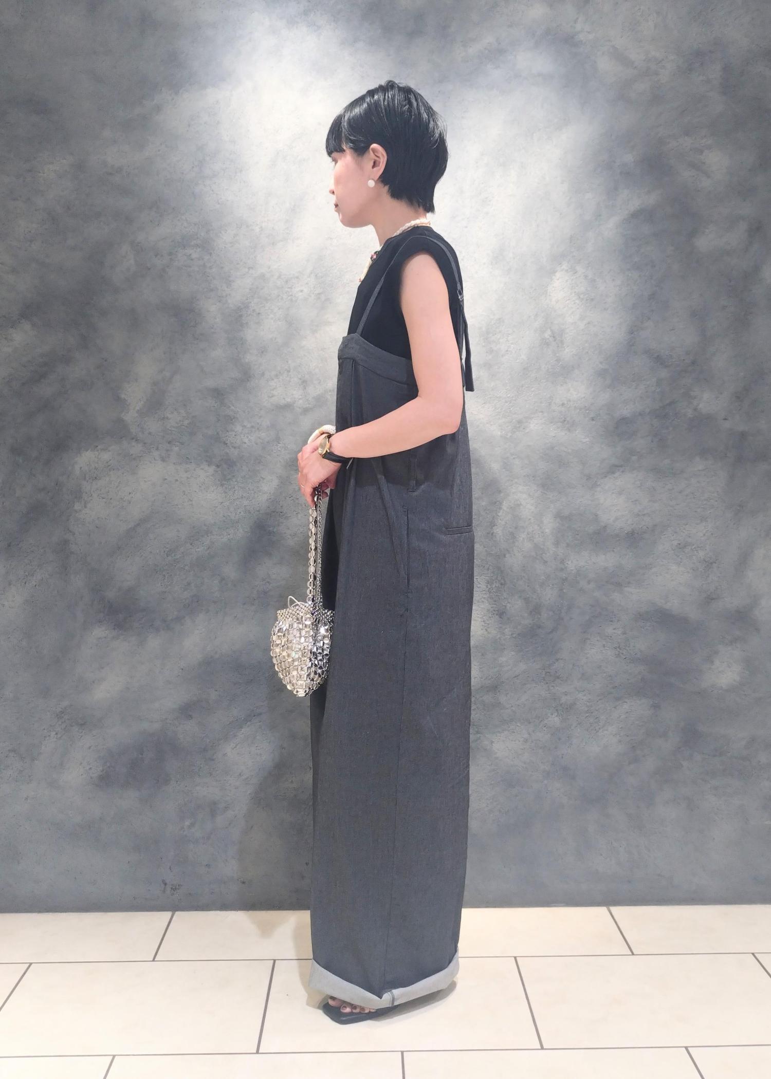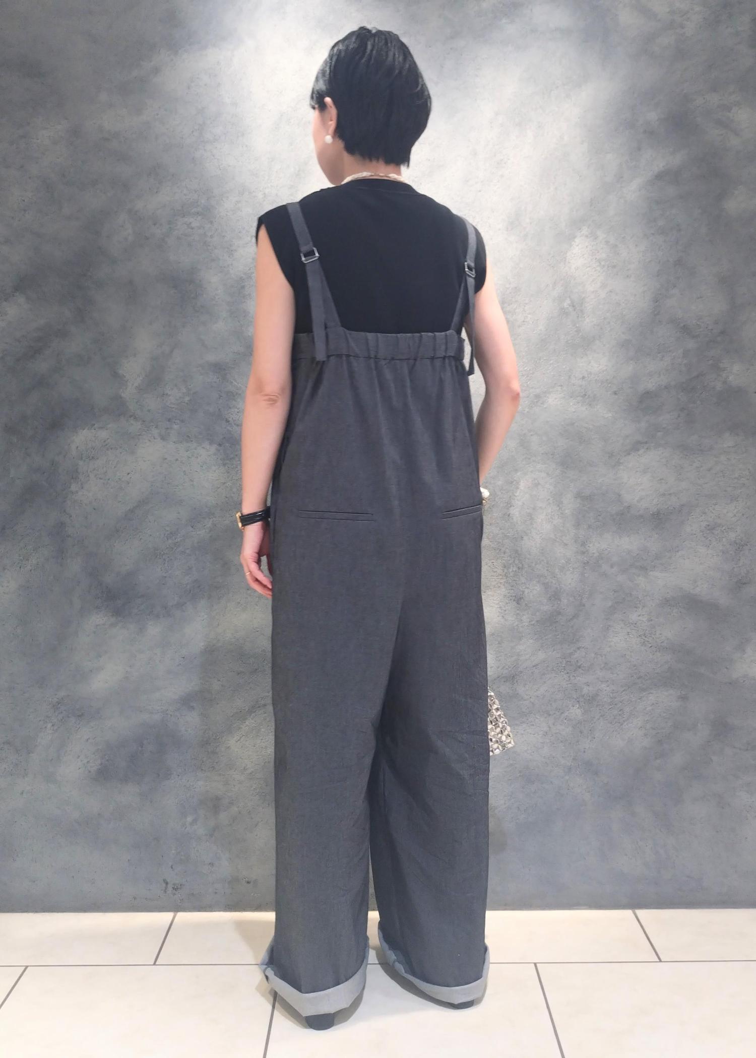アウトレットVISベルト付きベアサロペットブラック系 / F¥3,164レビュー154センチで裾を折り返しての着用(ヒールサンダル)