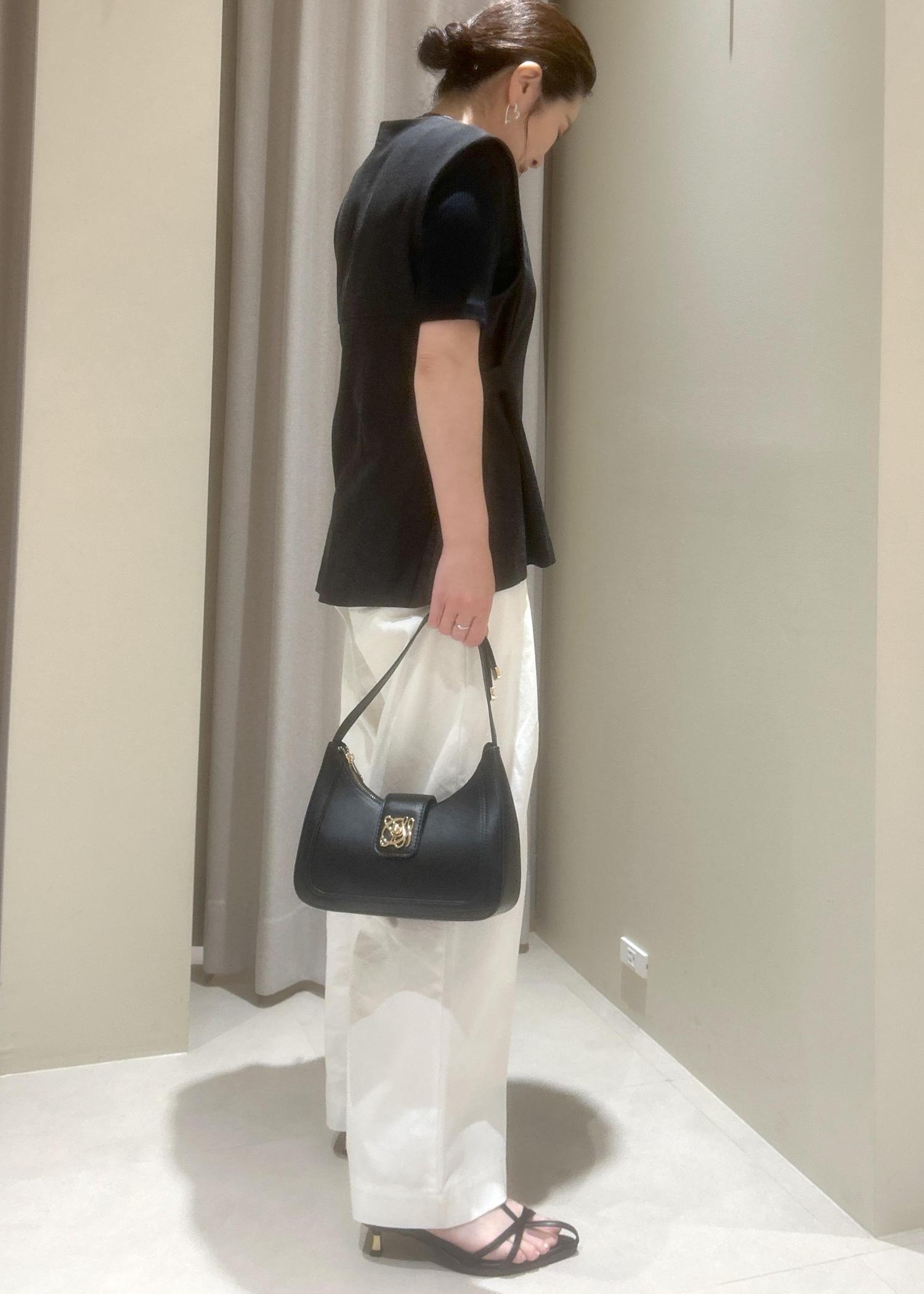 VIS【180℃美人見え】ハンドルリボンワンショルダーバッグブラック / F¥5,929レビューコンパクトに見えて、500mlのペットボトル、ミニポーチ、エコバッグ、三つ折り財布、携帯、鍵が収納できます。ペットボトルを抜けば、長財布が入ります。