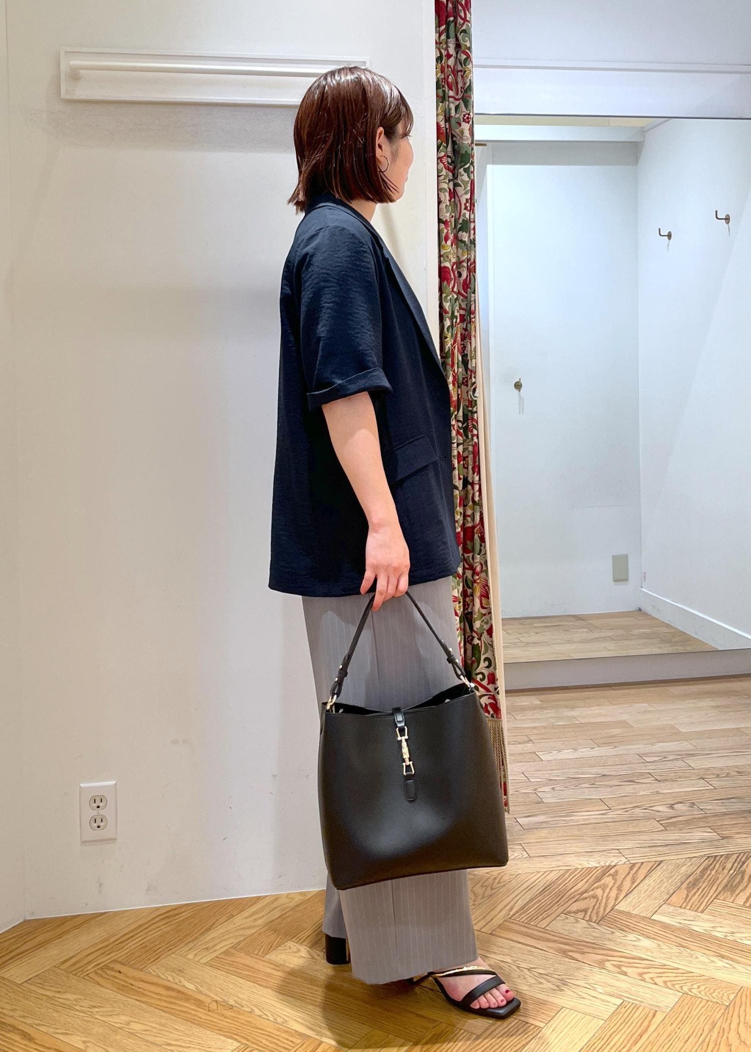 サラッとした生地感で、シワもなりにくいので夏場の羽織に便利です。 -