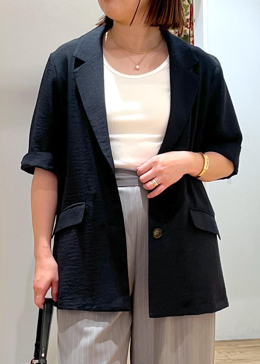 VIS【美easy】ハーフスリーブジャケット/セットアップ対応・洗えるネイビー / S¥7,909レビュー155cm、Sサイズ着用。