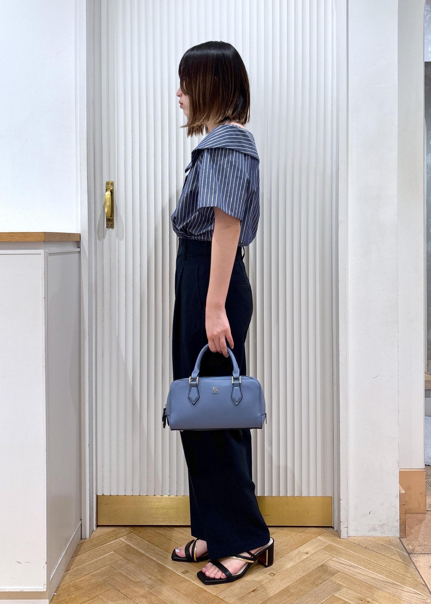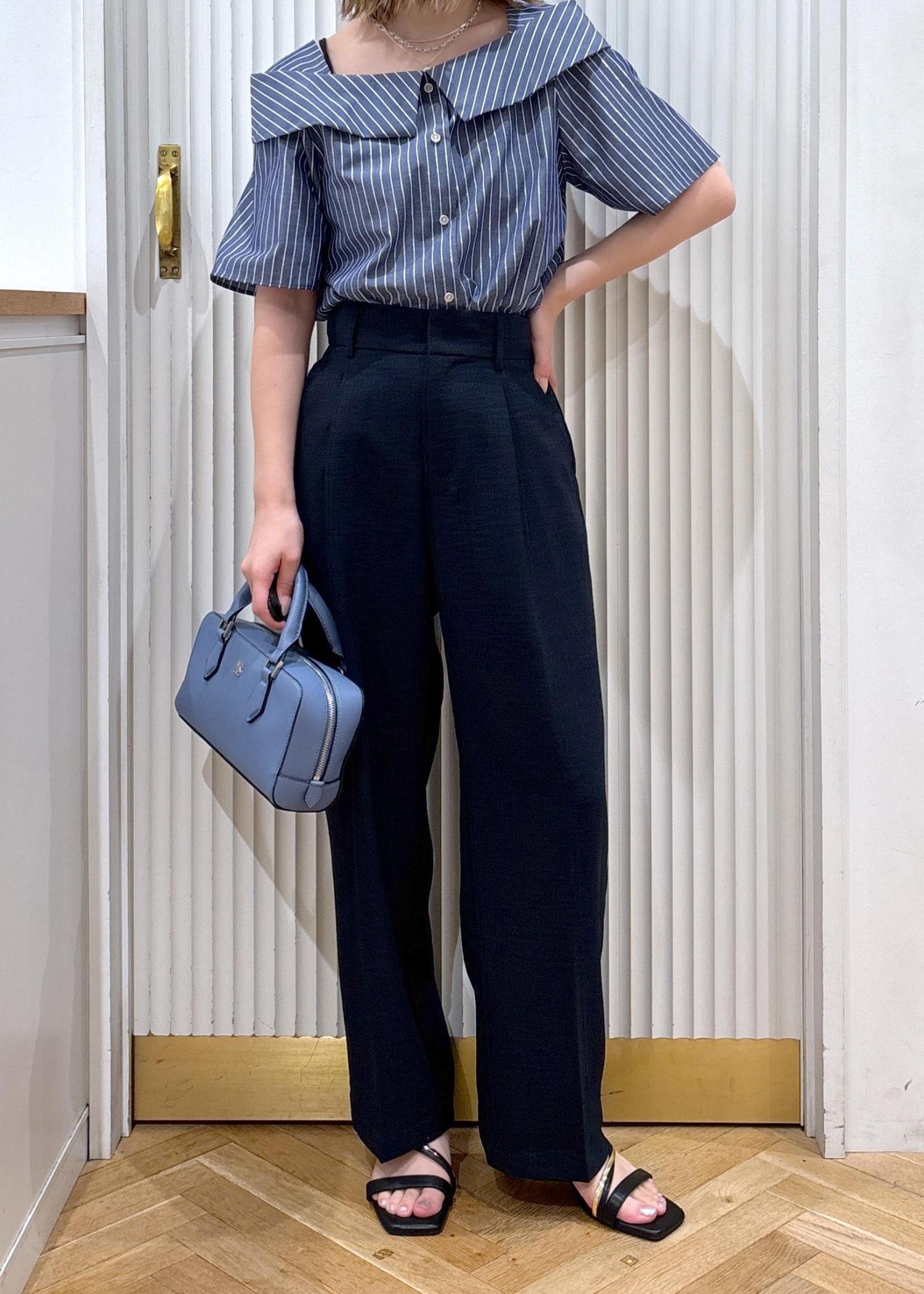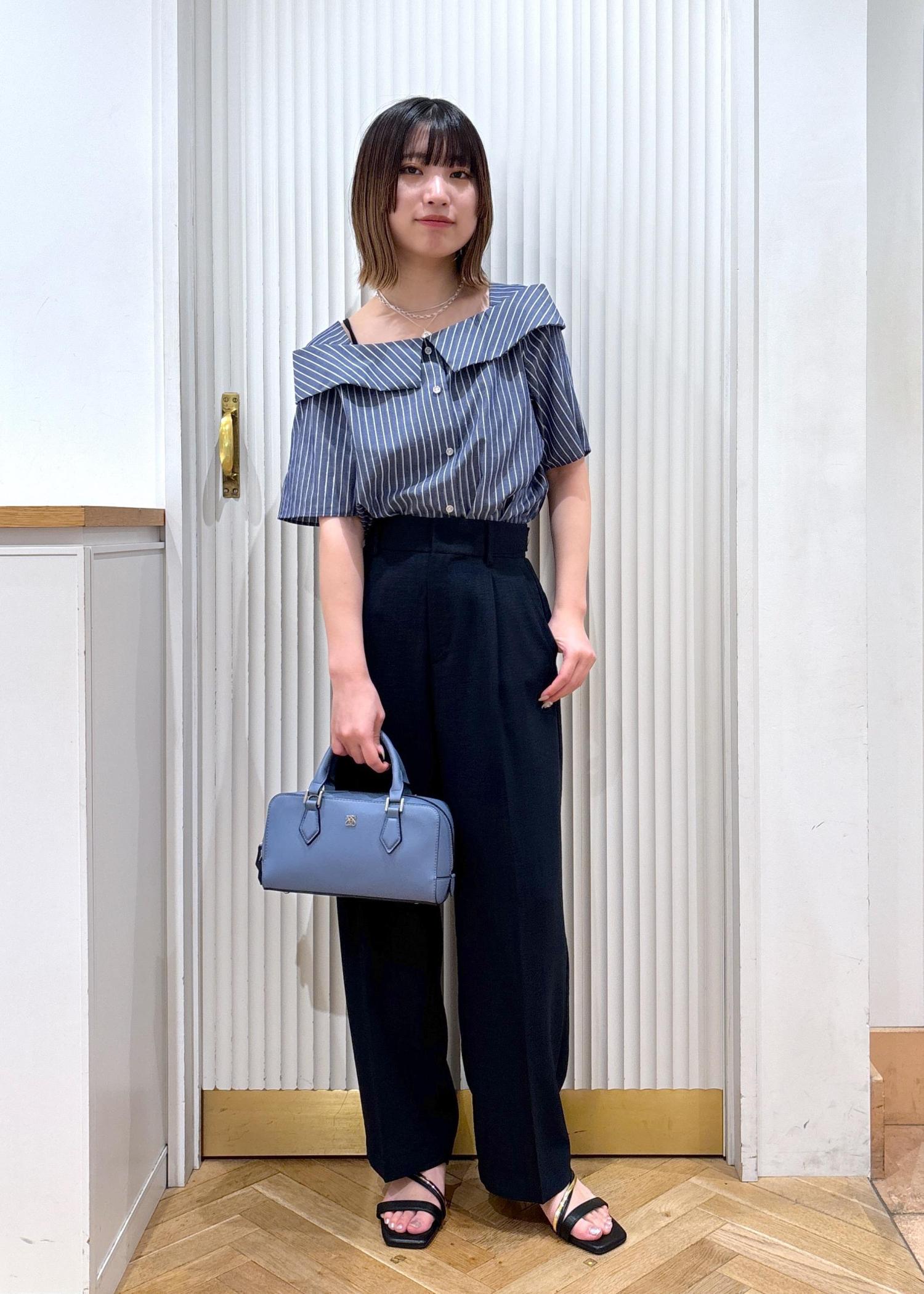 全体をブルー系で統一したオフィスカジュアルコーデです!