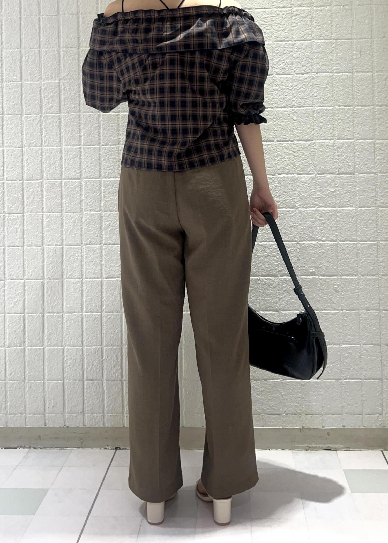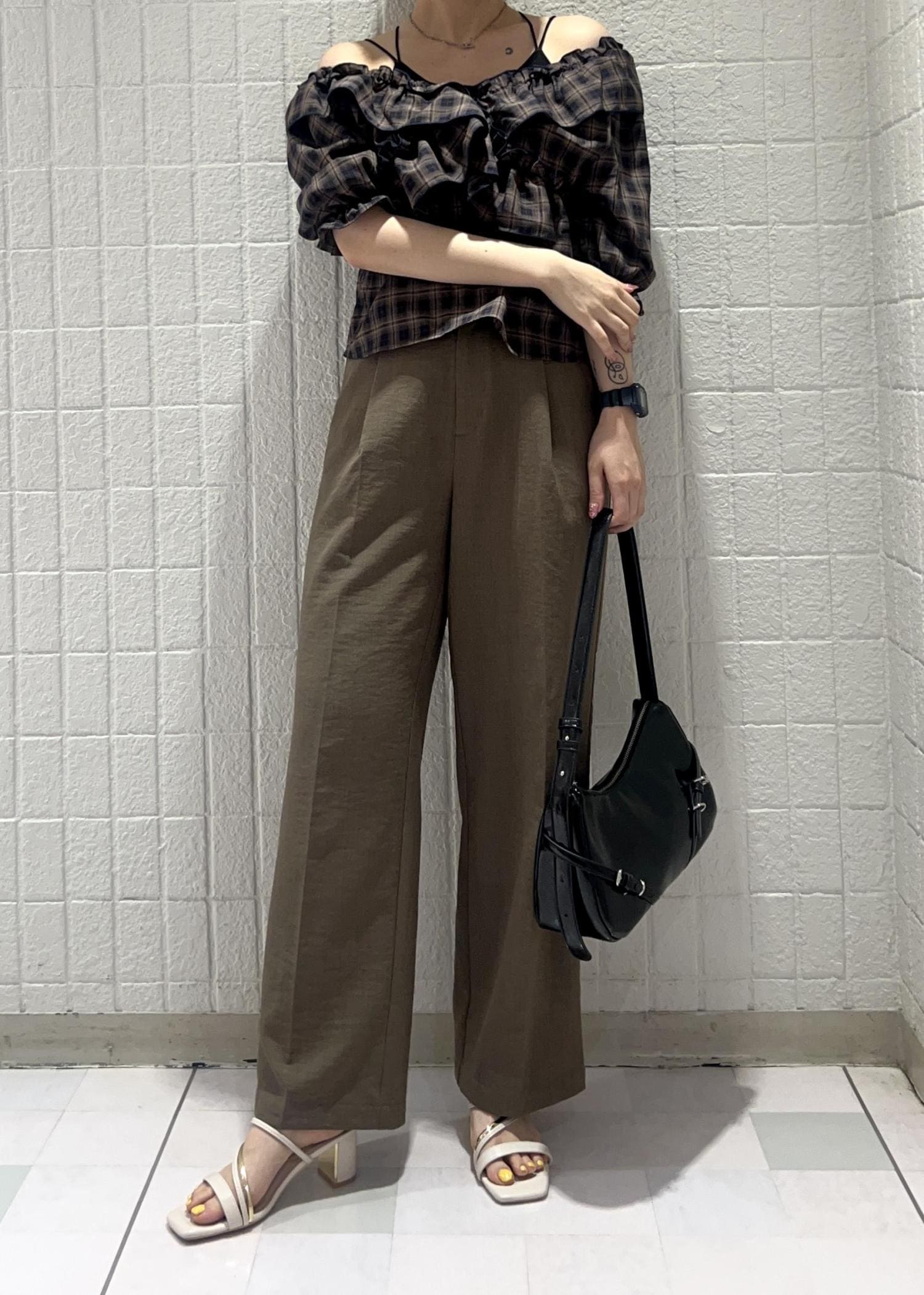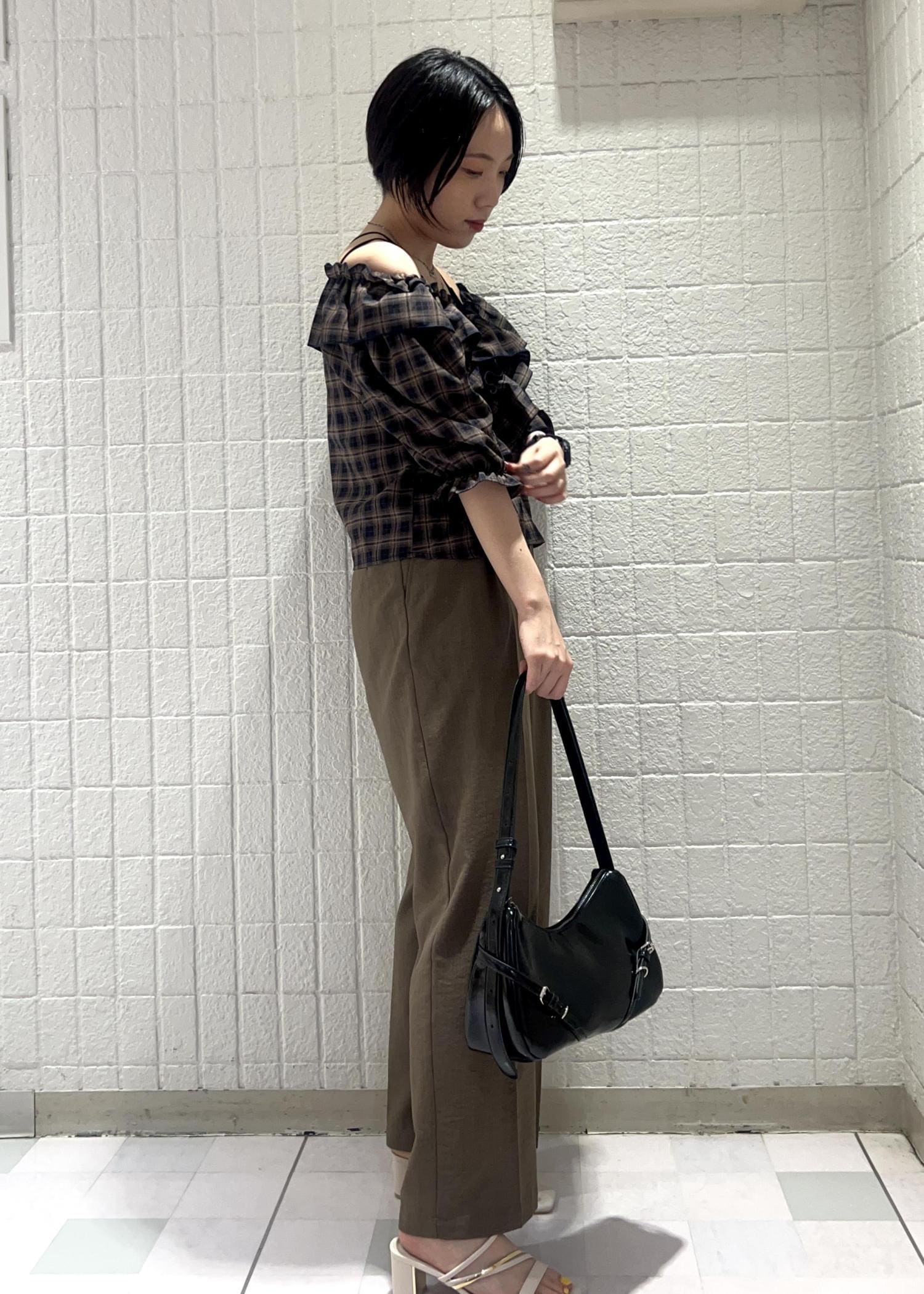 VIS【2WAY】フリルチェックオフショルブラウスダークブラウン系 / F¥6,589レビューオフショルでも使える2wayデザイン。