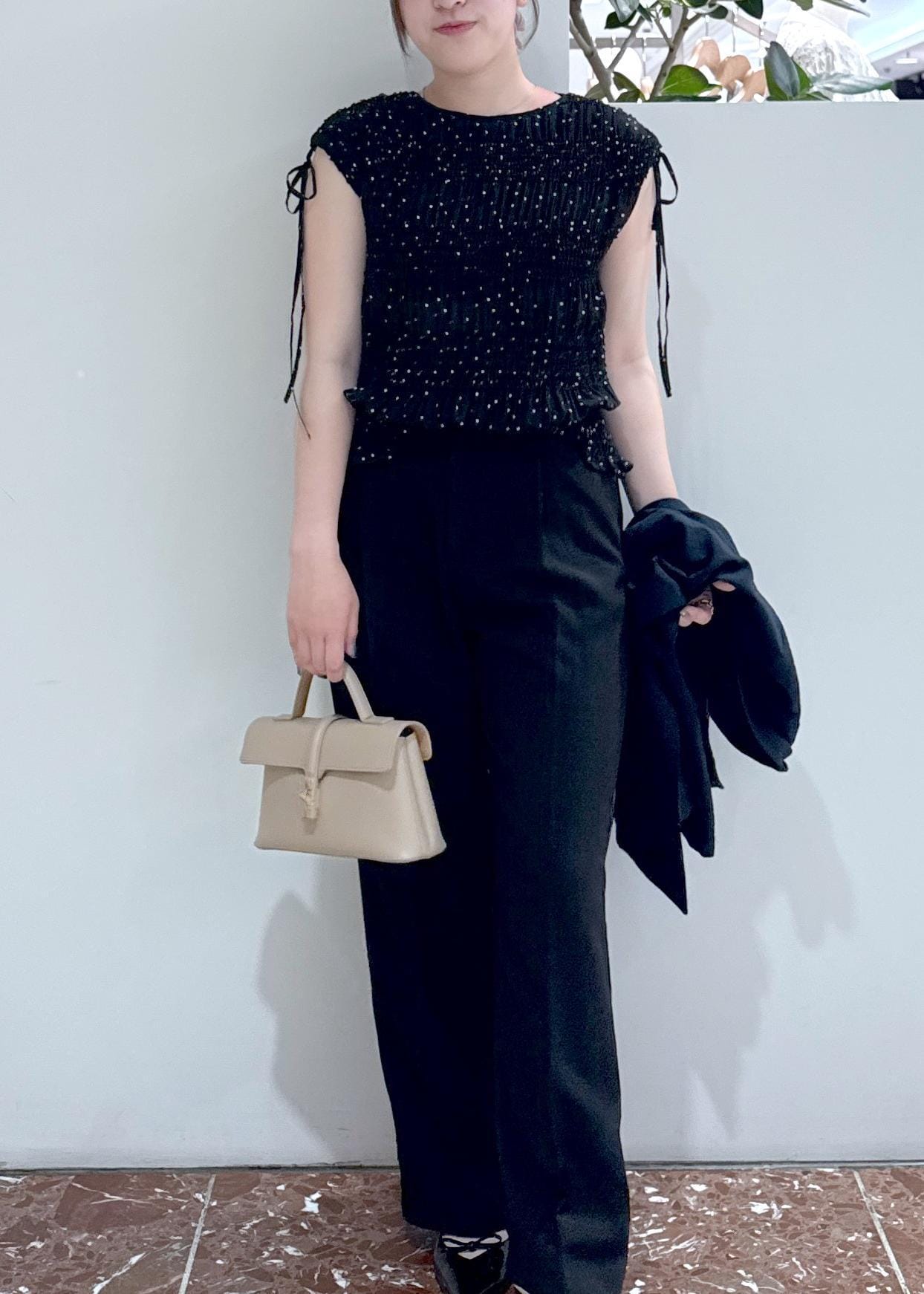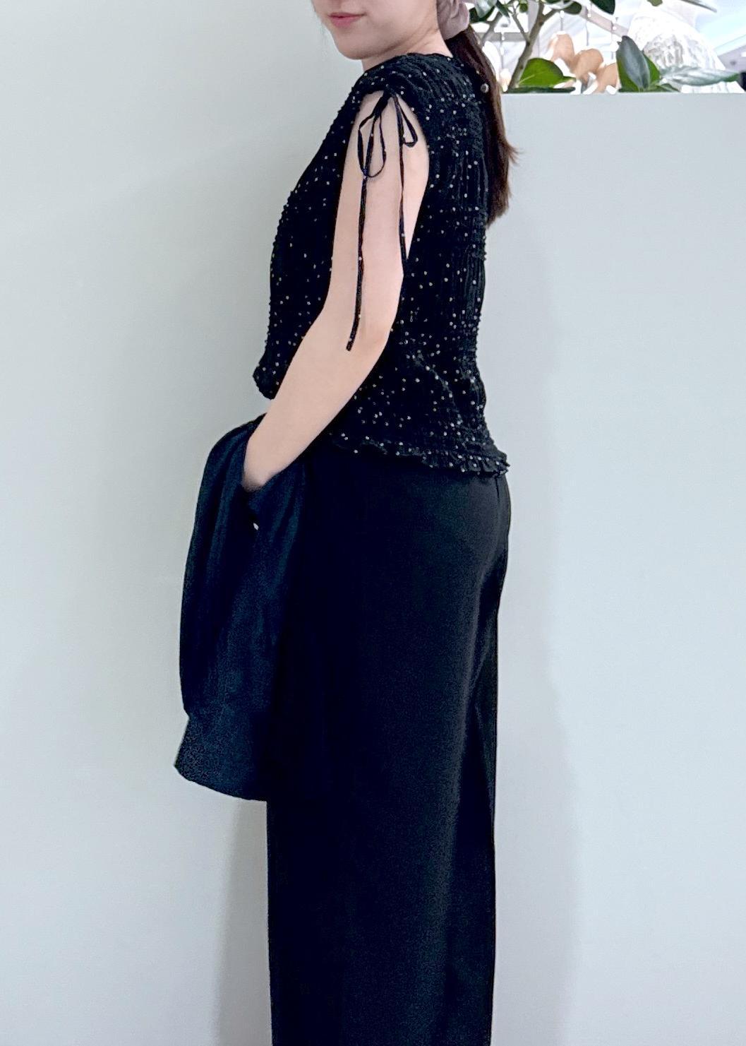 アウトレットVISプリーツシアーシャーリングブラウスブラック系 / F¥3,842レビュー肩紐で袖の長さが調節できるデザインです。