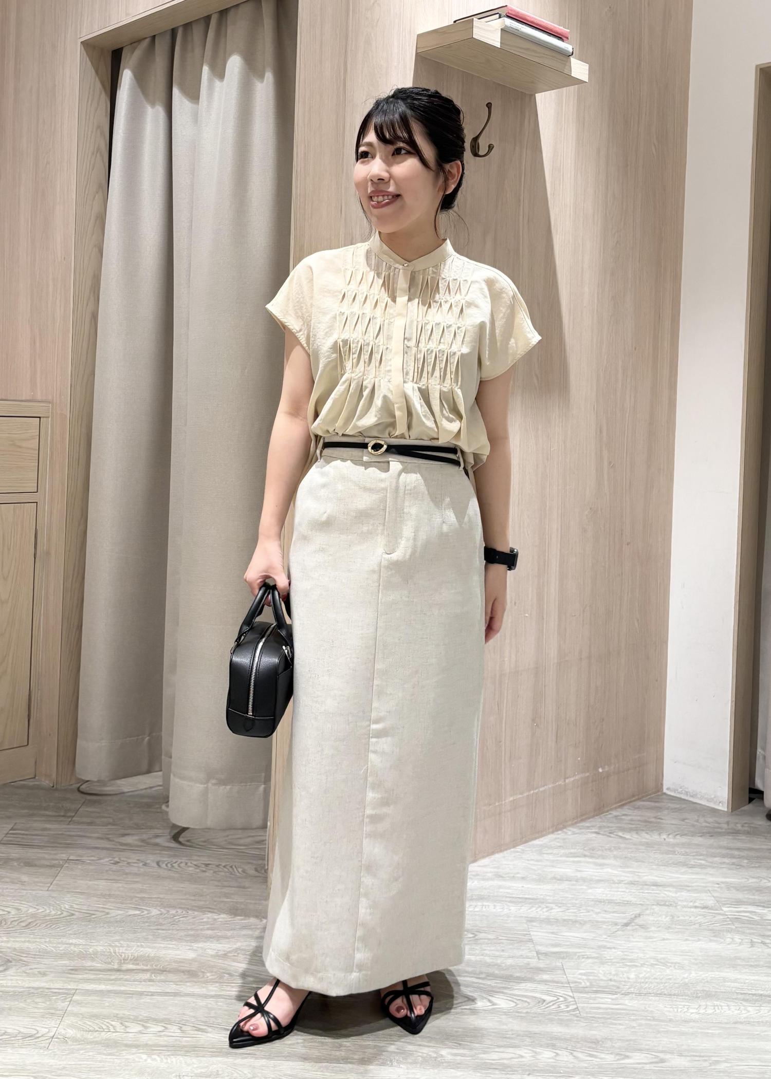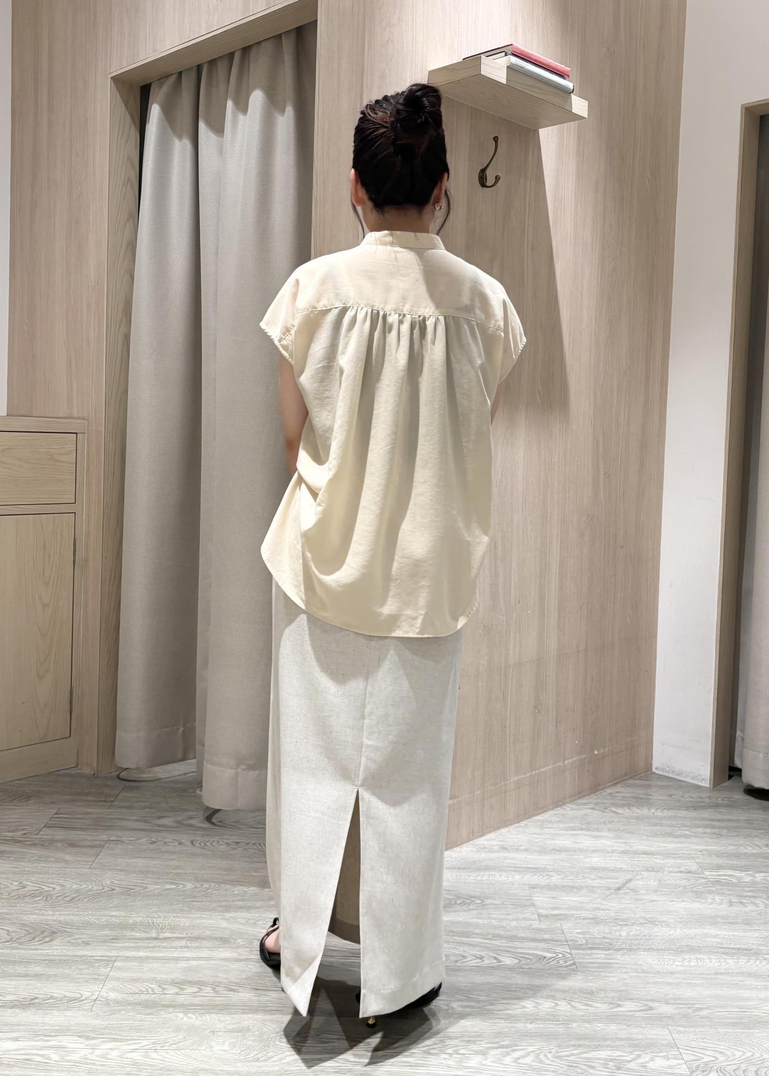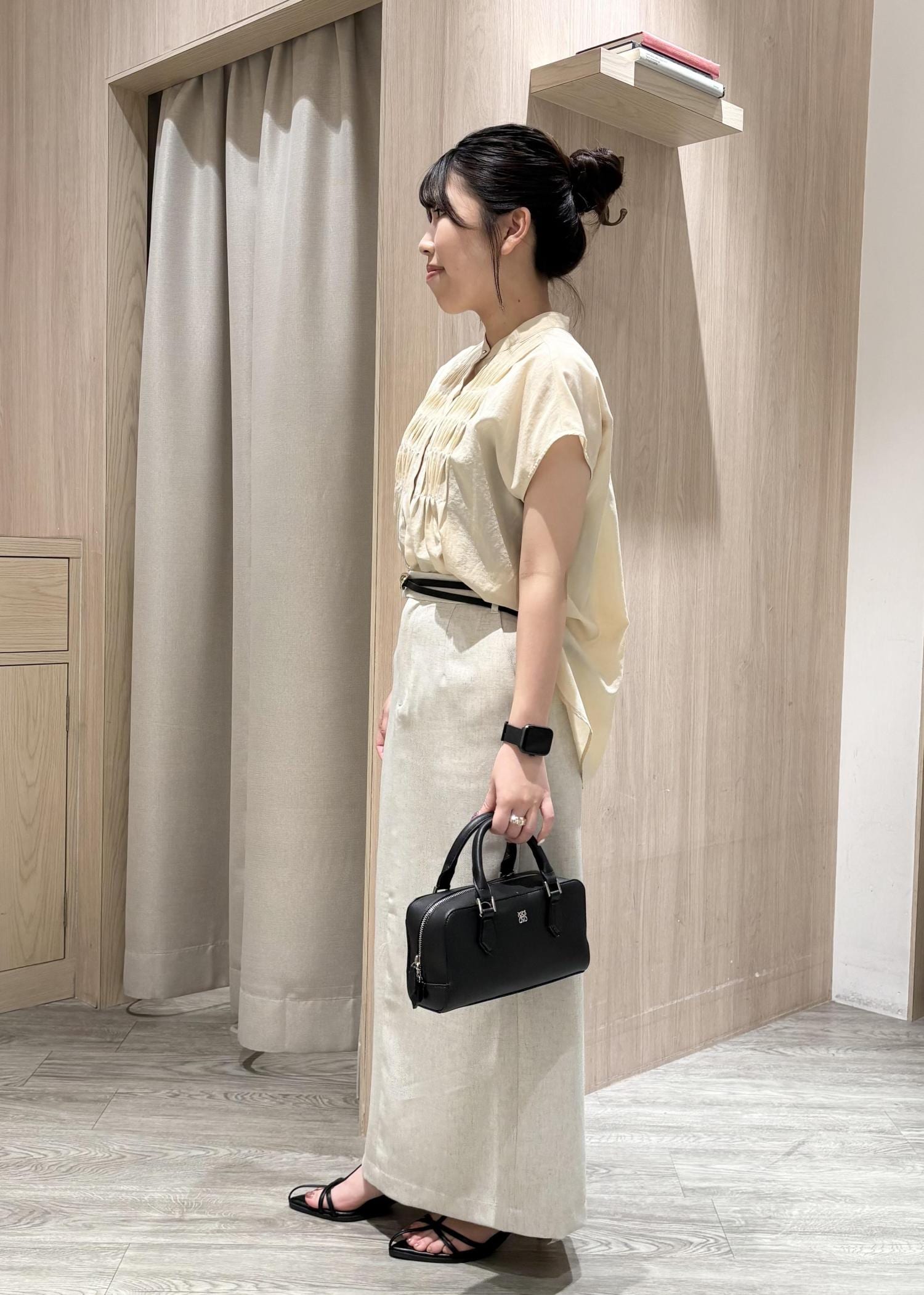 ウエスト後ろはゴムになっており、裾後ろはスリットも入っているため歩きやすいデザインになっています。 -
