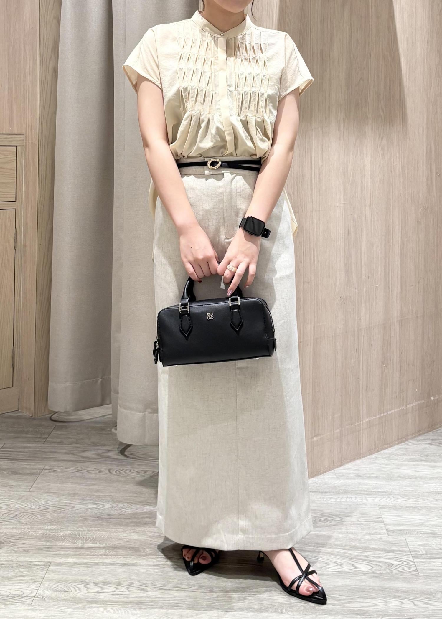 穴がなく巻きつけるタイプでボトムに使用したり、ウエストマークにしたりすることもオススメですよ。 -