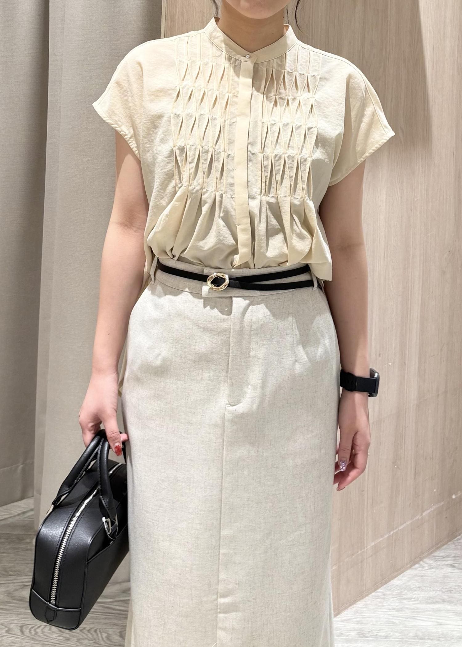 アウトレットVIS【接触冷感/洗える】気流染めスモッキングブラウスイエロー / F¥3,457レビュー短めの袖ですが肩が隠れるため、使いやすいデザインになっています。