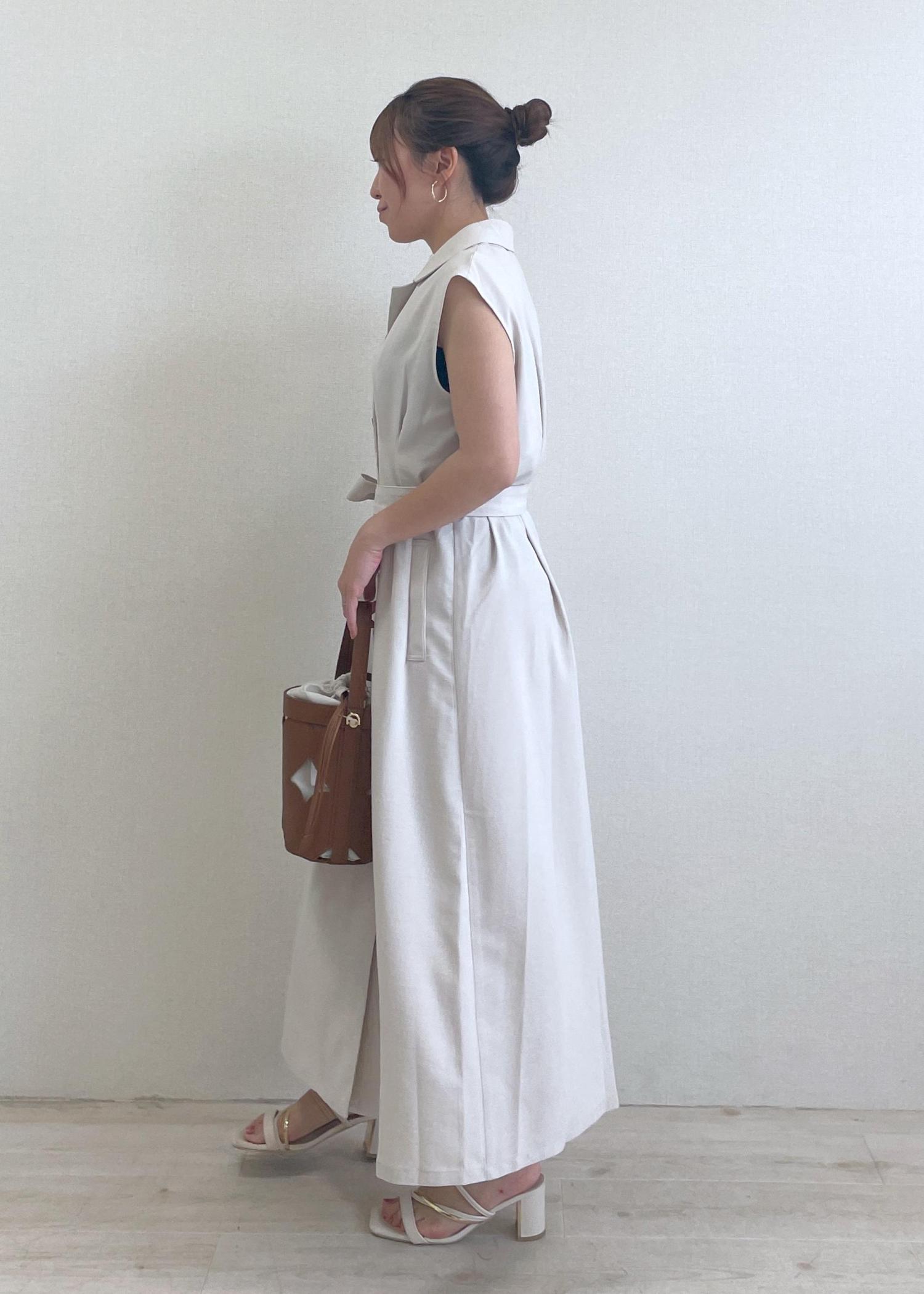 VIS【美easy】リネンライクジレワンピース【接触冷感/洗える】キナリ / F¥8,899レビュー150cmでFサイズ着用です。