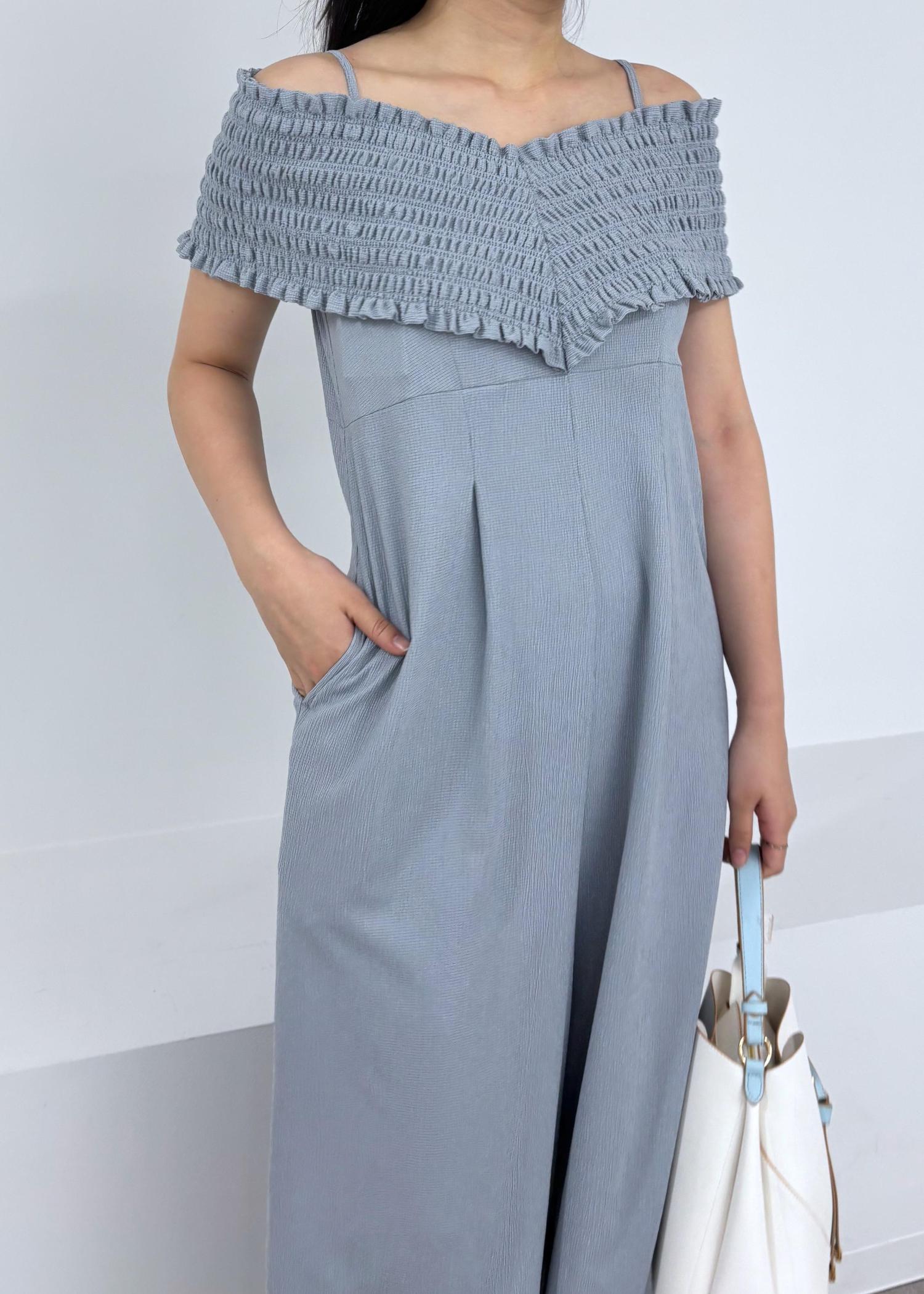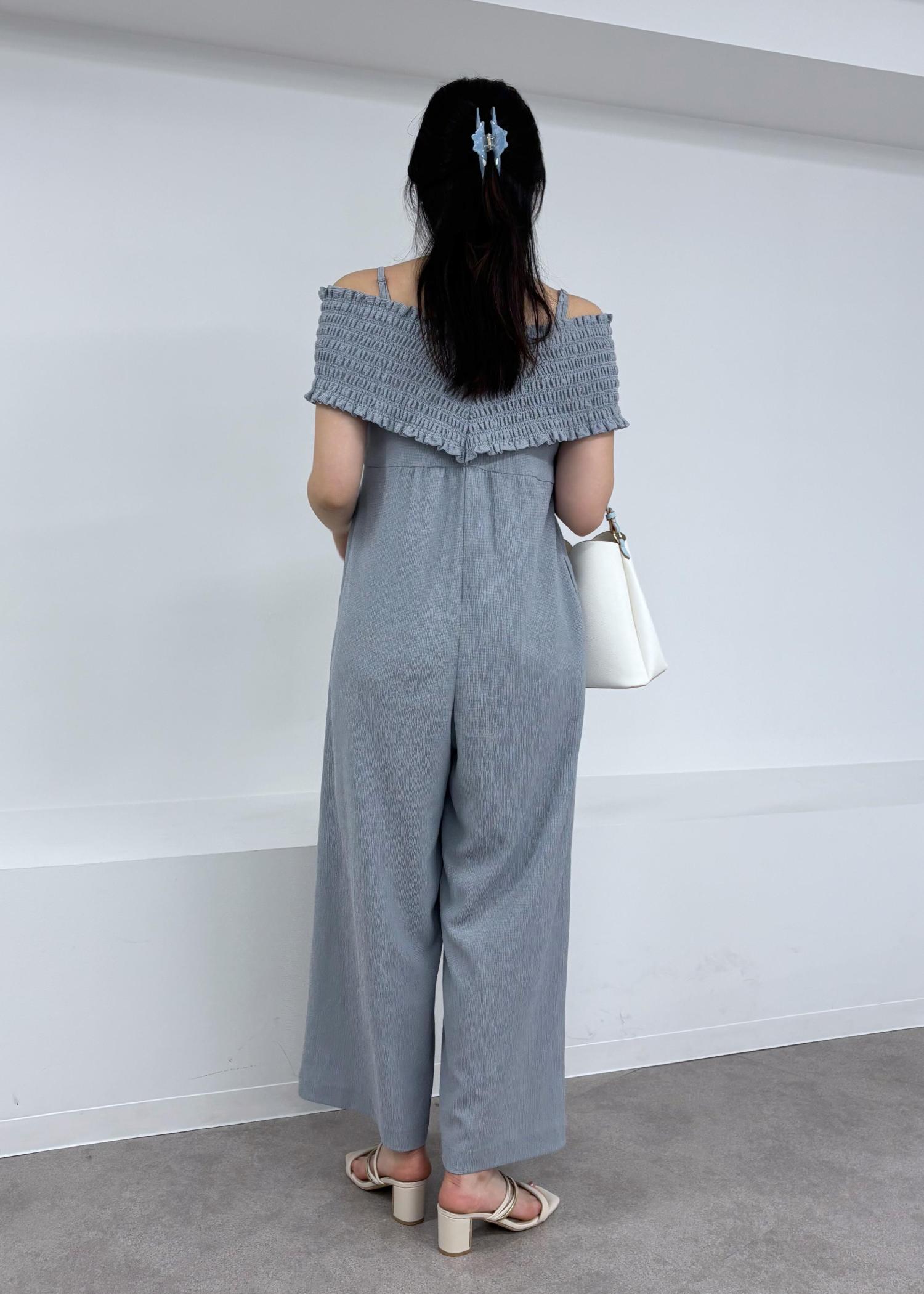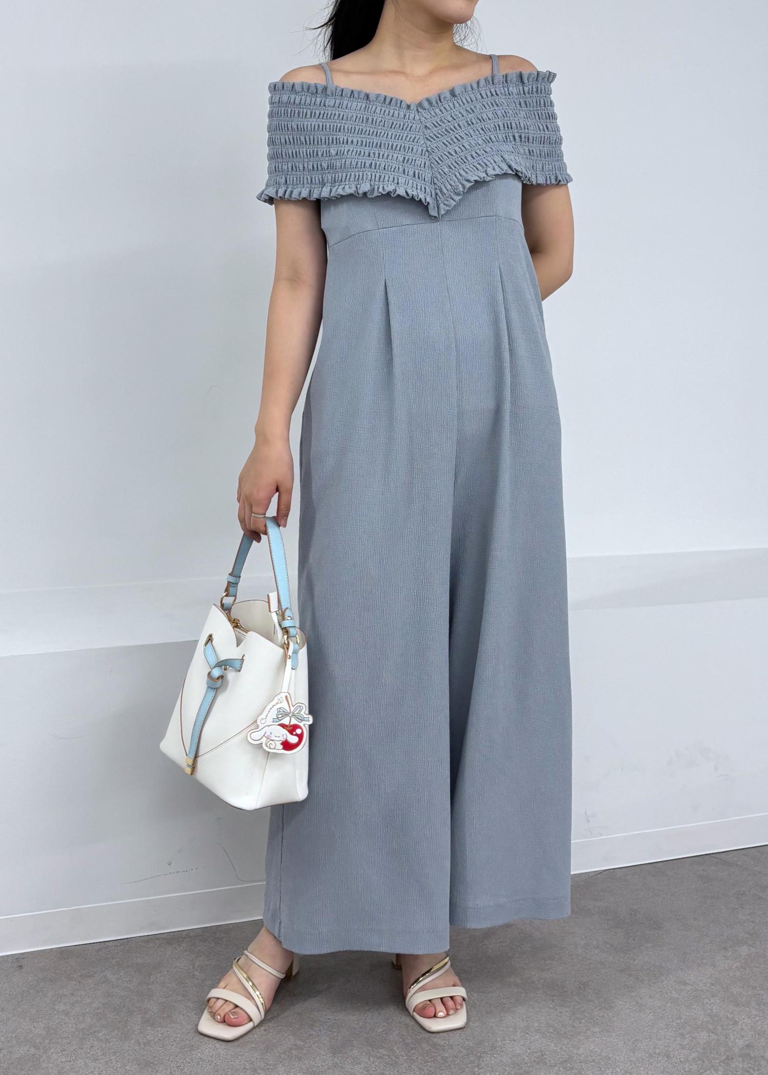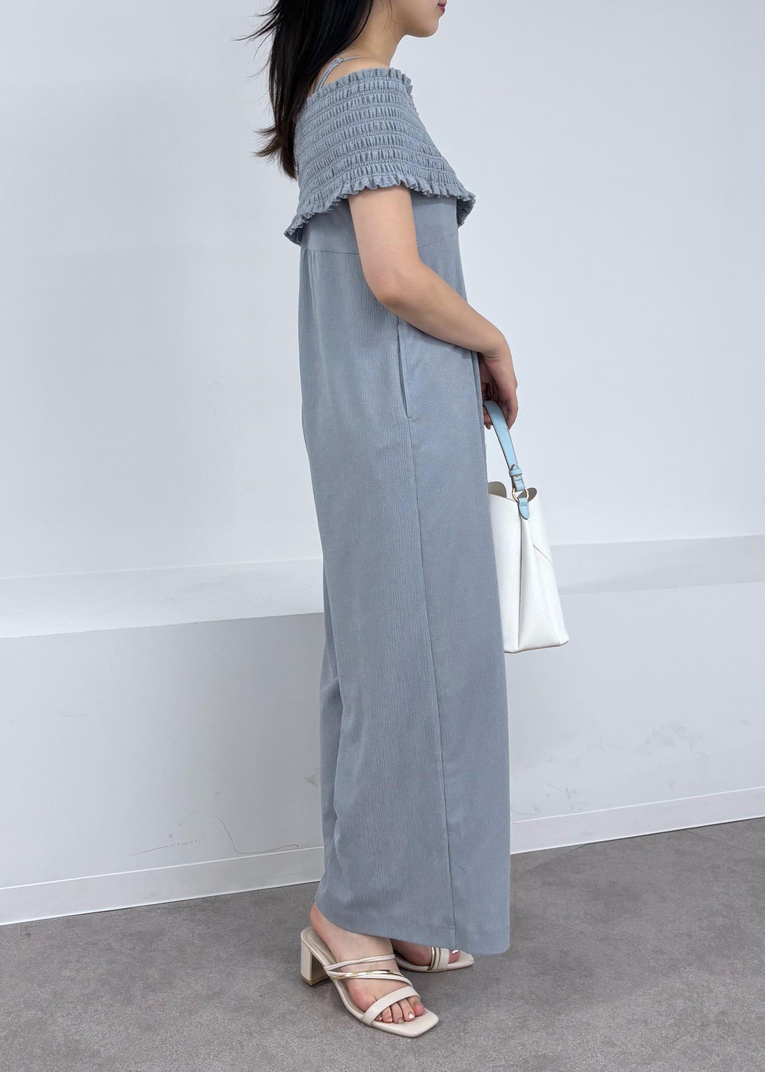 シャーリングオフショルダーオールインワン
