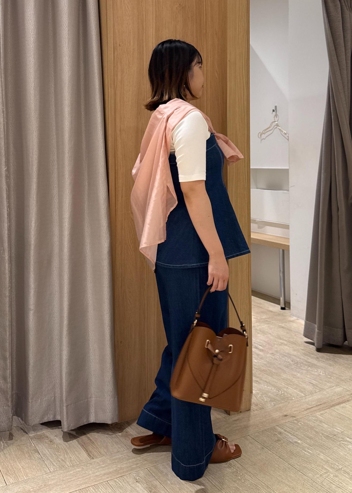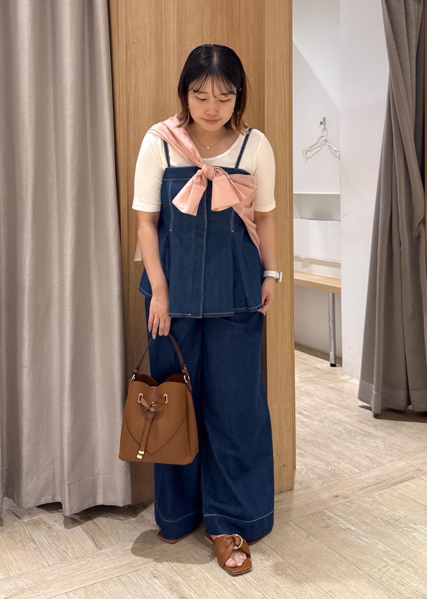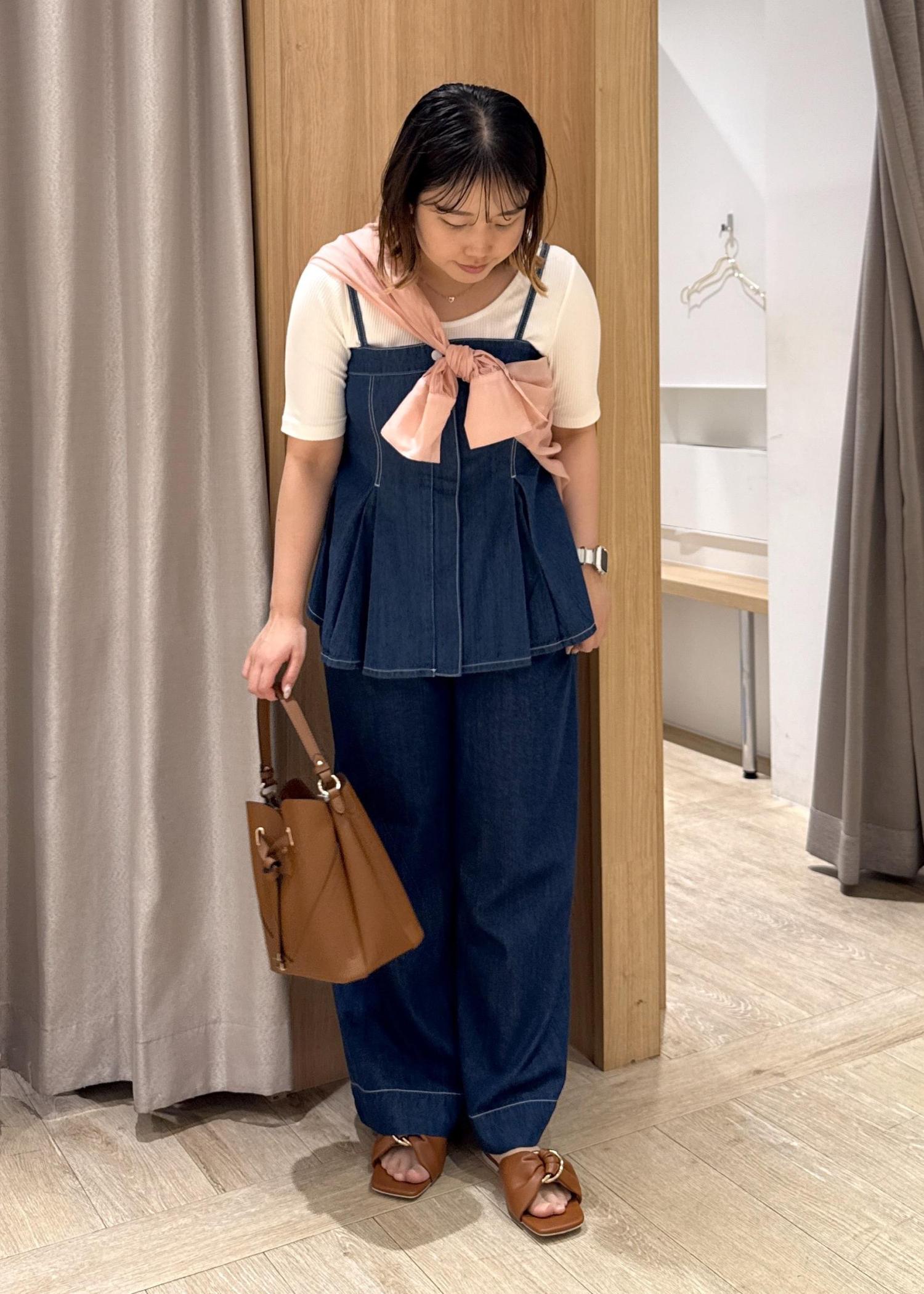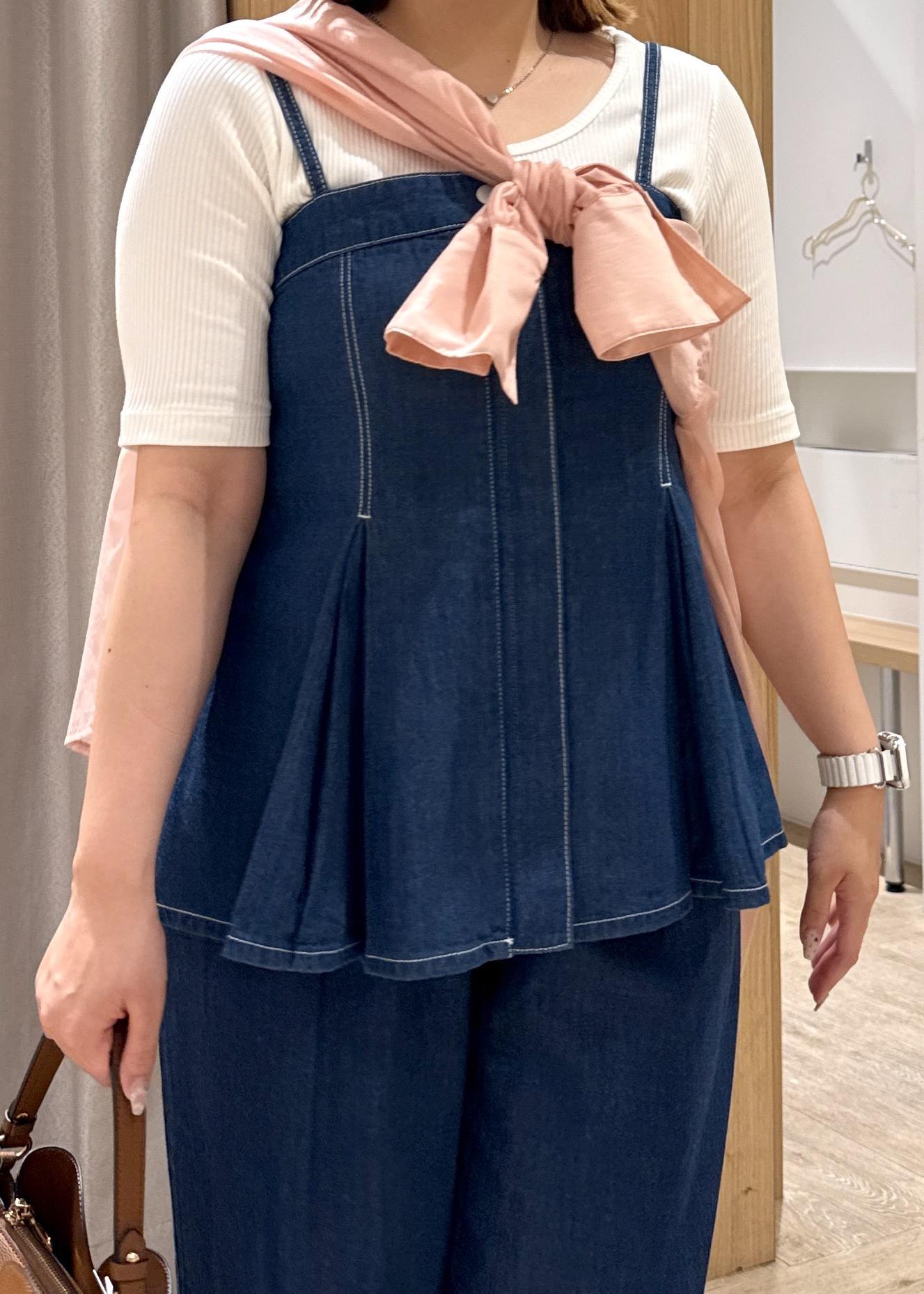ビスチェが少し長めで、お腹周りを隠してくれるので体型カバーにもオススメのコーデです!