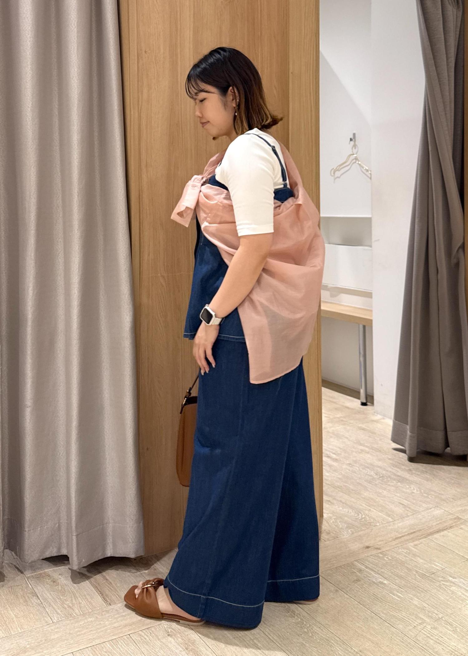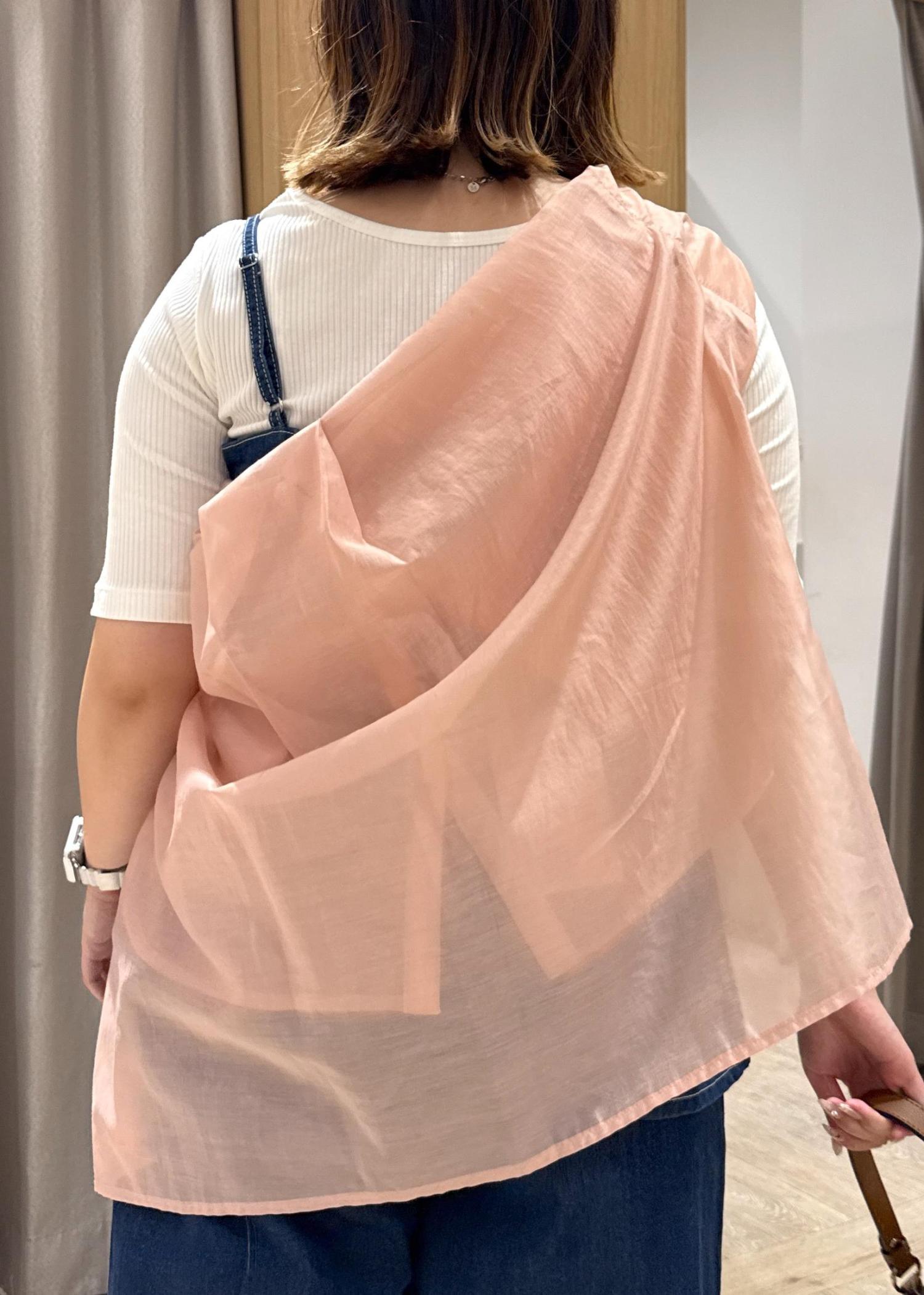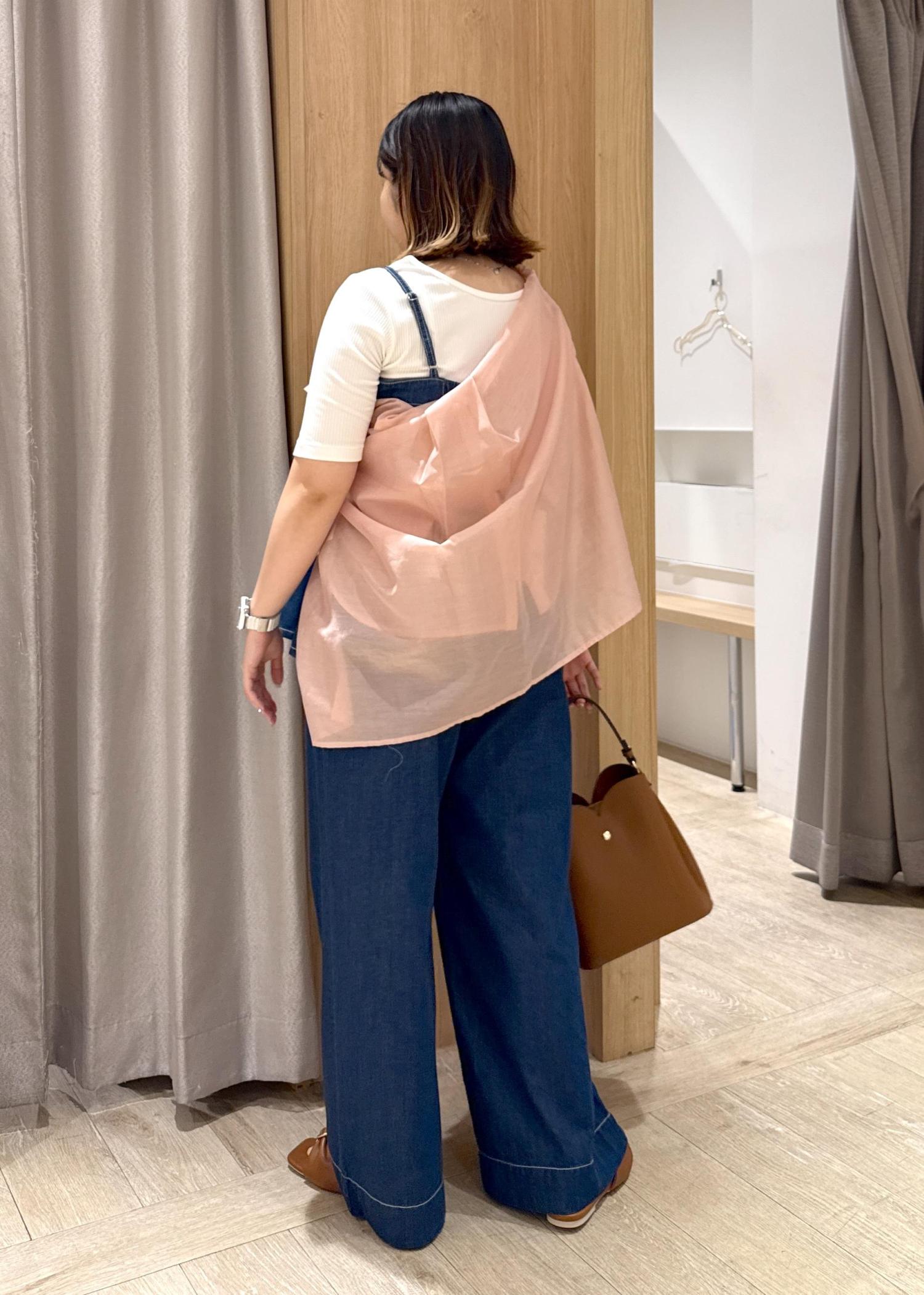 少しクセがあるのが好きなので、ピンクのシアーシャツをプラスしてみました!