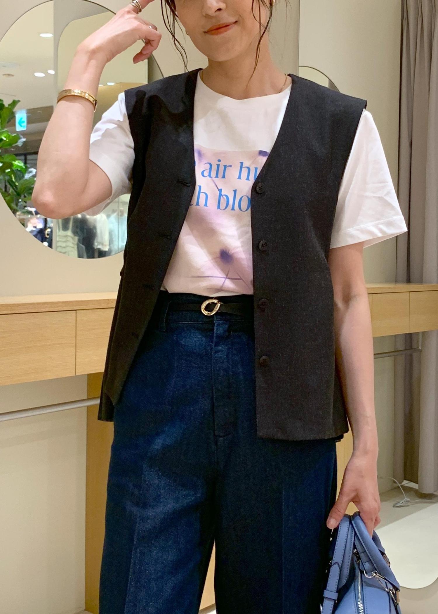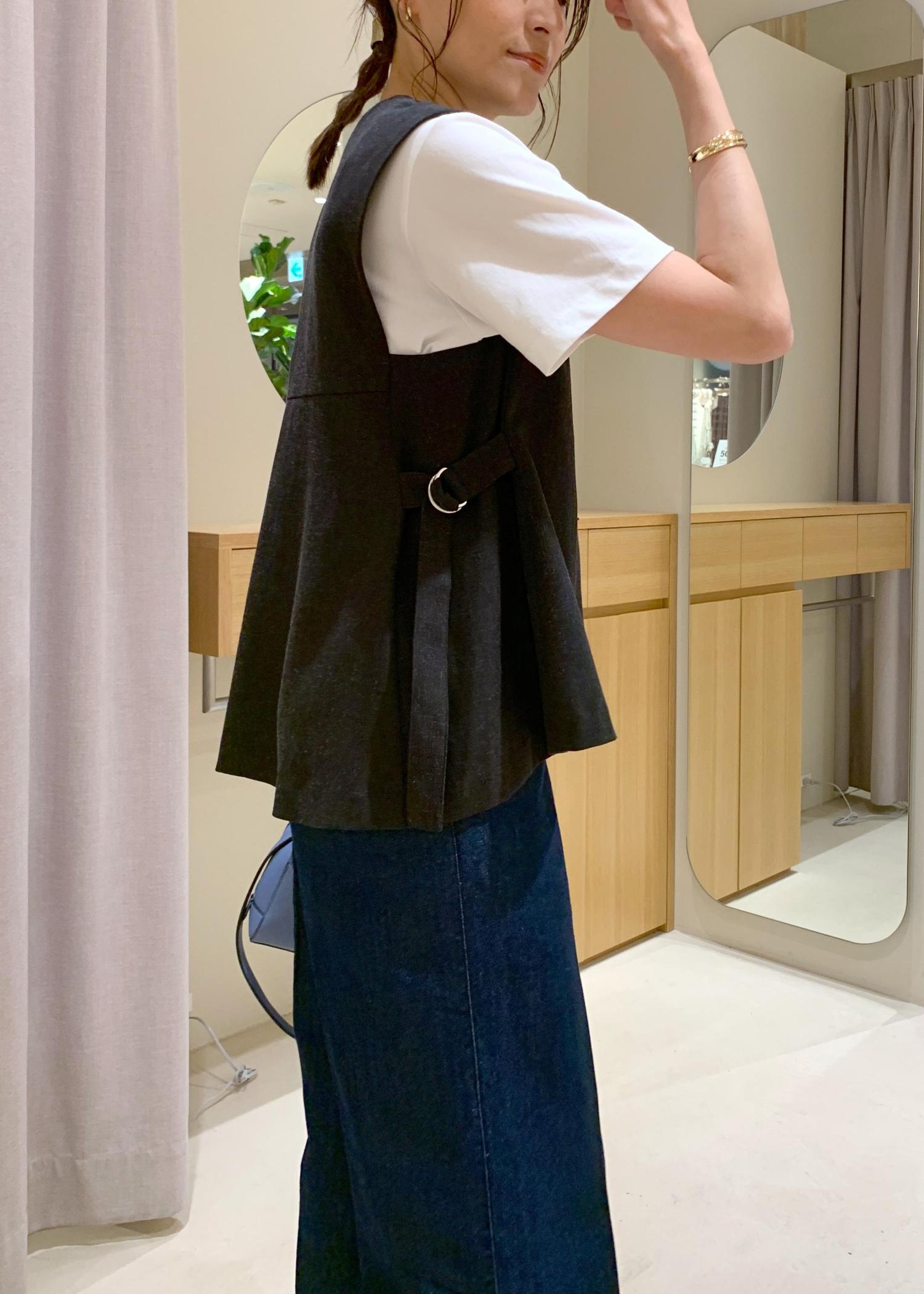 夏はノースリーブのまま着てもいいですし、カジュアルにTシャツを入れるのも◎ -