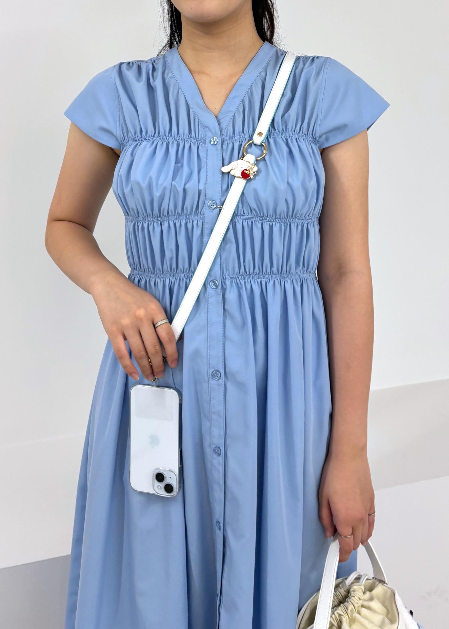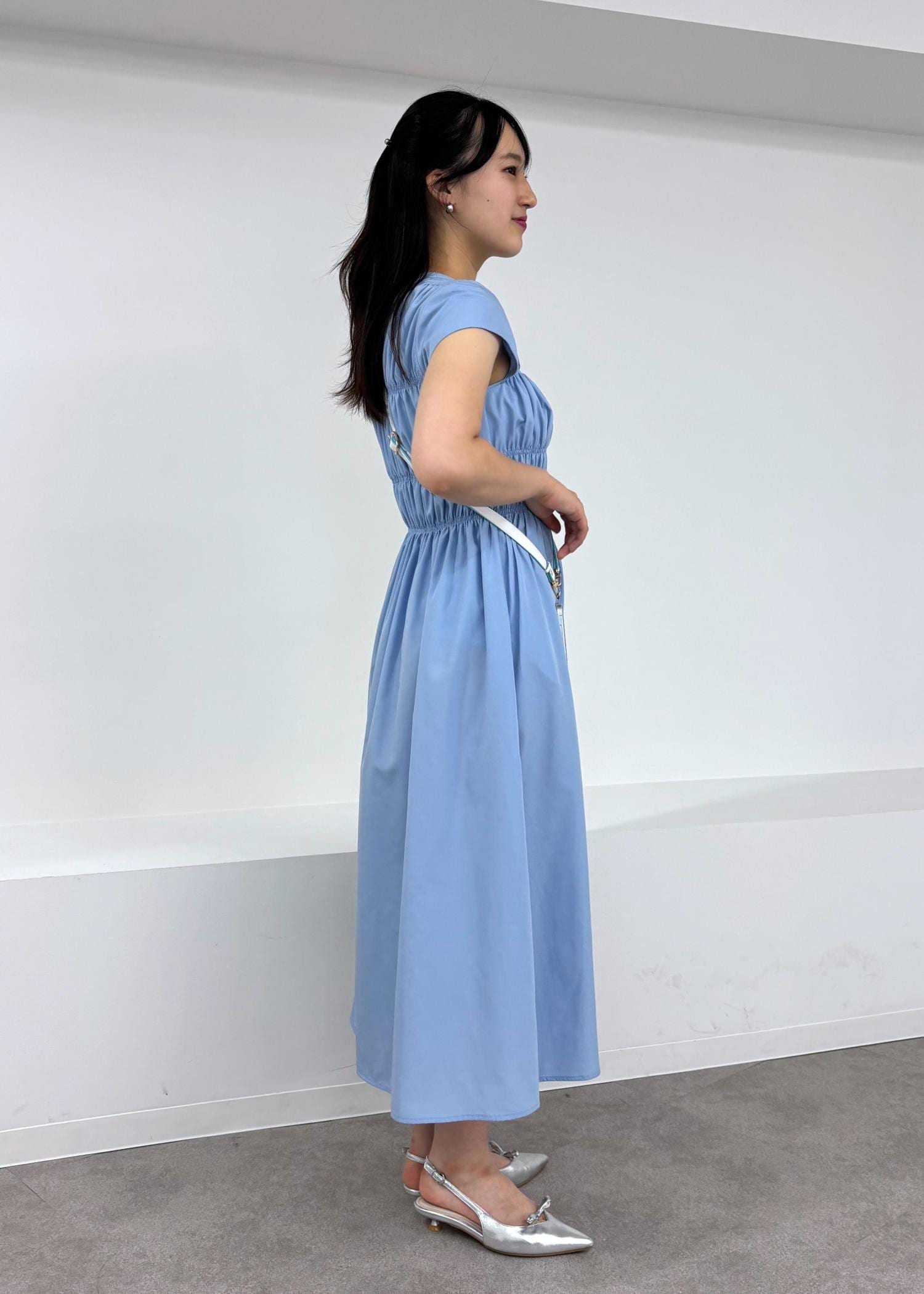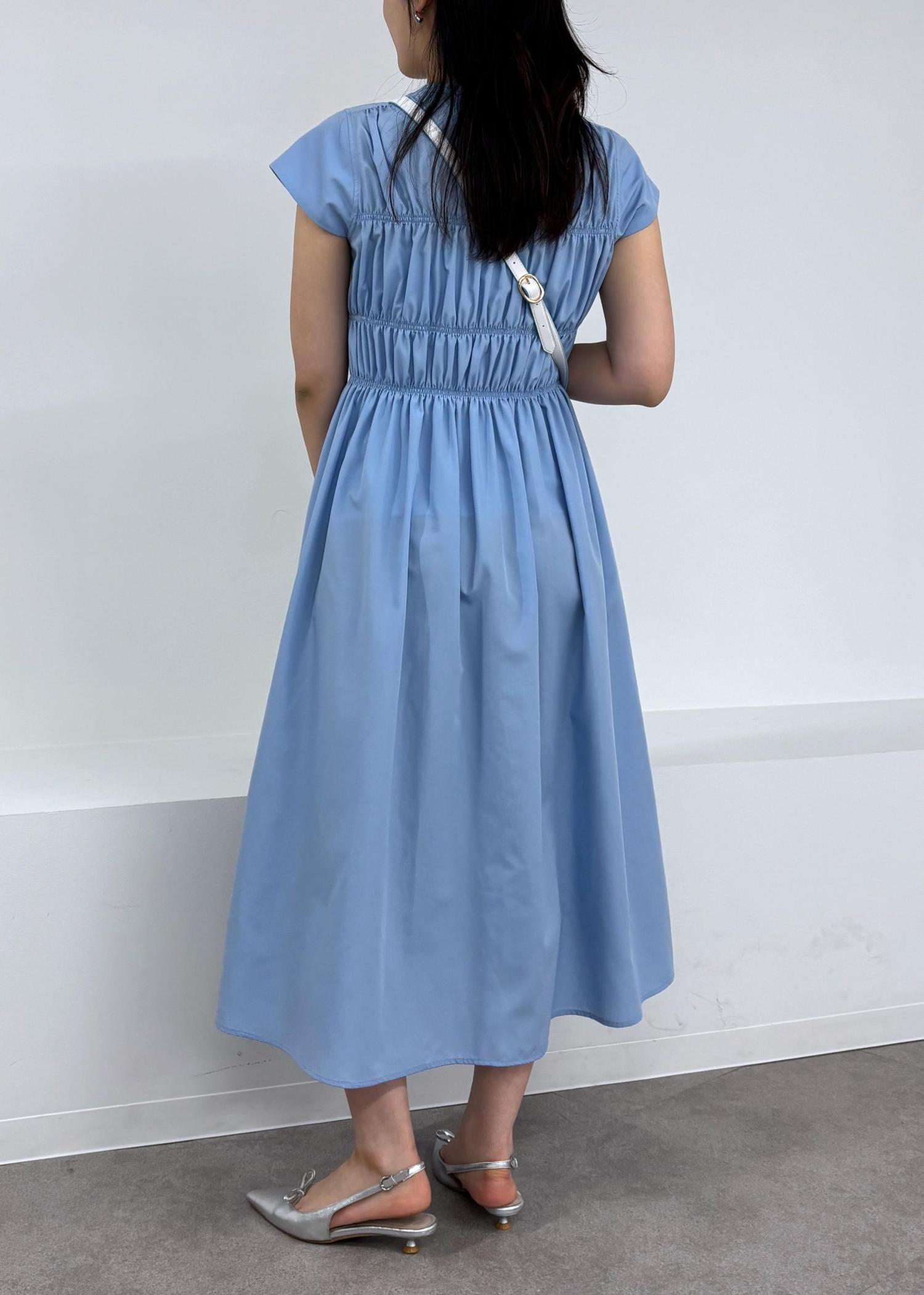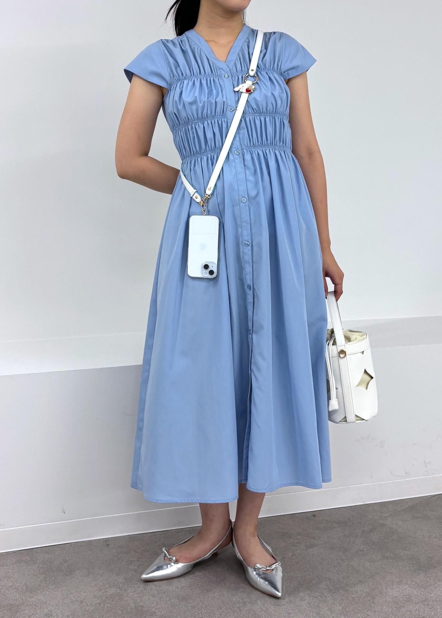アウトレットVISシャーリングデザインワンピース【WEB限定サイズ】ブルー系 / F¥3,955レビュー165cmでFサイズ着用、ふくらはぎをほぼ覆う丈感です!