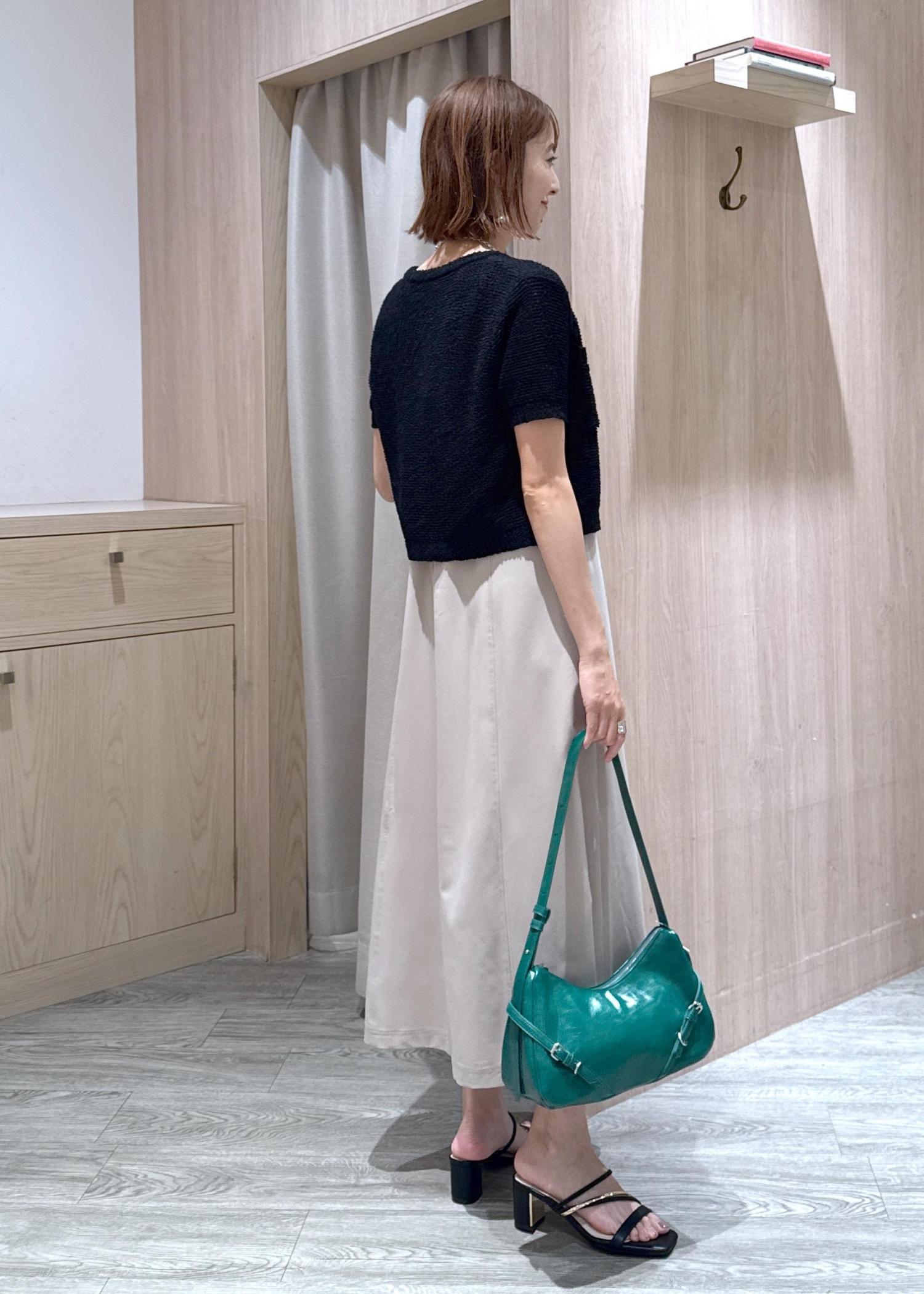 暑くなってきたのでインナーはカップ付きキャミ一枚でスッキリスタイリングしました♪